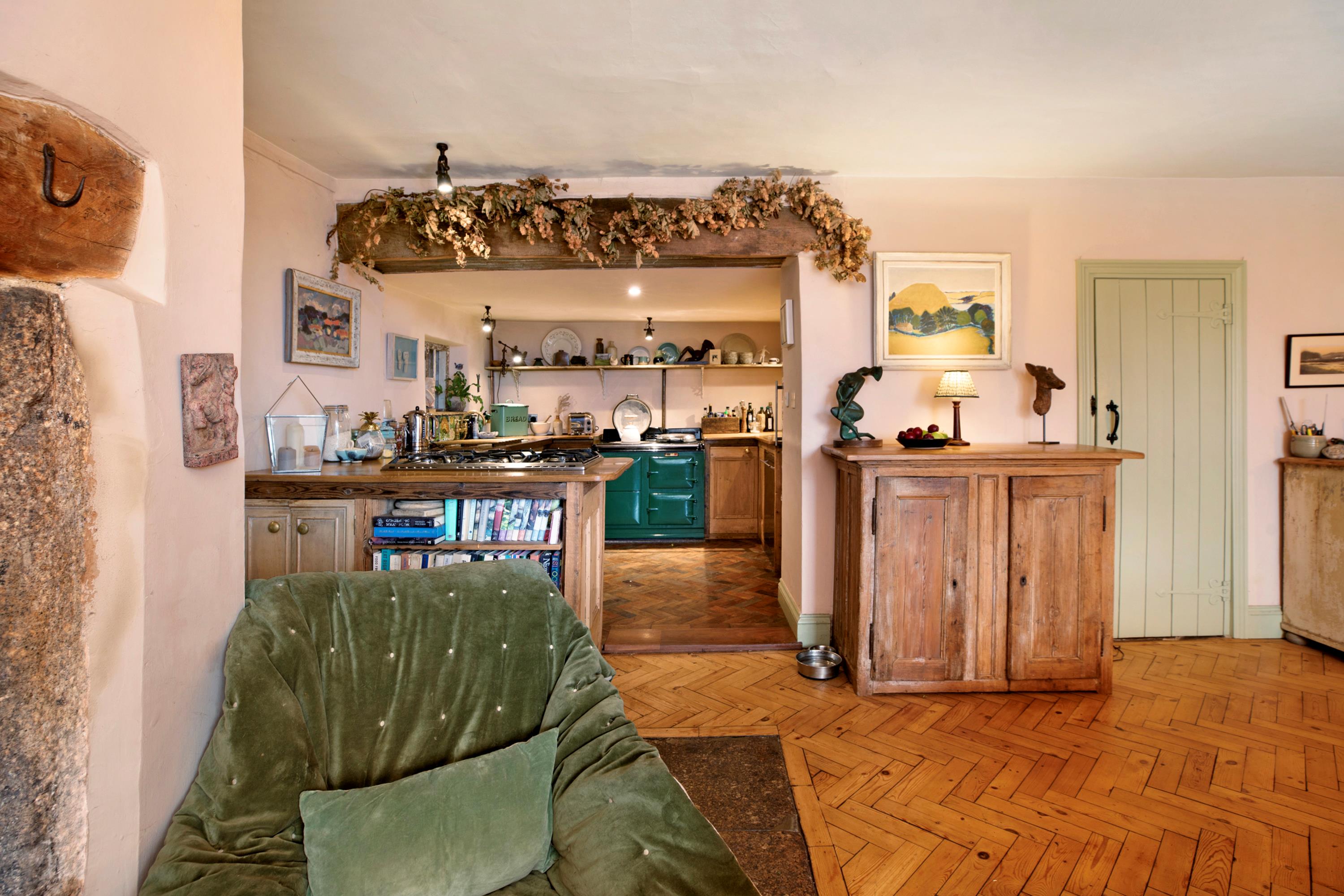 Step outside into the walled kitchen garden featuring raised beds for vegetable growing, a herb garden and herbaceous borders that provide a backdrop for outdoor entertaining. The grounds extend into a generous lawn, fruit cage, chicken run, orchard, polytunnel, stables, and a tractor shed - all designed to support a sustainable and fulfilling lifestyle. A true highlight is the stunning five-acre wildflower meadow, home to rare wild orchids and a diverse array of native blooms. Celebrated in national publications and proudly part of The National Garden Scheme, this space is a sanctuary of natural beauty. Adding further value and flexibility is The Apiary - a successful Airbnb rental generating over £20,000 annually. With its vaulted beamed ceiling, handcrafted kitchen, modern bathroom, private entrance, and electric car charging point, it's an inviting retreat for guests or extended family. The farmhouse itself is a classic south-facing granite stone longhouse, offering a light-filled and airy interior that is rare for Devon properties of this kind. The entrance, via a stone porch and traditional Devon cross passage laid with granite flagstones, sets the tone for the character and charm found throughout.