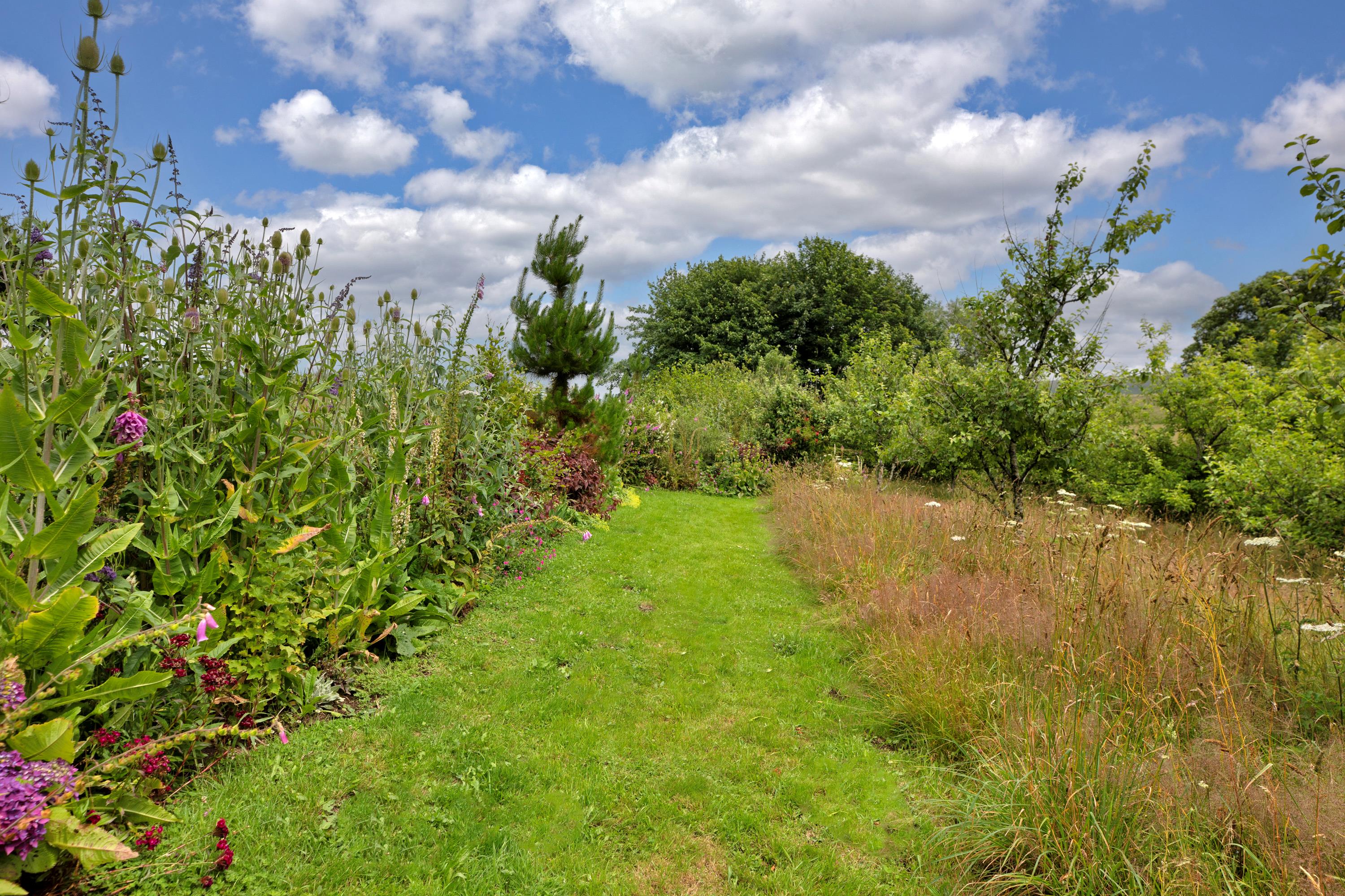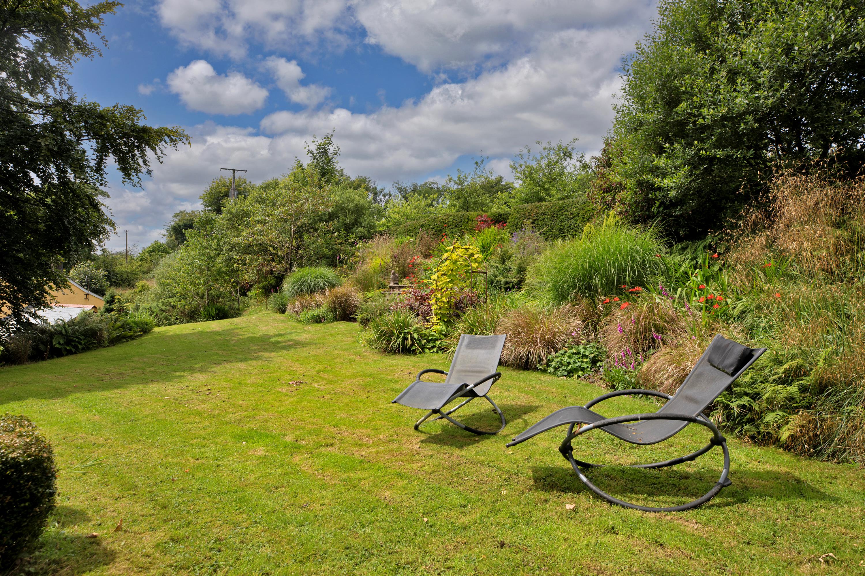 In the northeast corner of the orchard is a small area of broadleaf woodland. Beyond the garden is the property's lush, pastureland, which is divided into two enclosures by field hedging dotted with a mix of native, broadleaf trees.