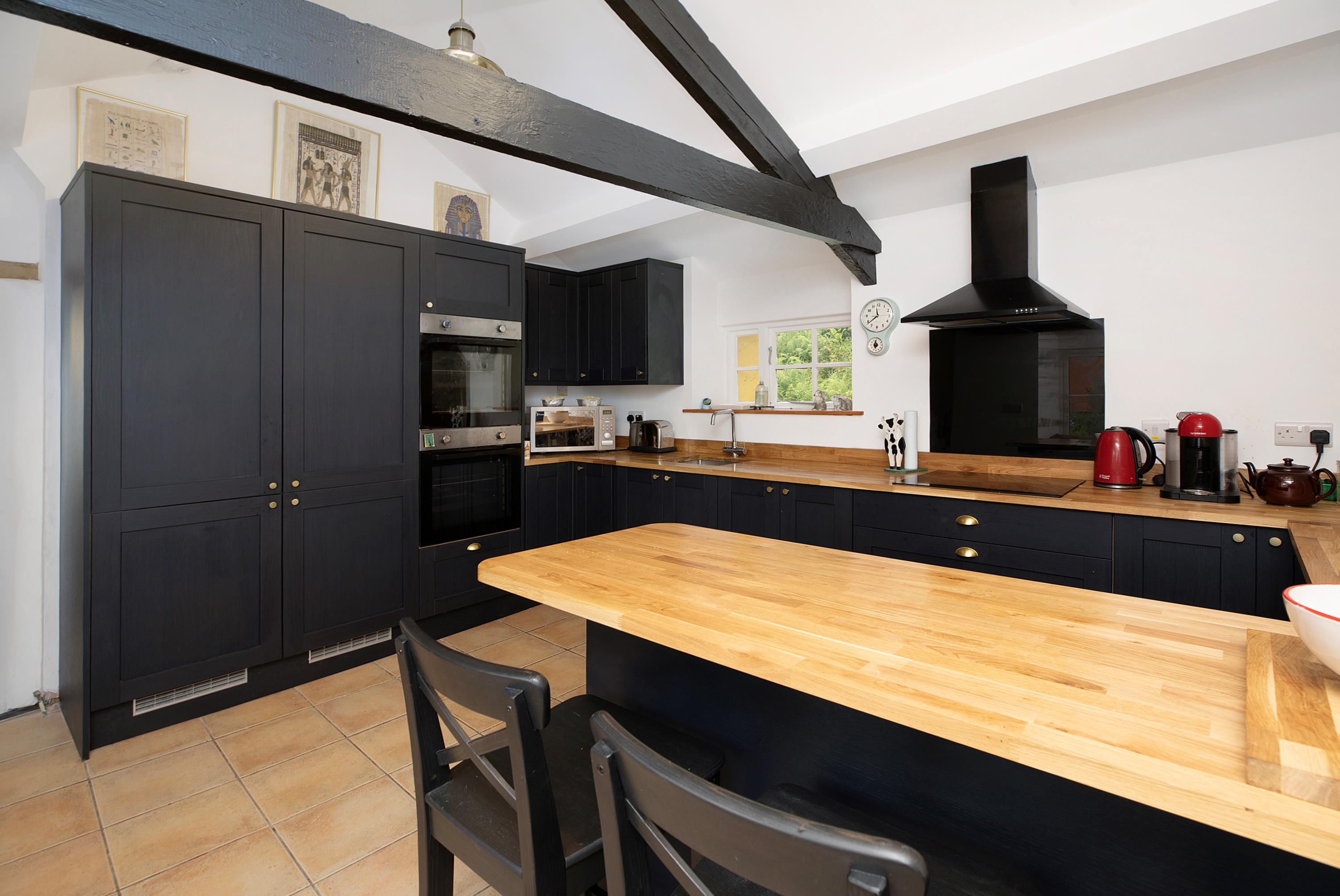 The house has well proportioned rooms with good ceiling height plus far-reaching views across the garden to the surrounding countryside beyond. It also faces southeast to southwest catching the best of the daylight throughout the day. As was typical of period farmhouses, the front of Yellowmead Farm faces southeast thereby ensuring that the two main reception rooms and all four bedrooms benefit from good natural light from early morning through to late afternoon i.e. during the rural working day. The extension containing the kitchen/breakfast room also faces southeast and is fitted with a tiled floor, units under timber work surfaces including a central peninsula and a range of built-in electric appliances.