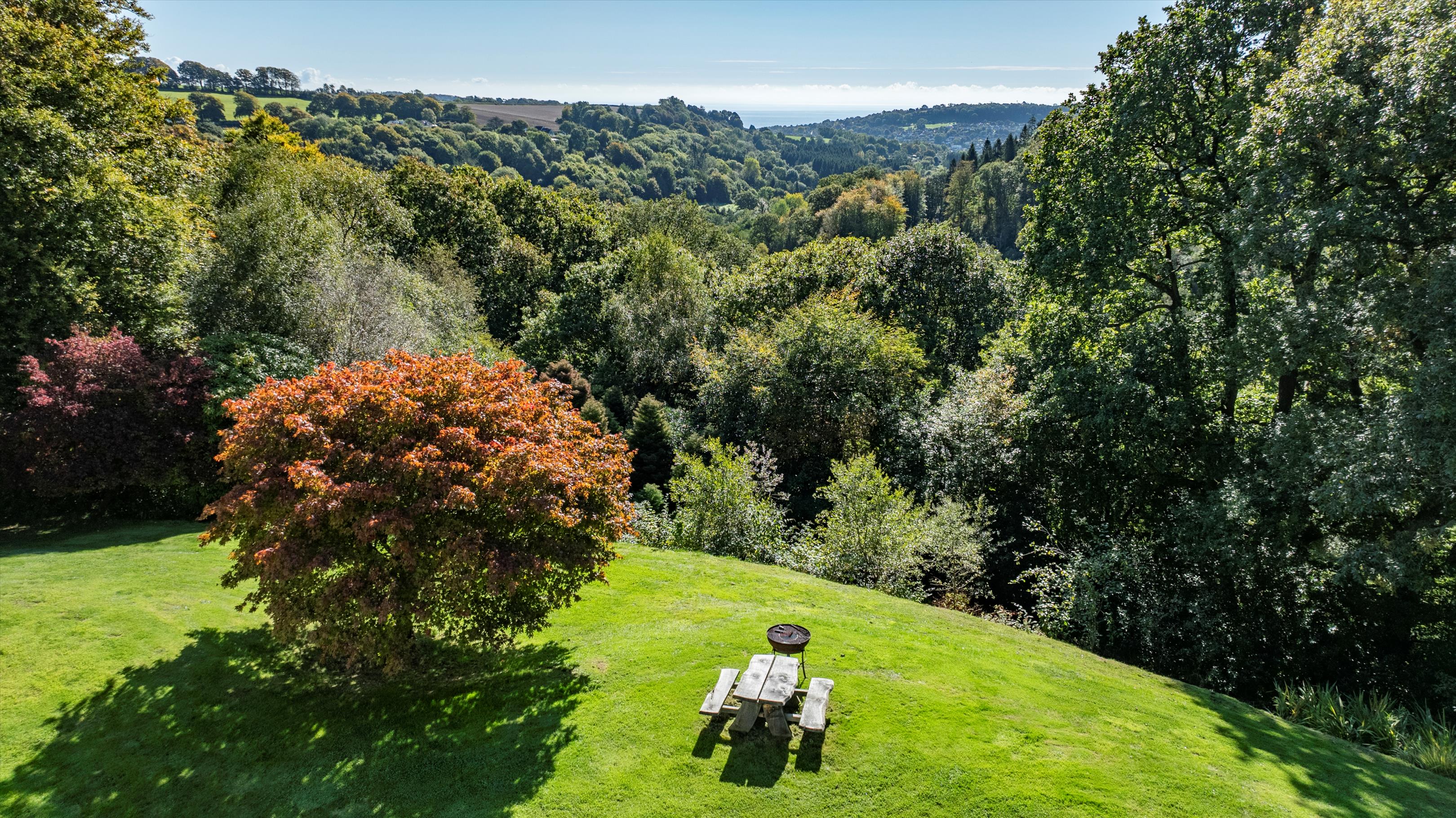 The wider grounds comprise mixed woodland, much of which is held on a 999-year lease to the Secretary of State for Environment, Food and Rural Affairs and managed as commercial woodland by the Forestry Commission. The owners retain unrestricted access and hold the sporting rights, ensuring full enjoyment of the landscape while benefitting from long-term stewardship.