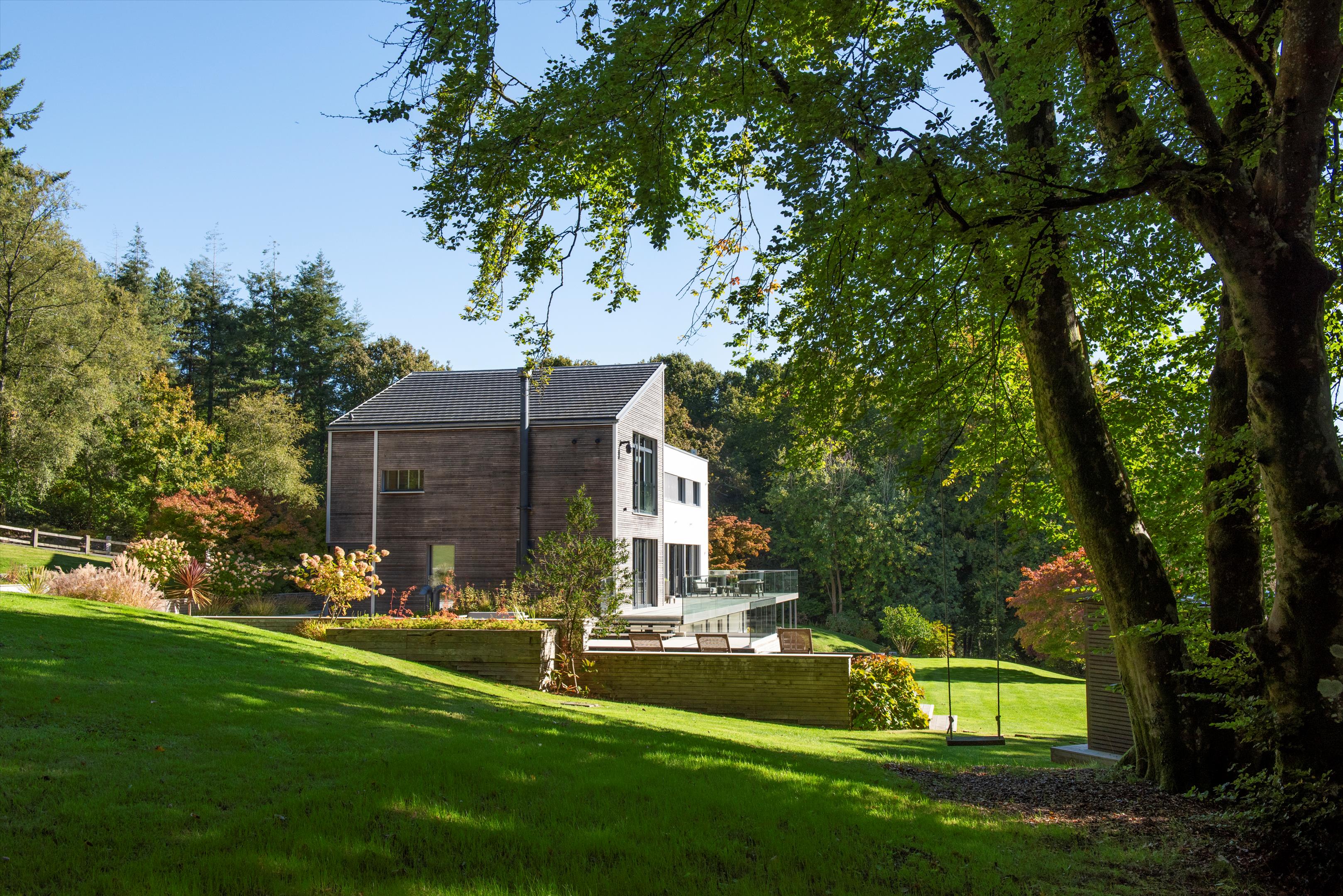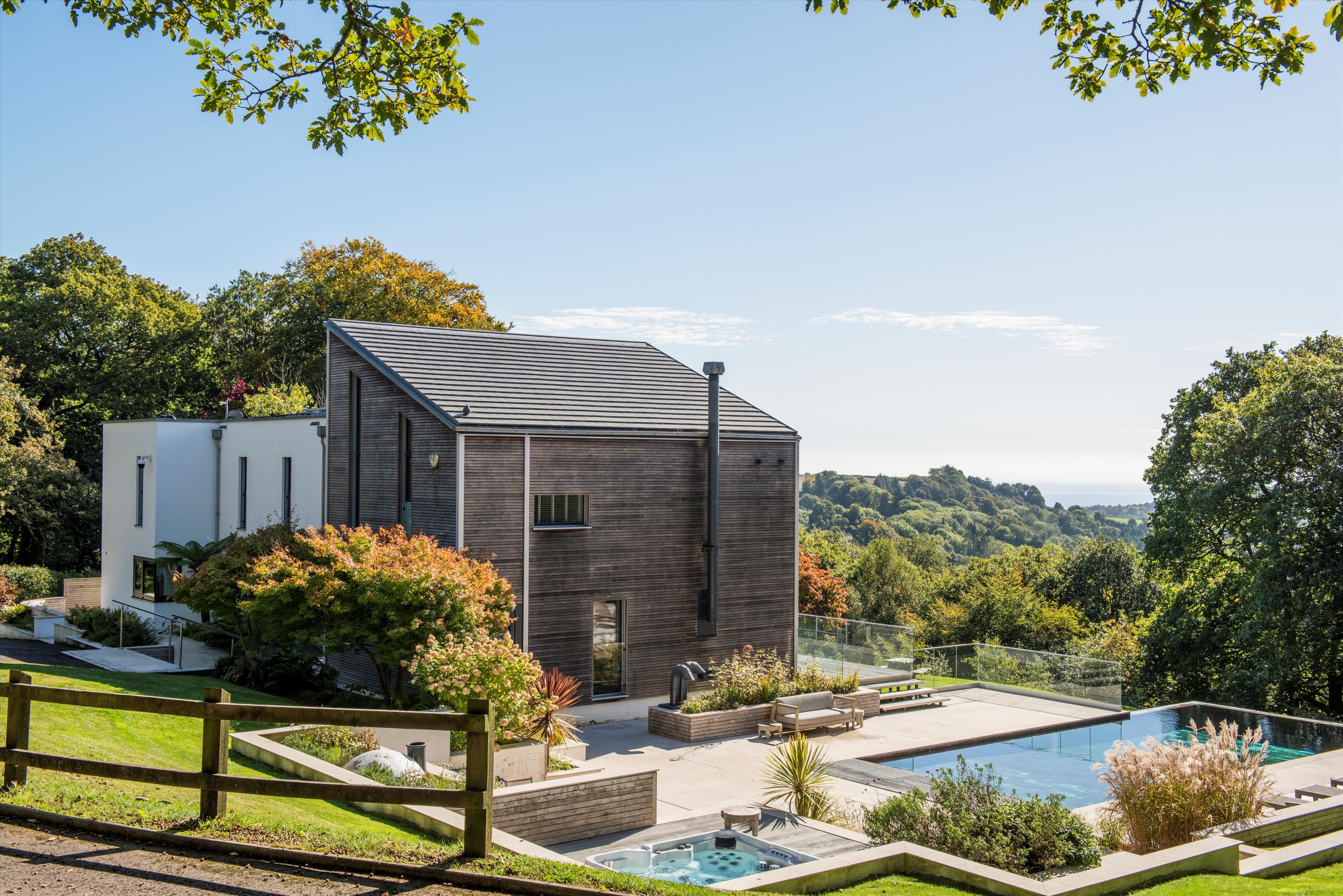 Commanding a remarkable position above a wooded valley, The Lookout is a rare South West contemporary family home offering far-reaching views towards Lyme Bay and total privacy within more than 58 acres of mature woodland. Completed in 2016 and designed by Baufritz, this is a fine example of an eco-engineered, contemporary family home - featured on Channel 4's Flat Pack Mansions for its architecture, setting and sustainable design.