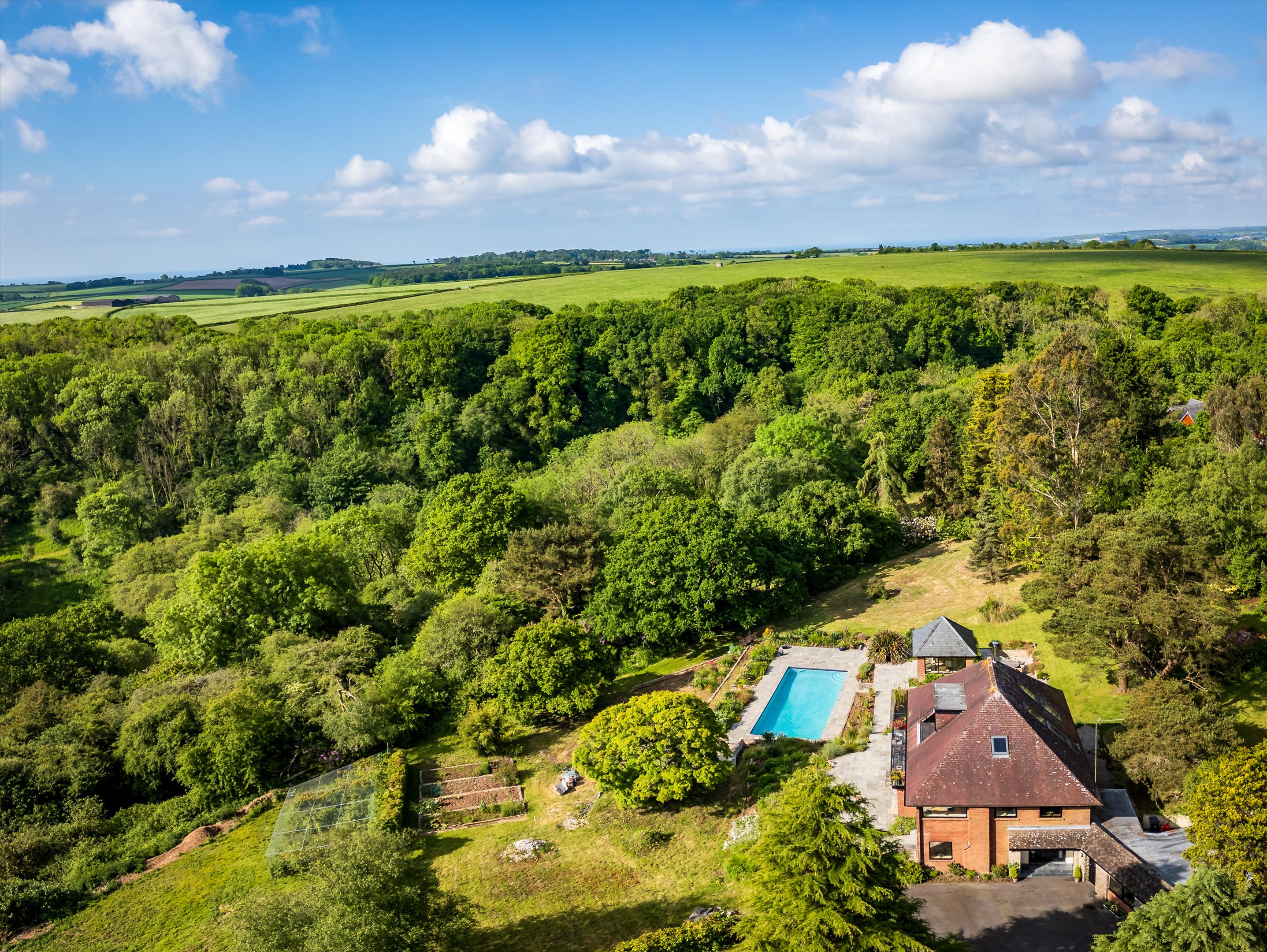 Set off a quiet country lane close to the Trinity Hill nature reserve, Deepcombe House has an elevated setting with fantastic views over the surrounding coastline and rolling countryside, including the picturesque Cannington Viaduct. In addition, the house stands in a large clearing that is surrounded by eight acres of beautiful, mature woodland, providing total seclusion and privacy. The grounds are rich with plant and animal life, including three mature ponds stocked with water lilies and iris, along with a stream that runs right through the middle of its own wooded valley. In spring, the woodland is filled with bluebells, primroses and wild garlic; badgers, foxes, deer, bats and buzzards are regular visitors to the garden, along with glow worms in the summer months. The sea views from the house and garden extend right across to Charmouth, Golden Cap, Chesil beach and Portland, with further glimpses westwards towards Ware and Rousden.