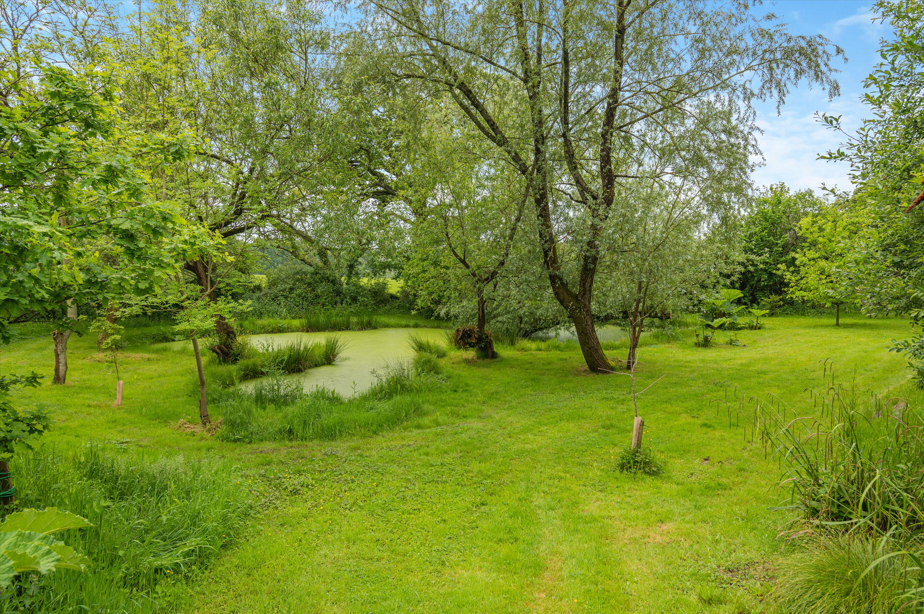 lawn with a formal pond and fountain, a separate ornate iron gazebo, clipped yew hedging plus paved seating and dining areas fringed by borders planted with roses and herbaceous perennials. The wild garden incorporates a wide variety of trees and mown walkways around a large pond. Beyond the wild garden, hidden from view and accessed by an extension to the drive is a recently built traditional barn incorporating two floors and a workshop. Subject to obtaining the necessary consents the barn would provide the house with a perfect guest cottage/annexe. On either side of the garden are two paddocks enclosed by stock-proof fencing and with separate vehicle entrances.