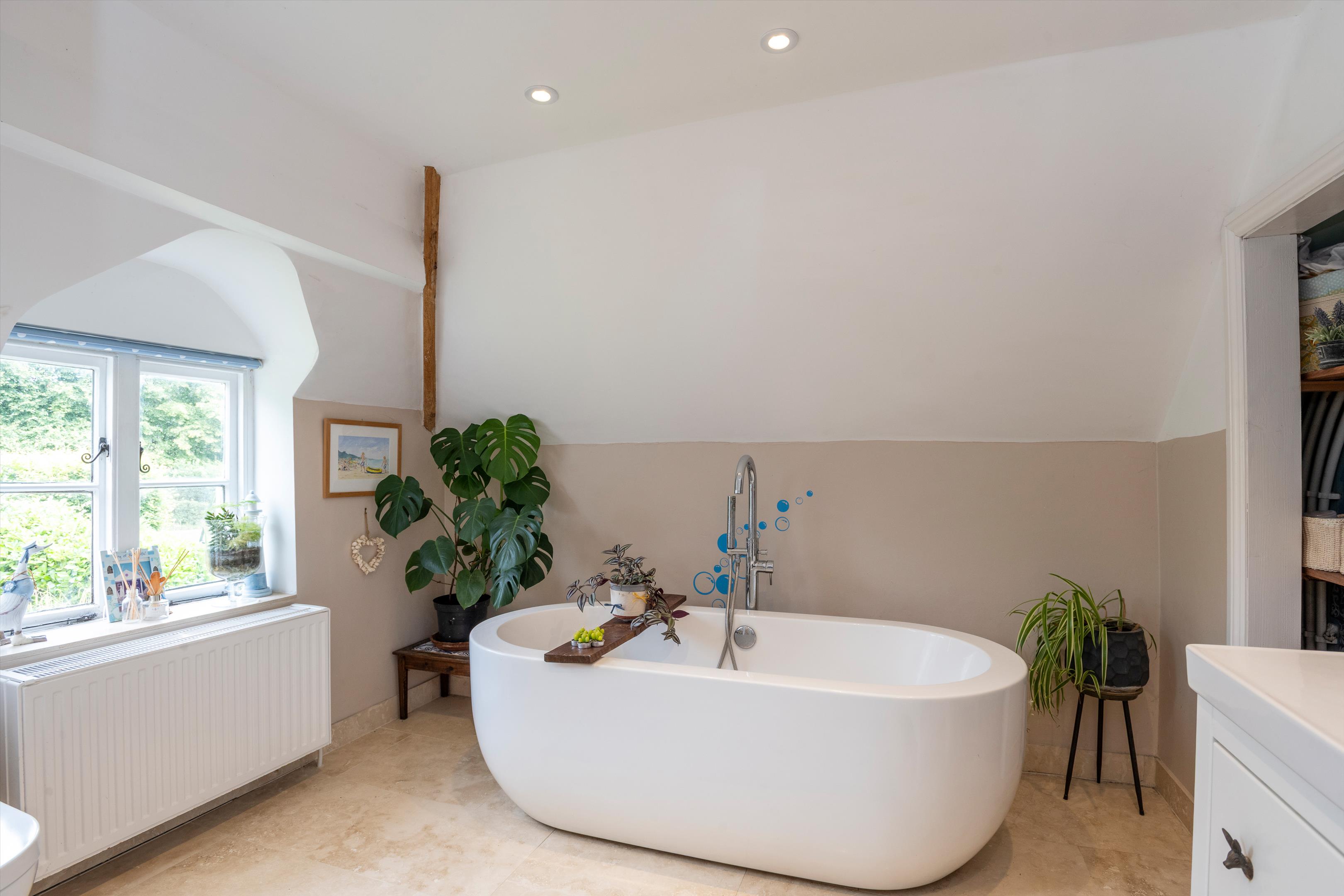 The property has a lovely, private setting as one of a small group of house, set back about 40 yards from the passing lane behind a belt of trees. The core of the house dates from about the time of the English Civil War when it was built as a "plague house" entirely separate from the original part of the village, which had succumbed to an outbreak of bubonic plague. The house was enlarged and remodelled in 1901 at the dawn of the Edwardian era and has retained many of the architectural fittings from that time. These include a charming front porch with an original Victorian tiled floor, two bay windows, one of which is fitted with a window seat, several feature fireplaces throughout the house and an open, working fireplace in the study. The house has two storeys plus a suite of converted attics and is built of painted brick under a plain clay tile roof. It has served as the much loved home of the current owners for the past ten years and has sufficient and flexible accommodation to handle a large family. The ground floor has four reception rooms enabling both parents to work from home. It also includes a good sized and centrally positioned sitting room equipped with a wood burning stove that sits adjacent to the large kitchen/breakfast room to form a wonderful family hub at the centre of the house. The kitchen is well-lit by natural light flowing in through a rooflight and through bi-fold doors that look out onto the garden. Upstairs there is a total of five double bedrooms, all of which look out across the grounds to the surrounding countryside beyond. The four bedrooms on the first floor are supplemented by a central, walk-through seating area that can double as an occasional sixth bedroom if required. Also on the first floor is the family wet room equipped with a freestanding bath and separate shower. The attics have recently been converted to create a fifth double bedroom plus an adjacent wet room.
