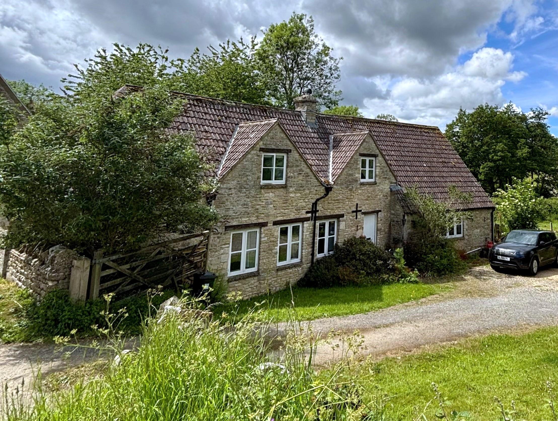 Three bedroom detached Cotswold stone cottage with range of single storey outbuildings and a four acre paddock.