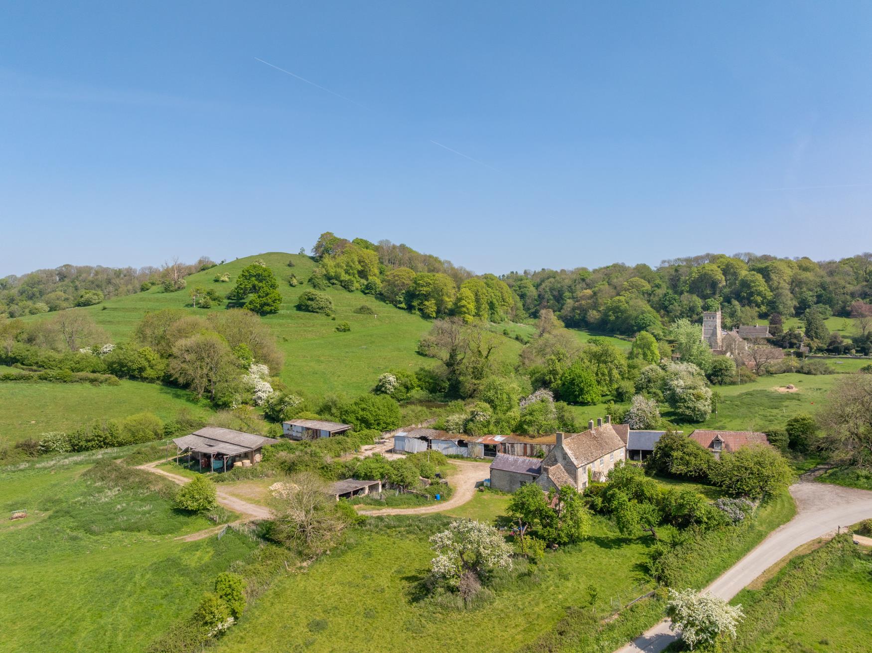 Four bedroom Grade li listed four bedroom Cotswold stone farmhouse with modern and traditional farm buildings set in the heart of the estate. A large unconverted threshing barn, a modern agricultural building and off lying stone barn Agricultural land and woodland extending to approximately 636 acres.