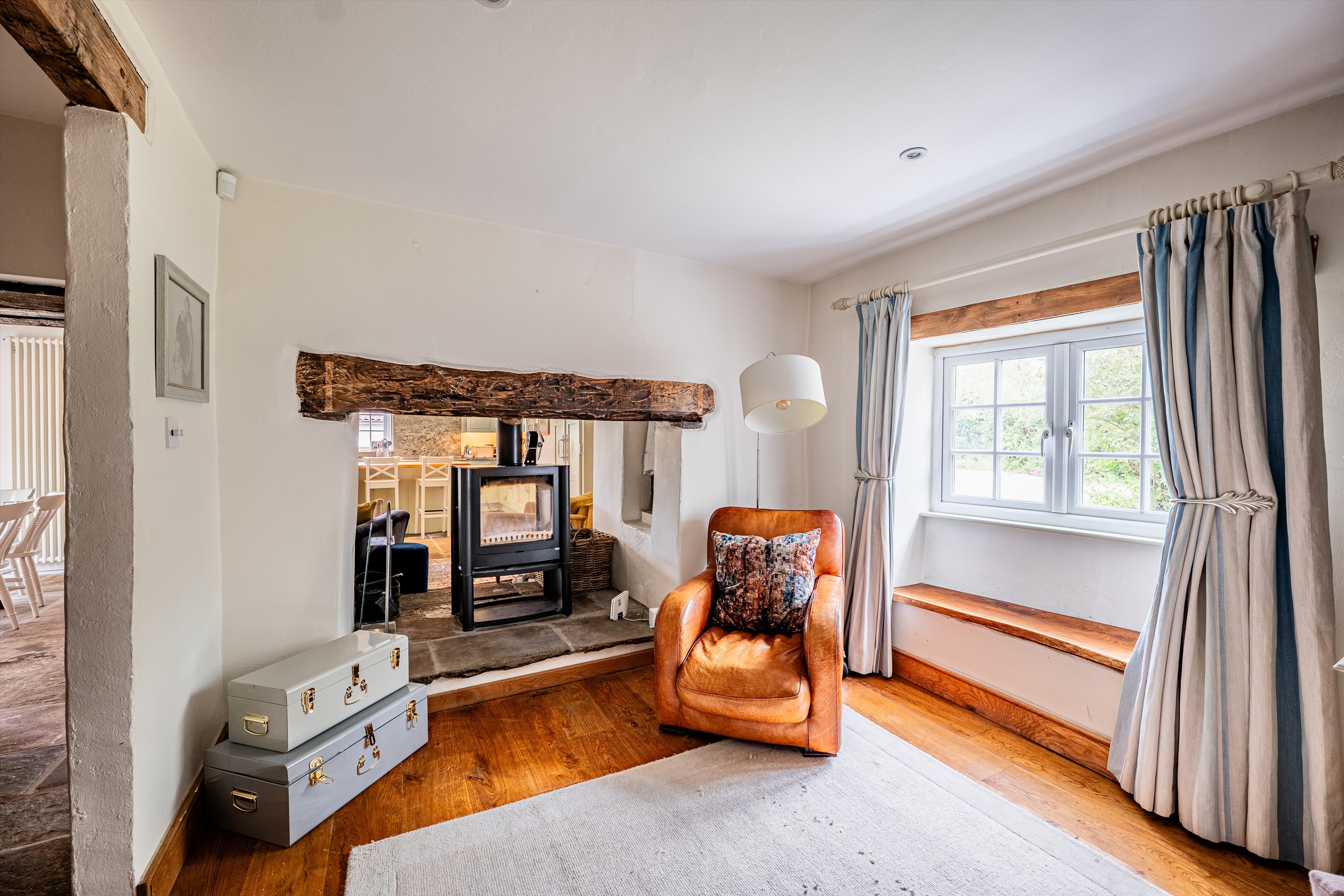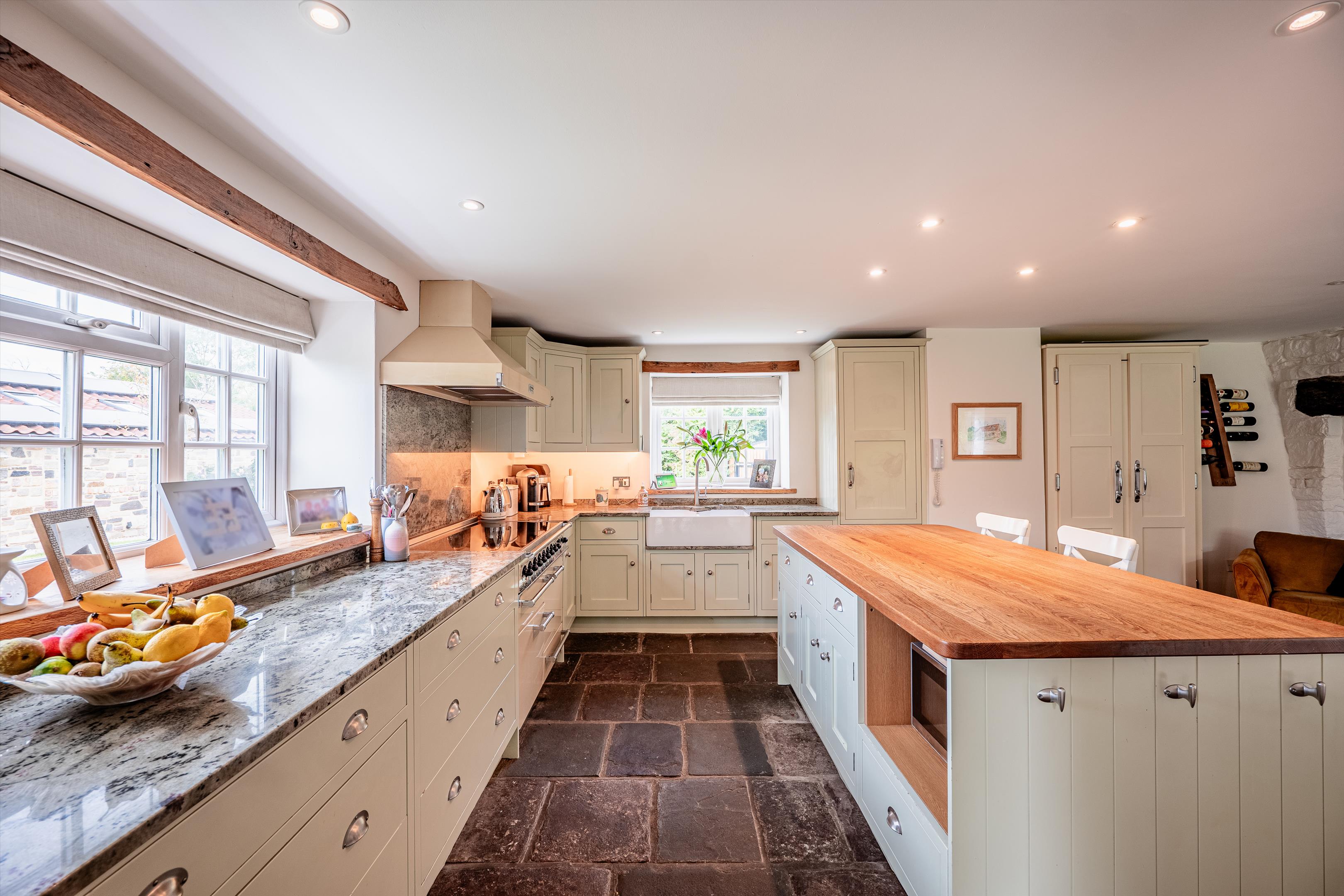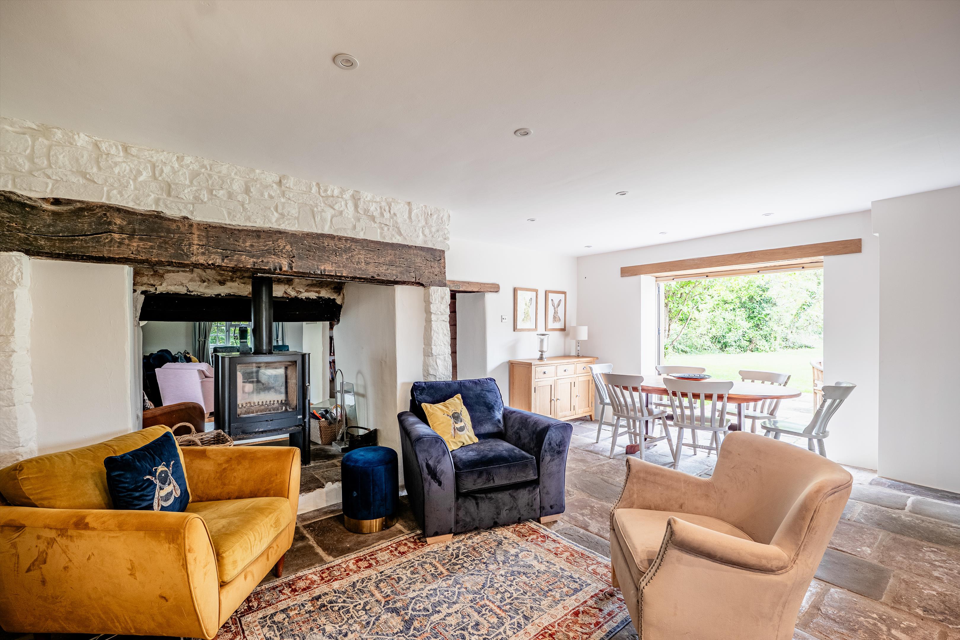 flagstone floors, a solid oak floor and a log burning stove in the sitting room, and a further central log burning stove separates the sitting room and breakfast kitchen/dining room. The breakfast kitchen is extremely well fitted and