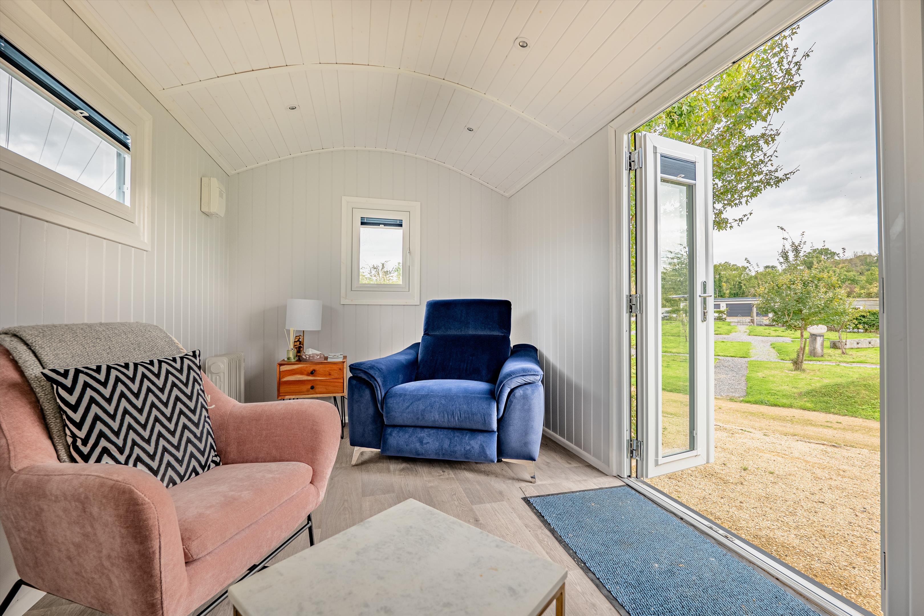 The studios/workshop are grouped together in its own grounds away from the house and are situated to the north of the property. They have their own secure parking and access, and there are lawns interspersed with pathways. There are nine attractive and well-presented cabin style studios, a workshop and two shepherd huts, let to artisans on an informal basis. There are two outside w.c.'s.