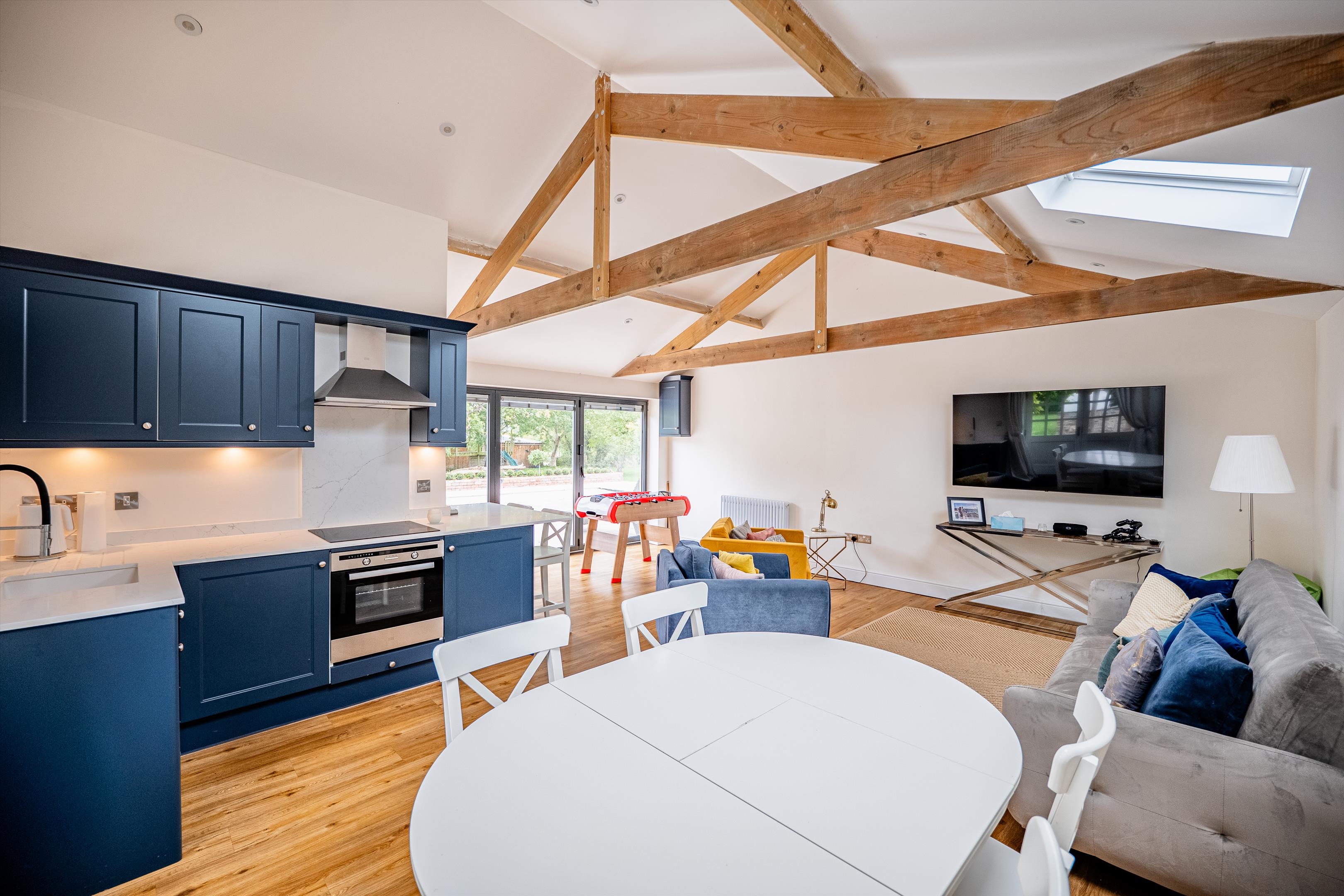 From the garden, a bridge leads to the field to the west, which has separate vehicular access from Berwick Lane. There is a timber stable block with two stables and a central hay store/potential third stable. Opposite is a substantial timber hay barn/implement machinery store.