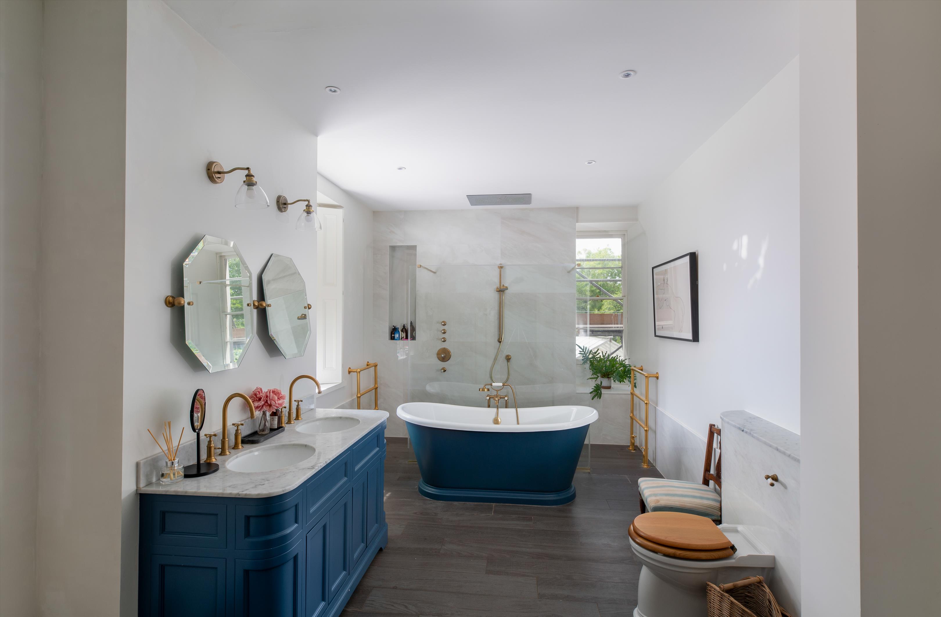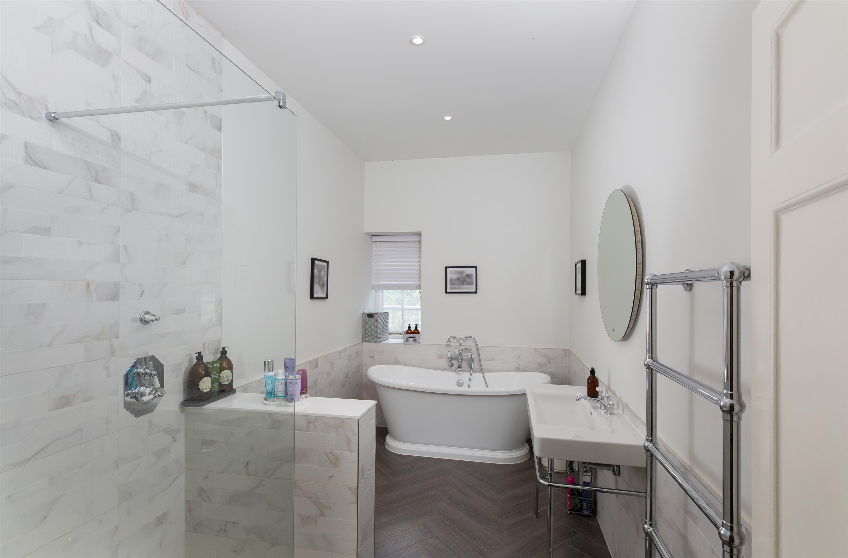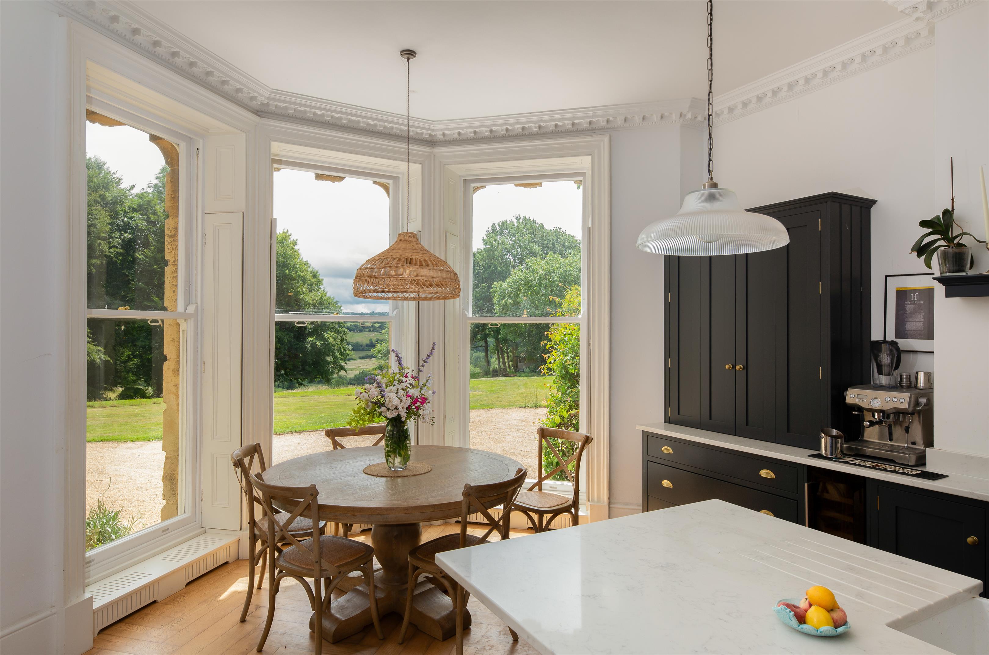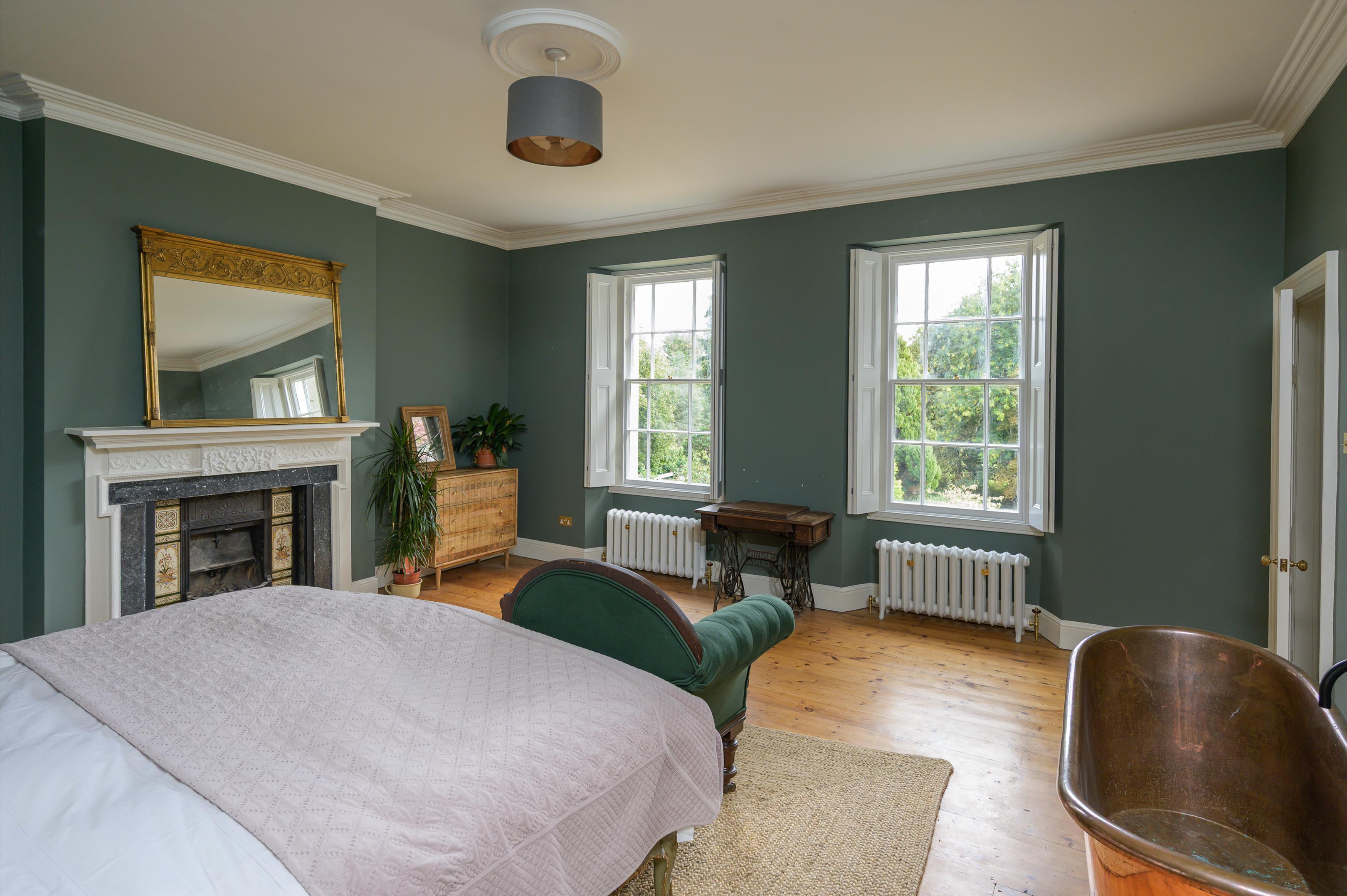 The Grange is a wonderful double fronted house dating from 1750 with Victorian additions. It is slightly elevated and has stunning views looking over its private formal gardens and park-like setting, to a valley of pasture and beyond to countryside. There are many features appropriate to the period including ornate and simple ceiling cornices, period fireplaces, sash windows and window shutters, detailed door architraves and dado rails. The present owner purchased the property in 2018 and undertook a major renovation inside and out which has been done to a meticulously high standard. Part of the interior layout was also redesigned. A purpose built kitchen with electric Aga was installed by John Lewis of Hungerford, all bathroom and shower rooms replaced by Ripples, all floors lifted, levelled or replaced where necessary with oak and parquet floors, walls were lime rendered, wiring upgraded and a new central heating system installed replacing all the radiators to cast iron. All of the sash windows were repaired and draft proofing added.