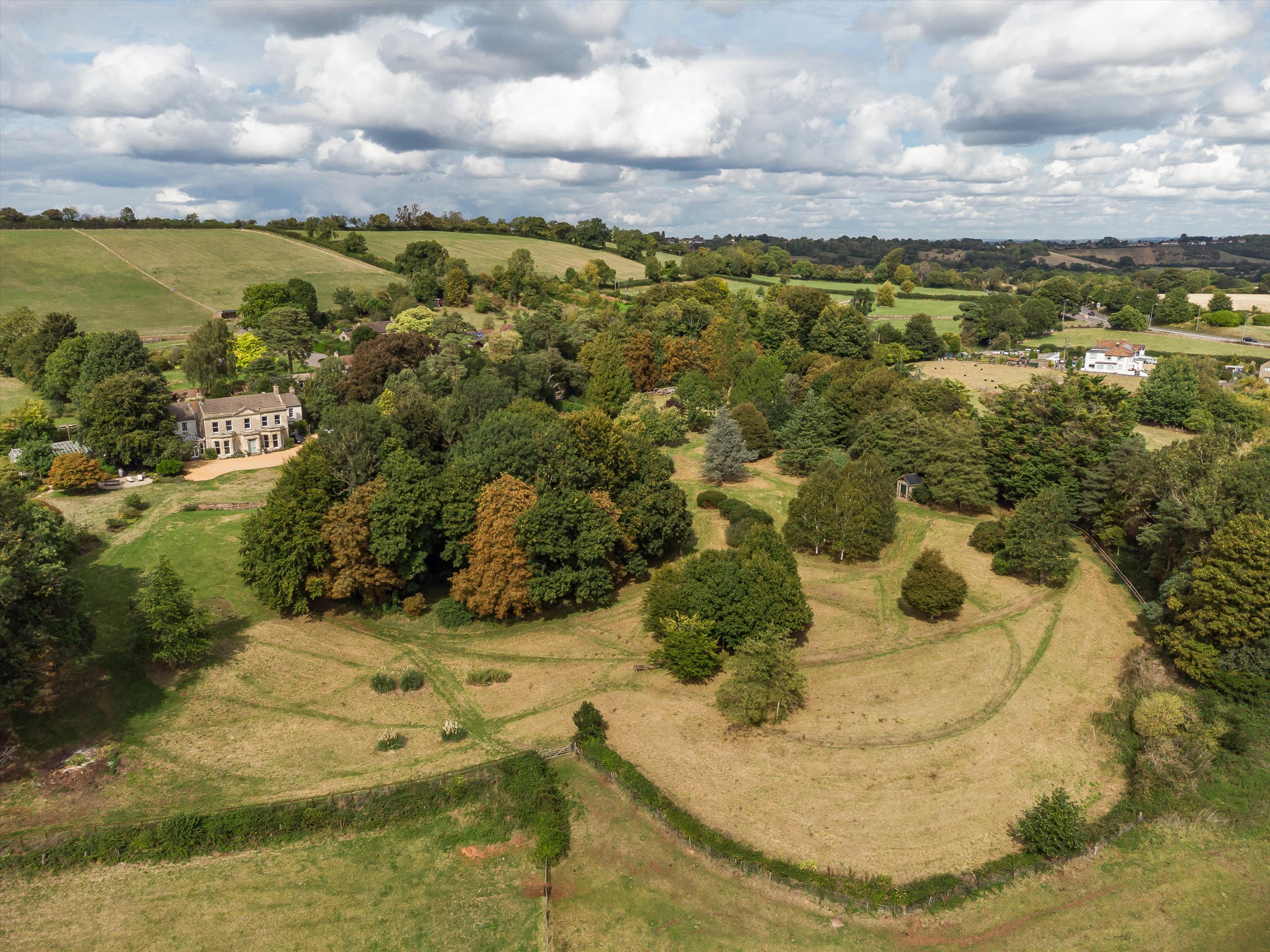 The Grange is approached through electrically operated tall wrought irons gates on stone pillars and open to a sweeping tree lined drive leading to the front of the house and attached double garage with electric doors. The top gardens are level and the lawn runs down to a ha-ha which separates the top formal gardens from the lower park-like grounds with mown pathways in a meadow and a copse. There are magnificent specimen trees including Tree of India, Beech, Oaks, Maples, and Cedars including many ornamental shrubs. To the west of the garaging, is a kitchen garden with pathways, pond, pergolas, ornamental shrubs and flowering plants, positioned beside a rendered and glazed greenhouse with three grapevines. Fruit trees include pear, espalier apple and there is an asparagus bed. A pathway leads down to the timber building, currently one room, but designed as two stables and tack room. To the east of the grounds, is a timber summer house/office, with electricity connected, overlooking the meadow. A hard tennis court, lies to the south of the entrance drive. The pasture lies to the south of the gardens and are overlooked by the house and stables.