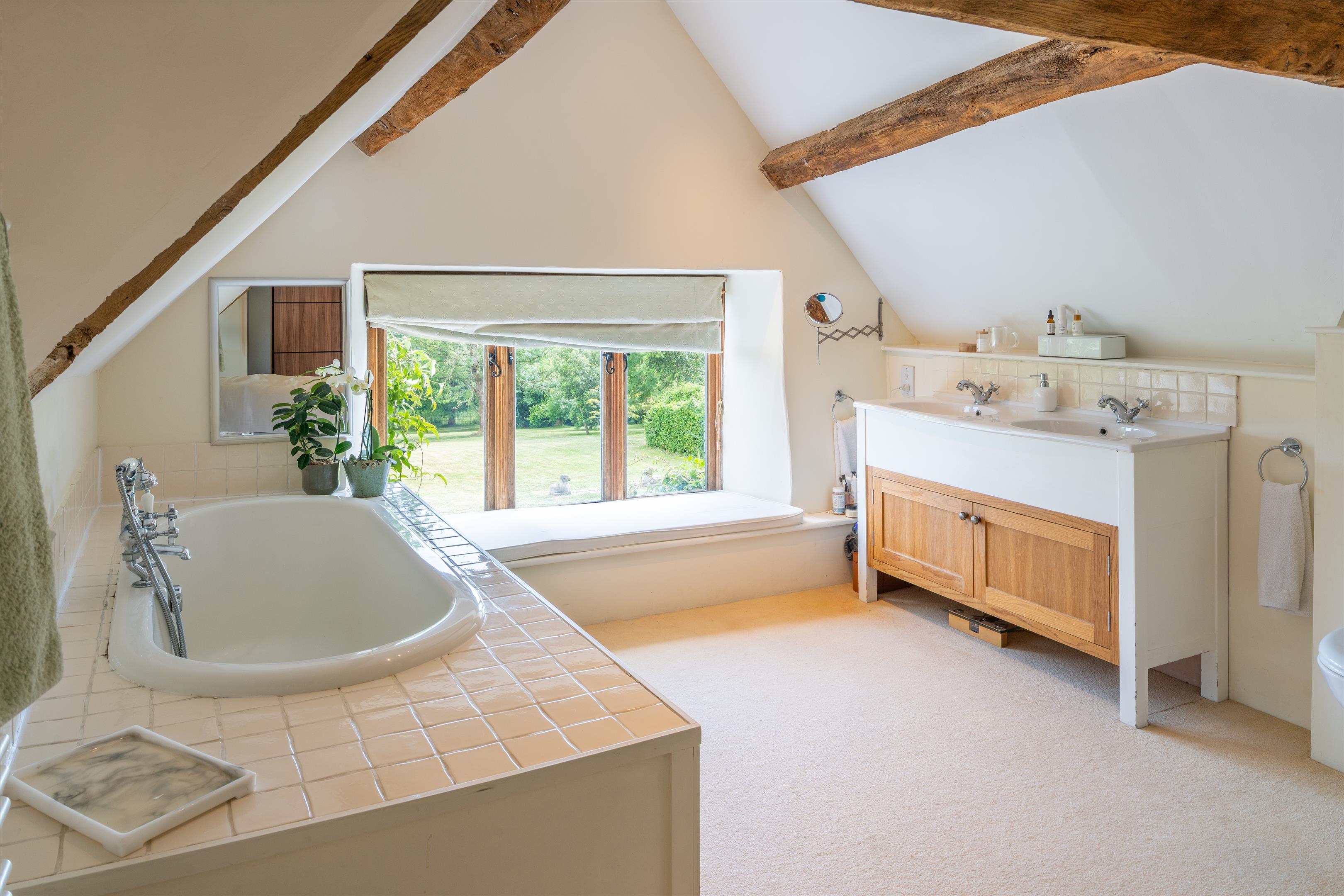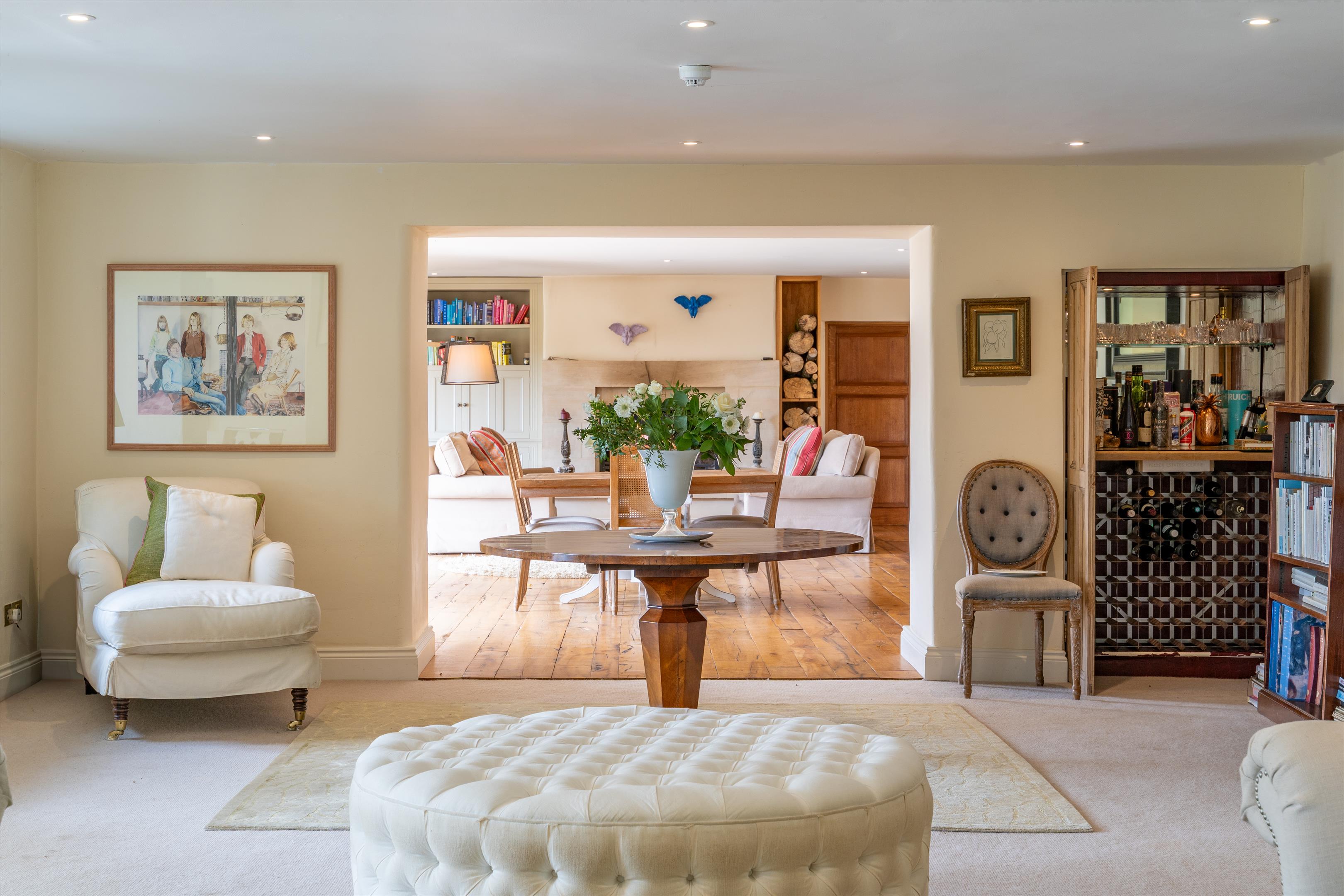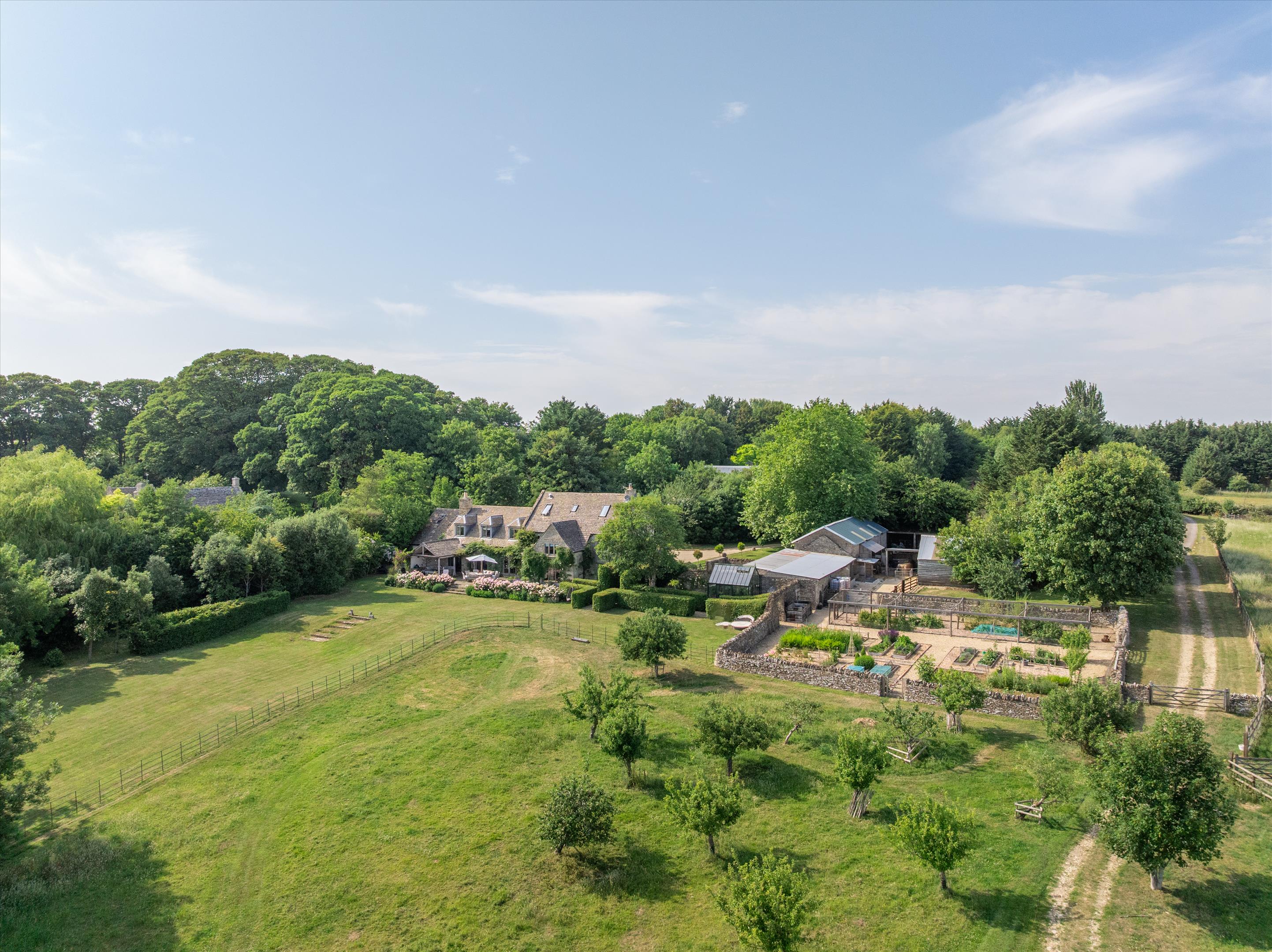 Folly Farm is one of four houses that once formed part of the original estate. It blends period charm with contemporary scale and design. Extending to 4,922 sq ft, this unlisted home has been thoughtfully arranged for modern living, with the kitchen, dining room and sitting room flowing seamlessly to create an impressive and adaptable family space. The current owners have refurbished the ground floor, installing reclaimed oak flooring throughout. The kitchen also connects to a well-designed walk-in larder, cloakroom, utility room and boot room. On the first floor, the principal bedroom suite enjoys captivating views across the valley. Four additional bedrooms, a family bathroom and separate cloakroom complete this level, with all rooms benefiting from exceptional natural light and far-reaching southerly views. A second staircase leads to the top floor, which offers two further guest bedrooms and an additional bathroom.