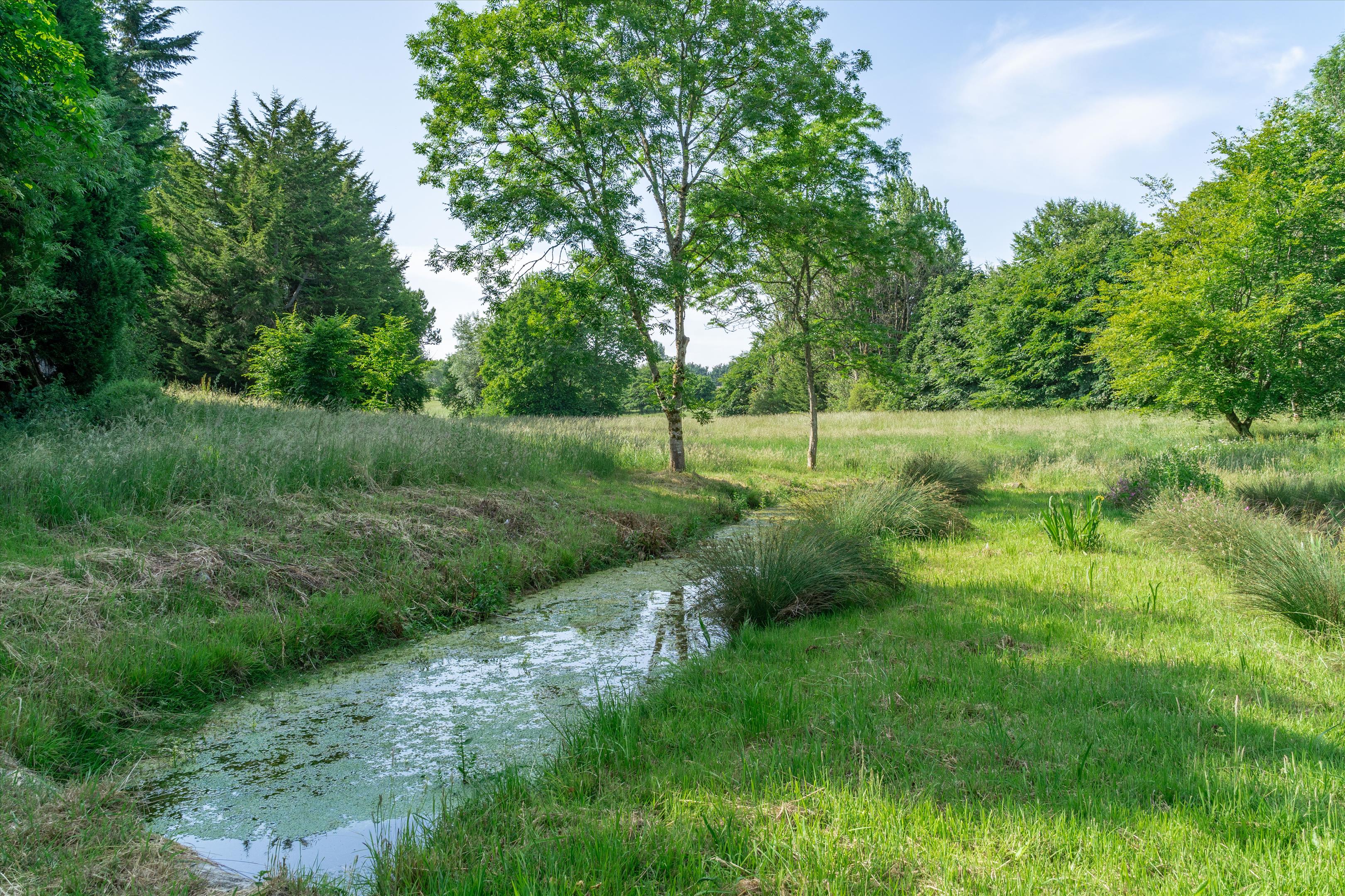 The main garden is predominantly laid to lawn and bordered by mature shrubs, beech hedging and an apple orchard. To the east, a walled kitchen garden provides further appeal. Formerly a duck farm, the 30 acres of land also features four spring-fed lakes which interconnect during winter, creating a thriving habitat for wildlife.