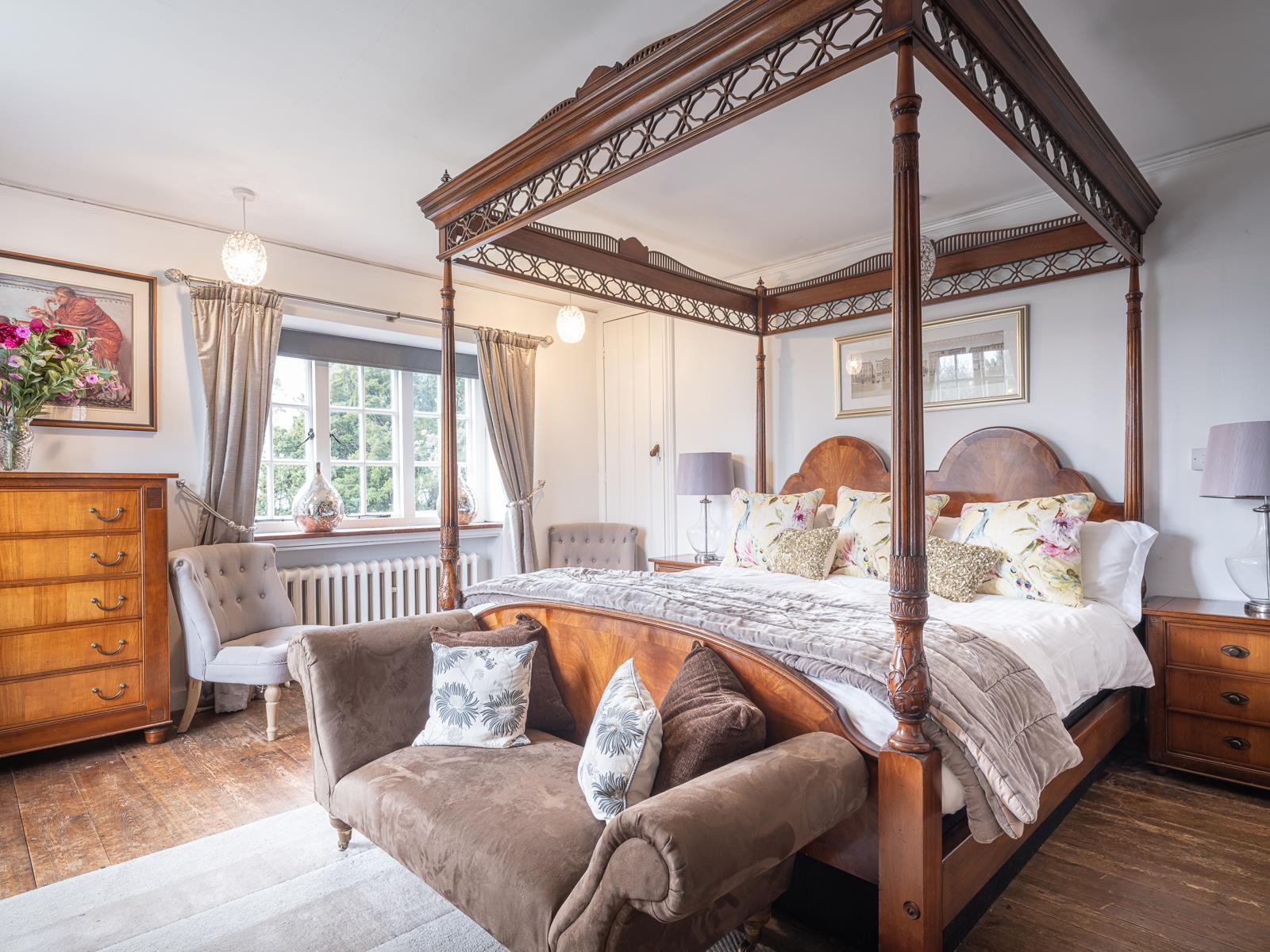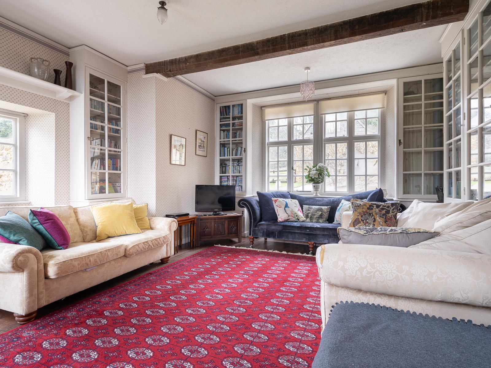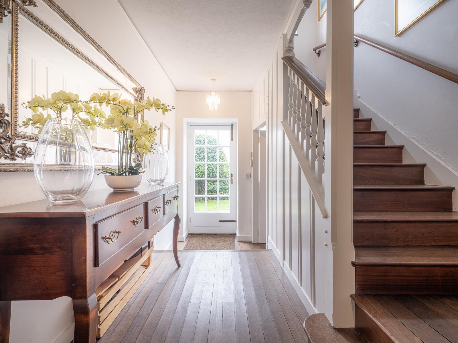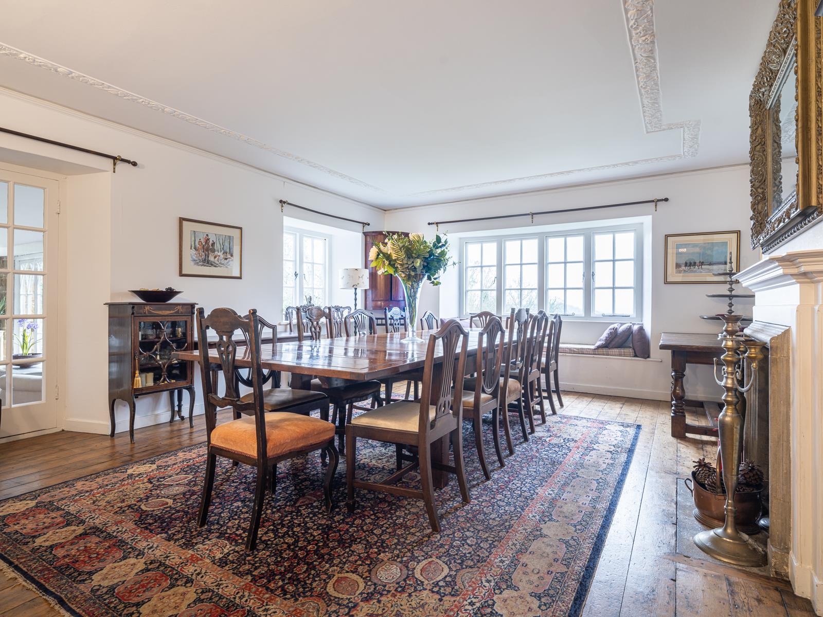 The accommodation is versatile and has been a family home and wedding/private hire venue. The property is beautifully presented and full of character. The stunning staircase, exposed beams and fine decorative plasterwork are a few of the many highlights. The principal rooms face south, taking full advantage of the views and light overlooking the private gardens and grounds.