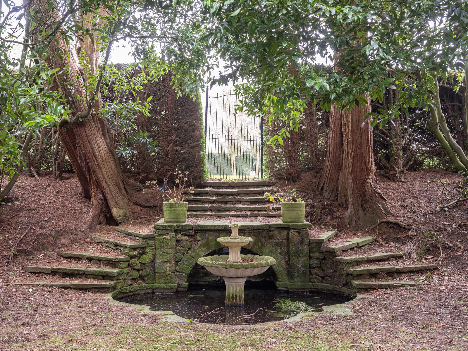 The gardens are divided by yew hedges and shrubs. There is a water garden, a former kitchen garden, terraces, and many impressive trees. Beyond is a tennis court and paddock with its own road access. There is stabling for ponies with water and electricity, along with an area for an all weather riding arena(subject to the necessary planning permission). In all about 9 acres.
