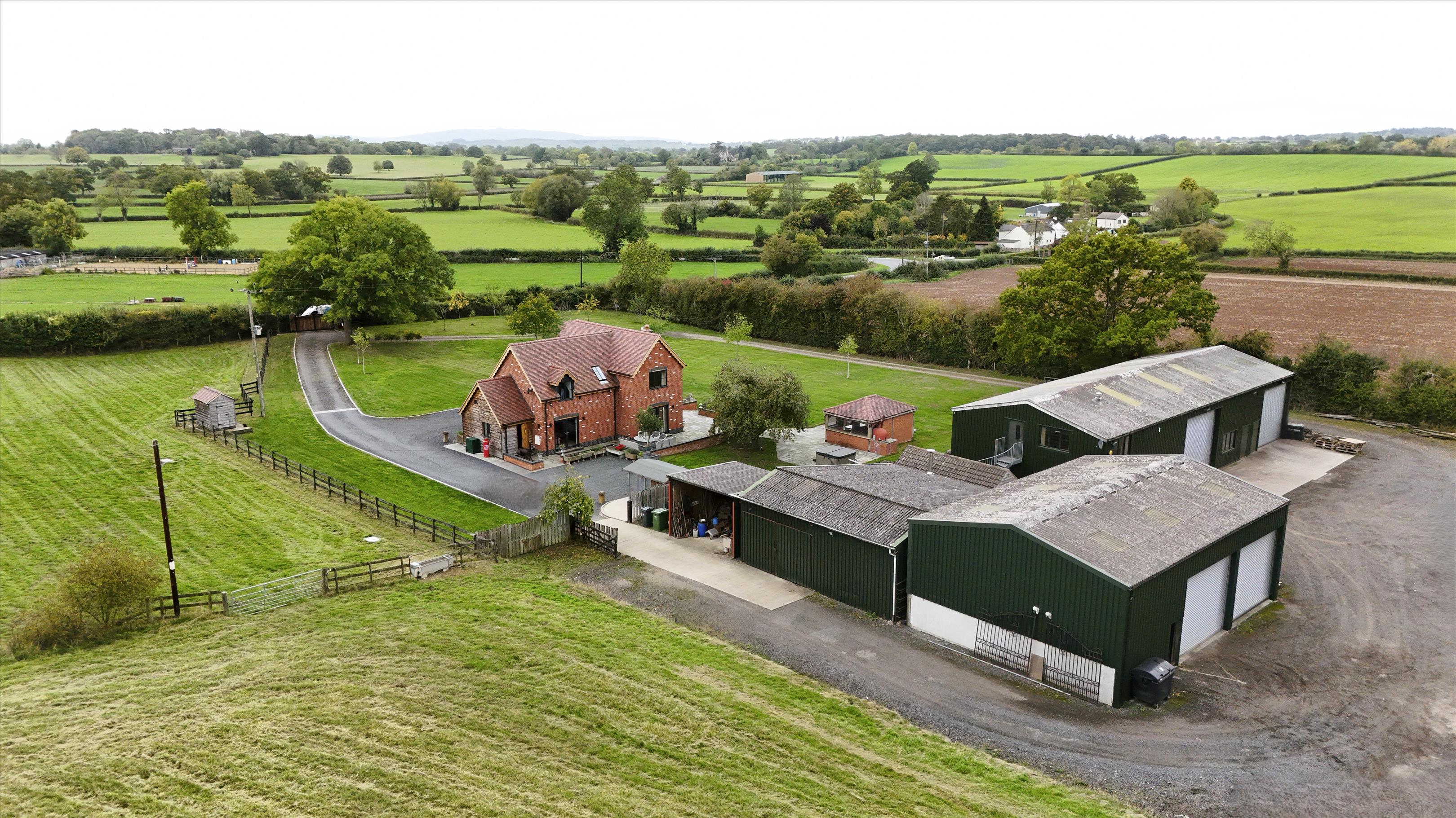 Set back from the lane and surrounded by over seven acres of gardens and paddocks, this impressive home enjoys complete privacy and rural tranquillity. Electric gates open to a self-contained site that combines a newly built family home with a range of versatile outbuildings, ideal for residential, agricultural or business use.