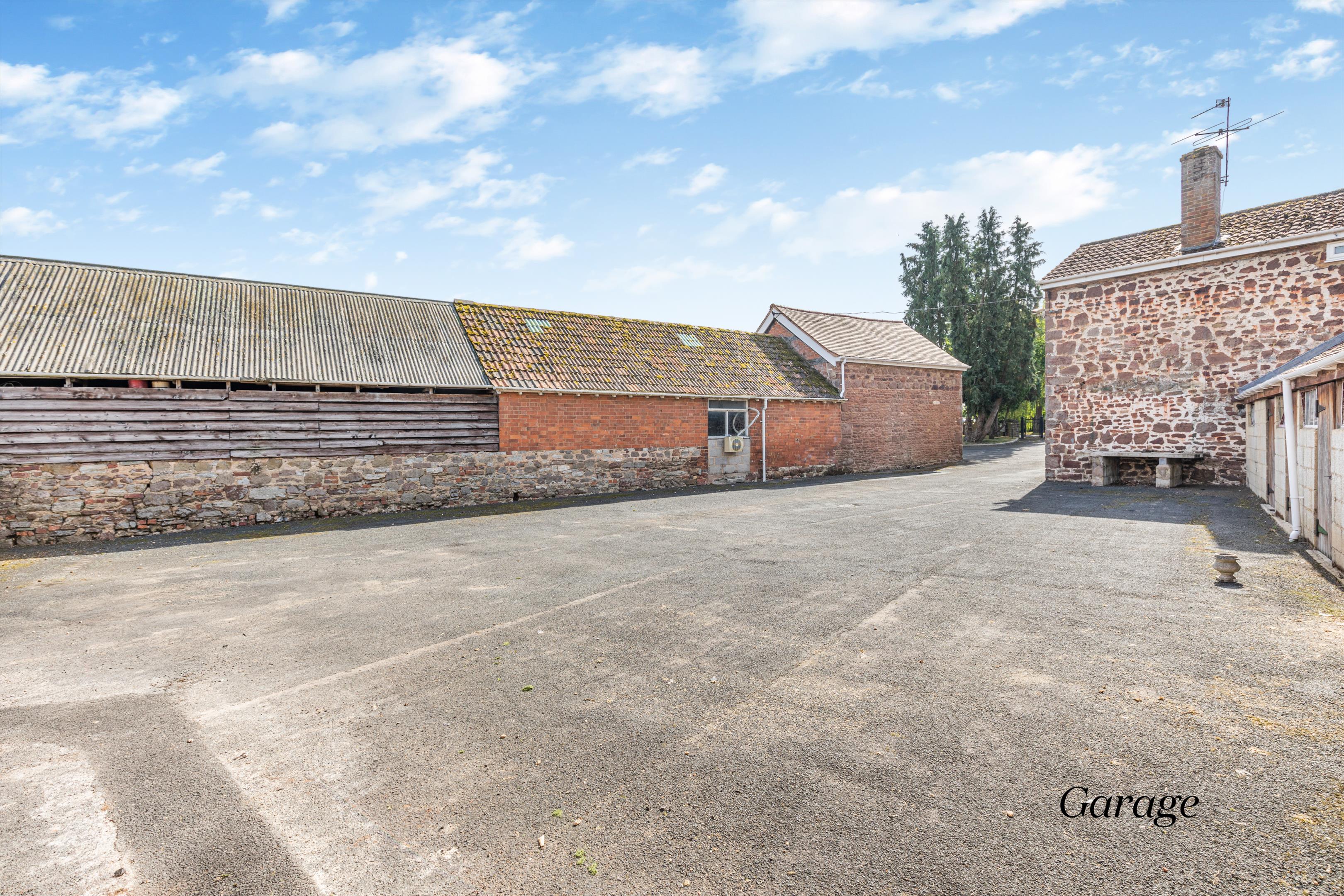 Set behind a walled boundary and electric gates to the front, the driveway runs past the garden in front of the house and the granary to a courtyard of redundant original agricultural buildings (single storey brick and concrete block construction) that includes garaging.