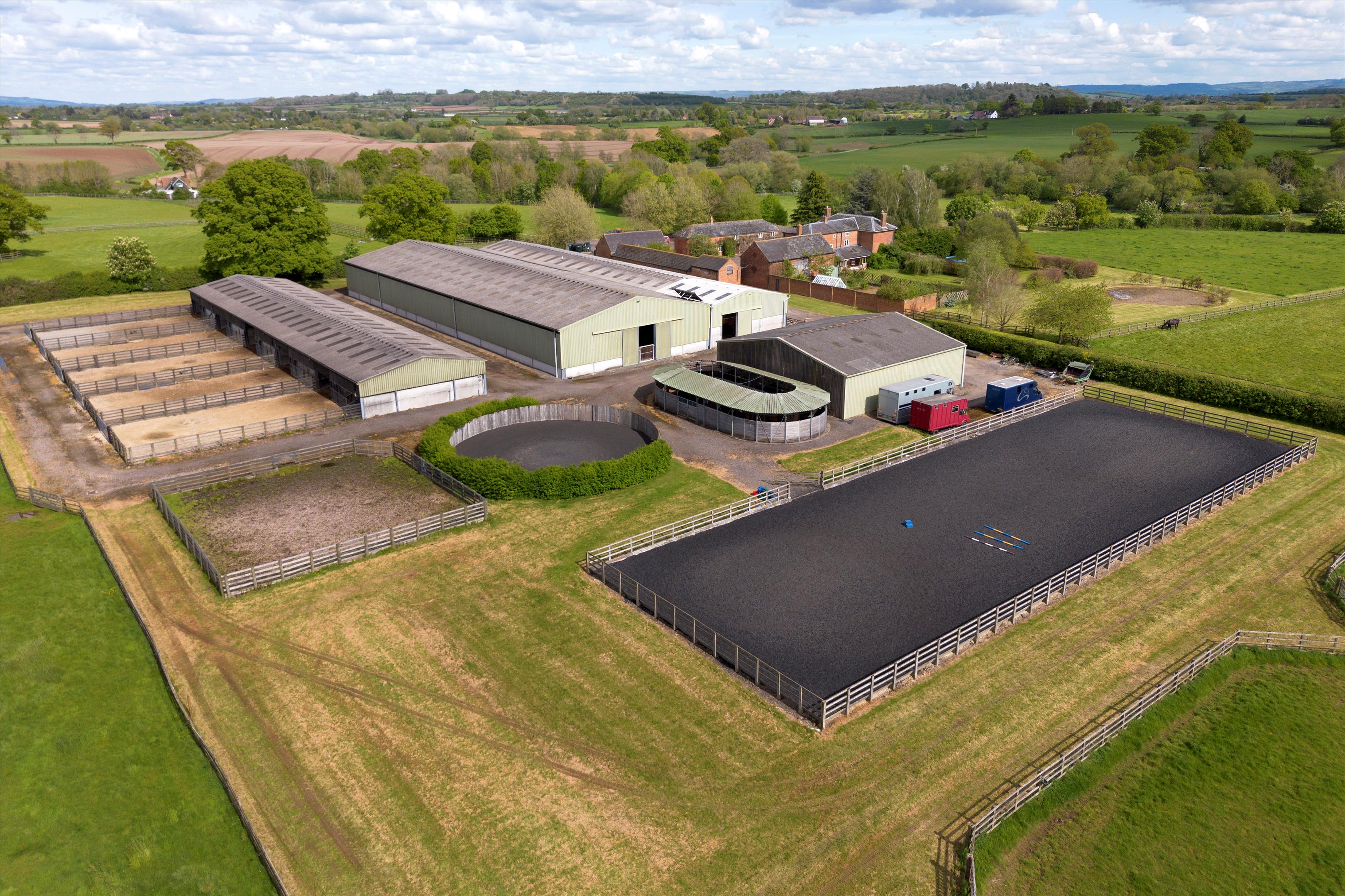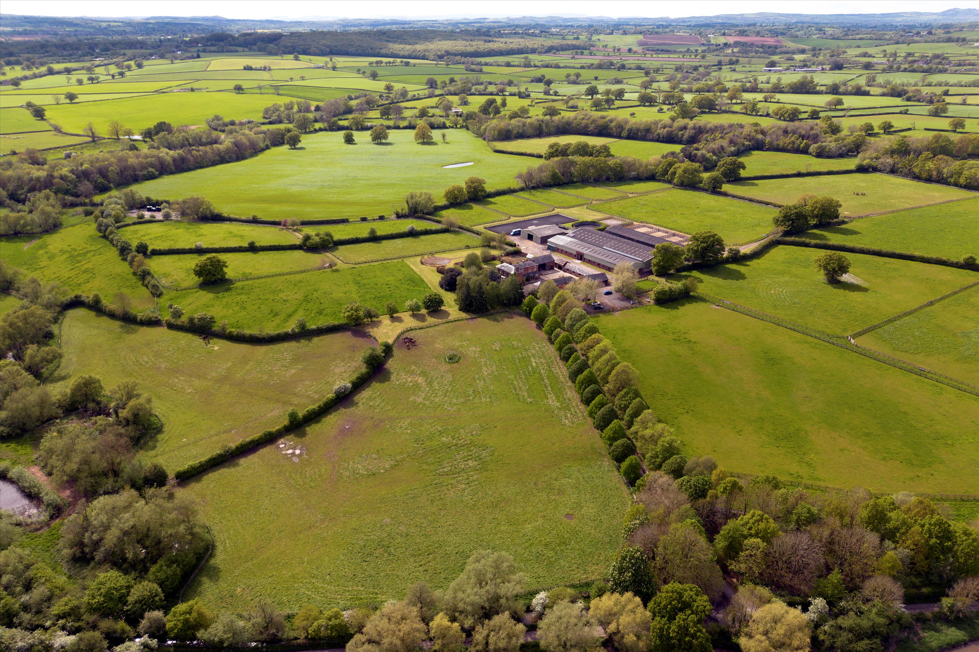 A level ring-fenced land holding with no public rights of way across the property, the estate has been created to work in conjunction with the equestrian yard with safe cornered post and railed paddocks, turn-out fields and grassland tracks for easy access and maintenance. In addition to the Equestrian business, the owners have taken great care to create wildlife areas, encouraging biodiversity and, along with minimal artificial inputs allow flora and fauna to thrive. Beyond the formal field pattern are planted woodlands, a natural water-fed lake and a large fodder field to provide haylage production for the business.