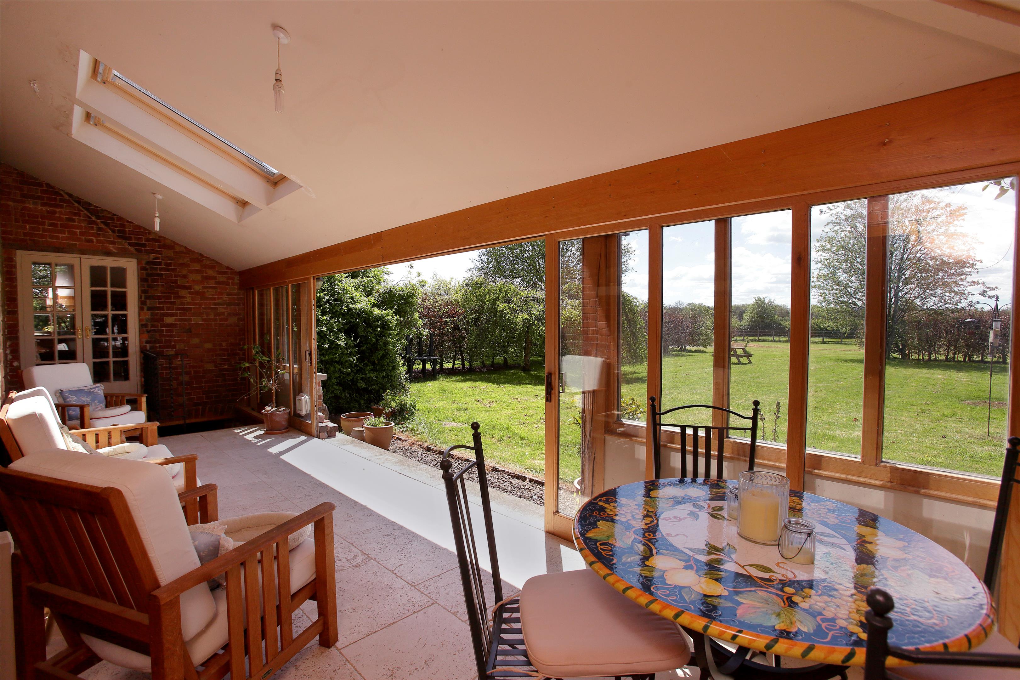 Approached from a quiet country lane, through gates on to a long tree-lined driveway, Stanbrook Farm is an impressive equestrian estate with a Grade II listed Georgian house at the heart, which was sympathetically renovated and extended a number of years ago to provide a comfortable and practical family home. Adjacent to the house is a traditional range of former farm buildings that have been partly converted into additional accommodation and with the potential to create something special from the former double-height threshing barn, which adjoins the main house.