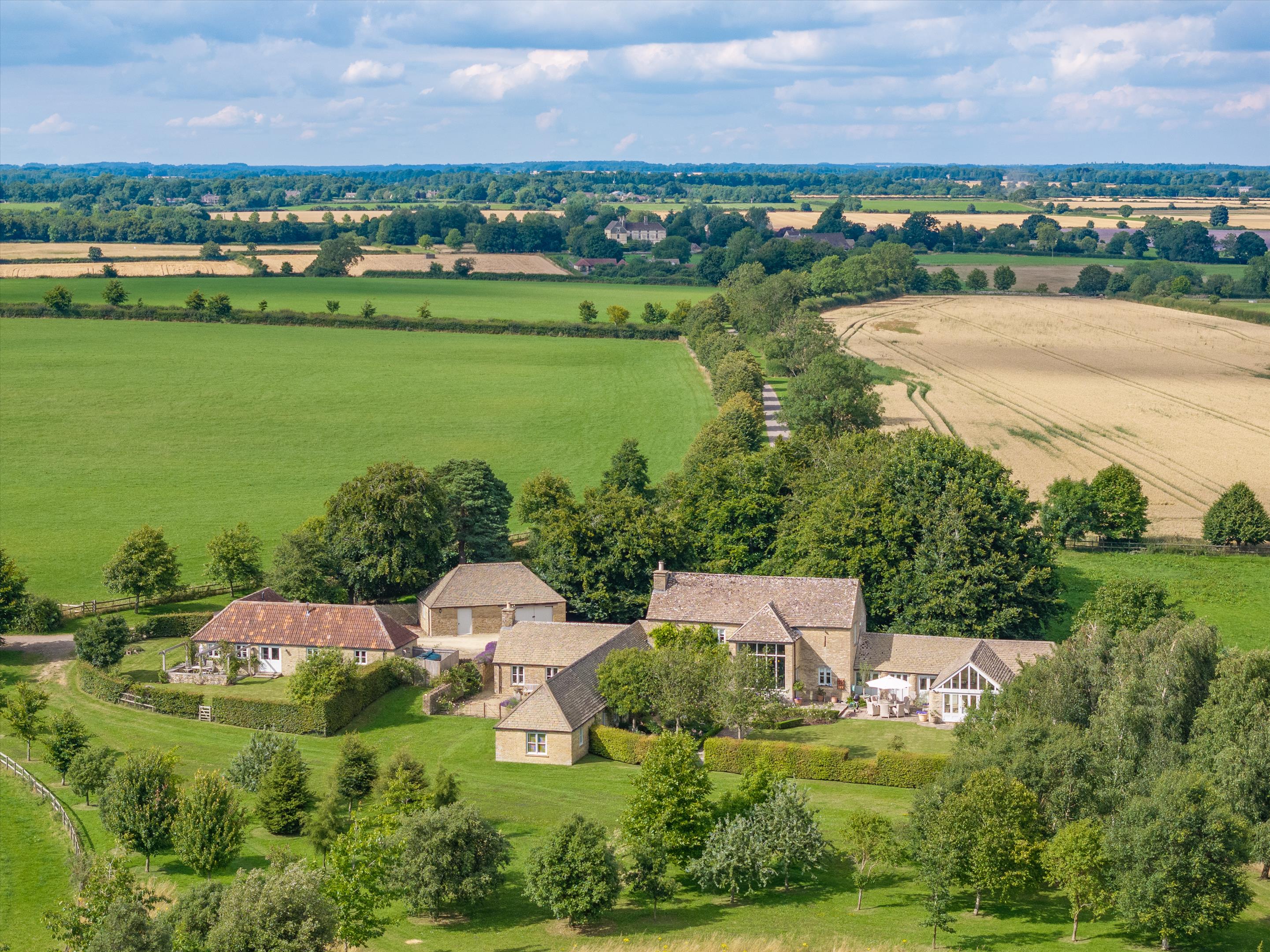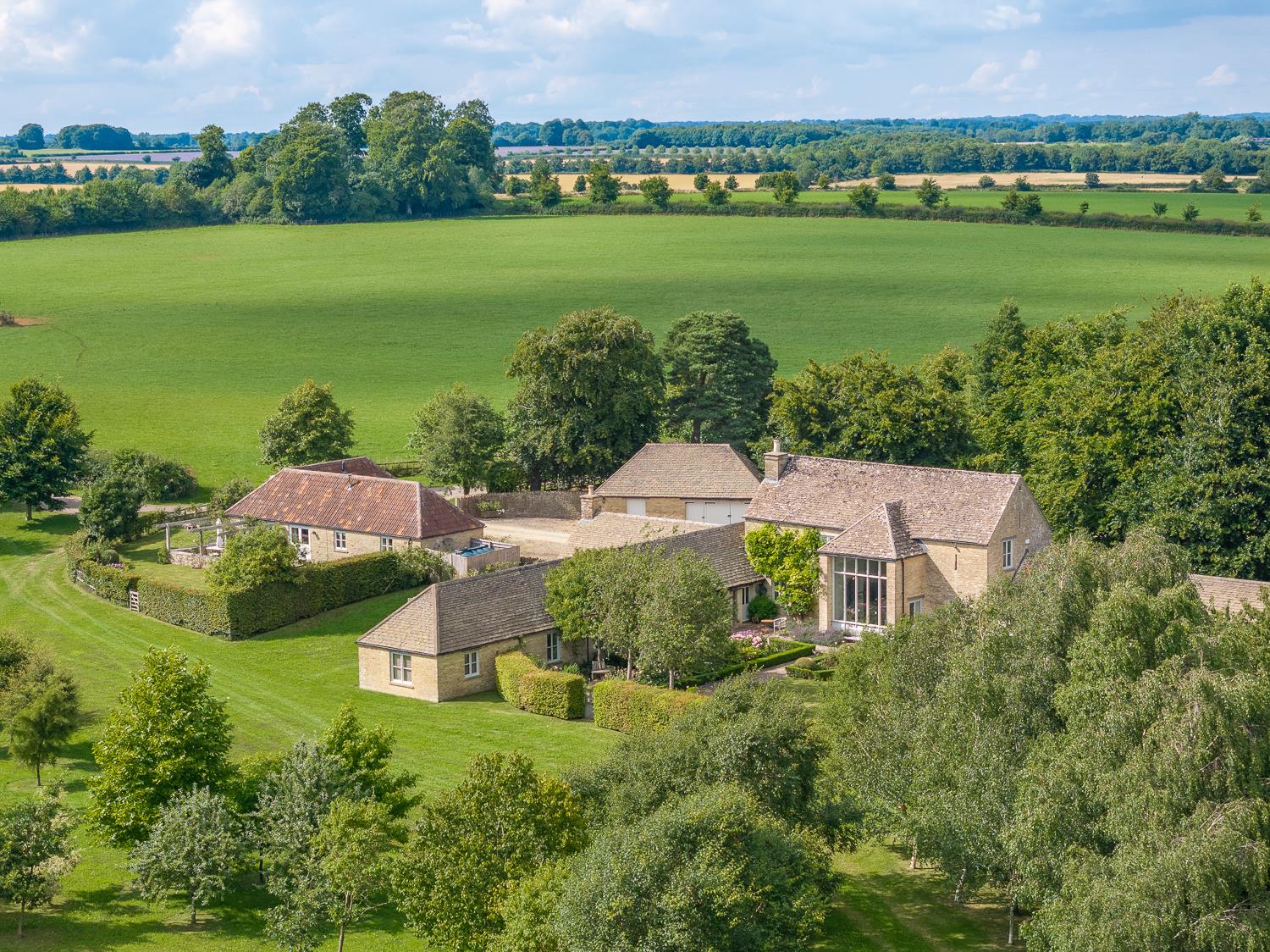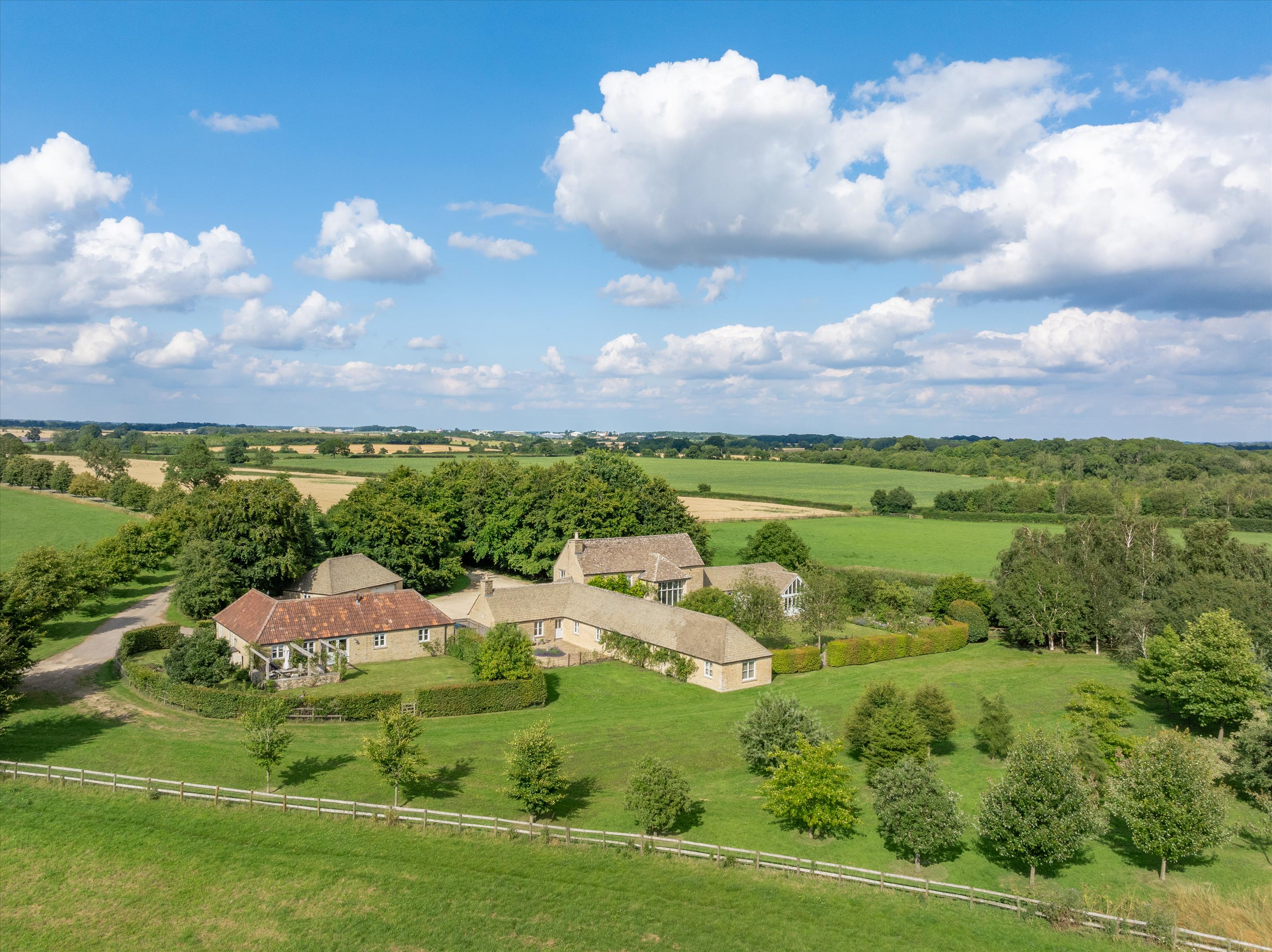 LOT 1: Ashley Marsh Farm - A Cotswold Stone Barn with five bedrooms and ancillary two bedroom cottage with beautifully landscaped gardens and surrounding parkland setting approached by a private tree lined drive.