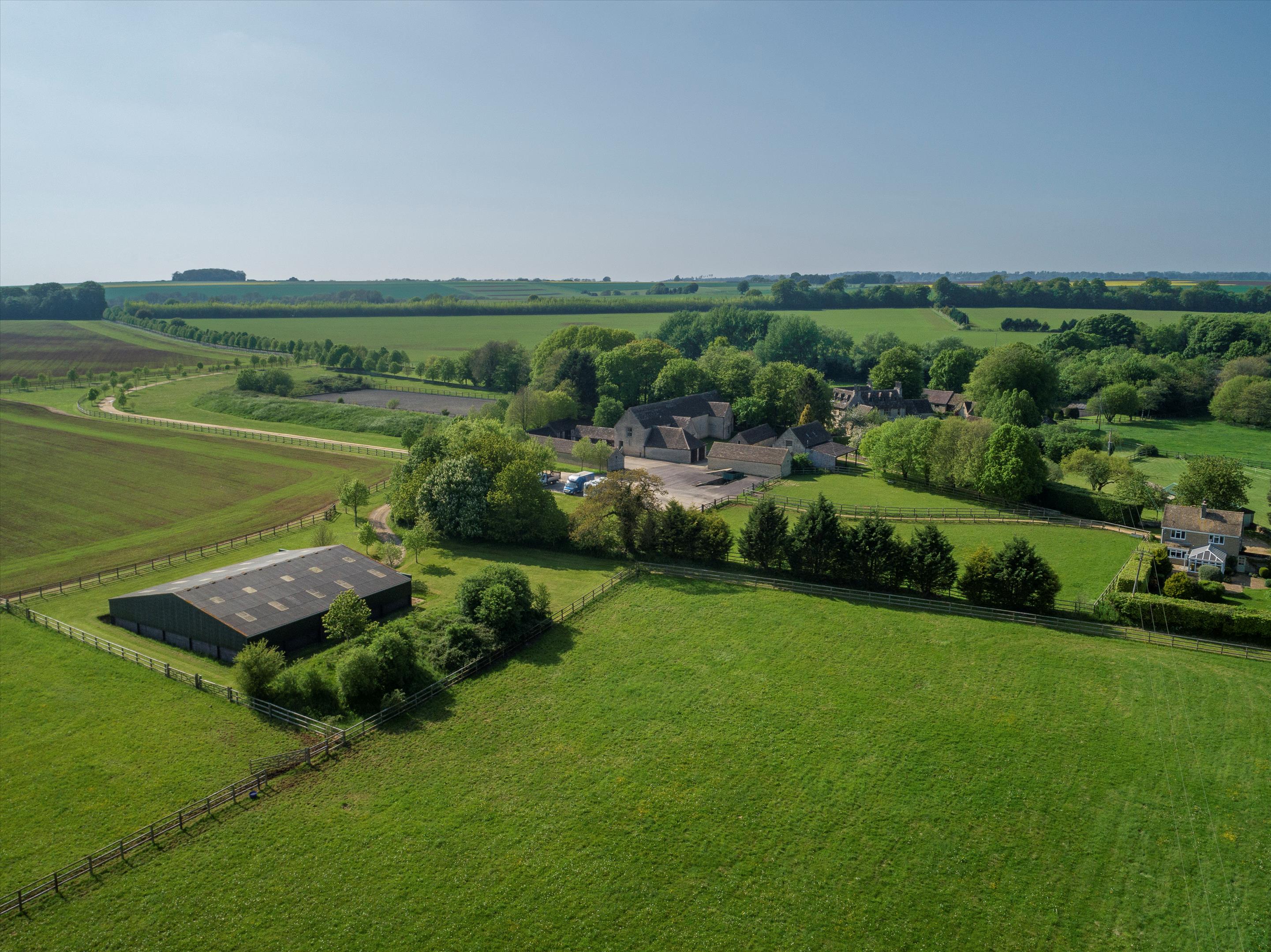 The land historically has been farmed in an arable rotation but all fields have been drilled to grass. According to the Soil Survey of England and Wales, the predominant soil type is of the Elmton 1 series. Described as shallow, well drained, brashy, calcareous, fine, loamy soils over limestone. The land is mainly Grade 3. The equestrian facilities at Saddlewood Manor include the range of traditional stables, an outdoor all-weather school, paddocks, and a large agricultural barn which could be used for additional stabling or extended to create an indoor arena. The previous owners used some of the land for a 25 acre polo field.