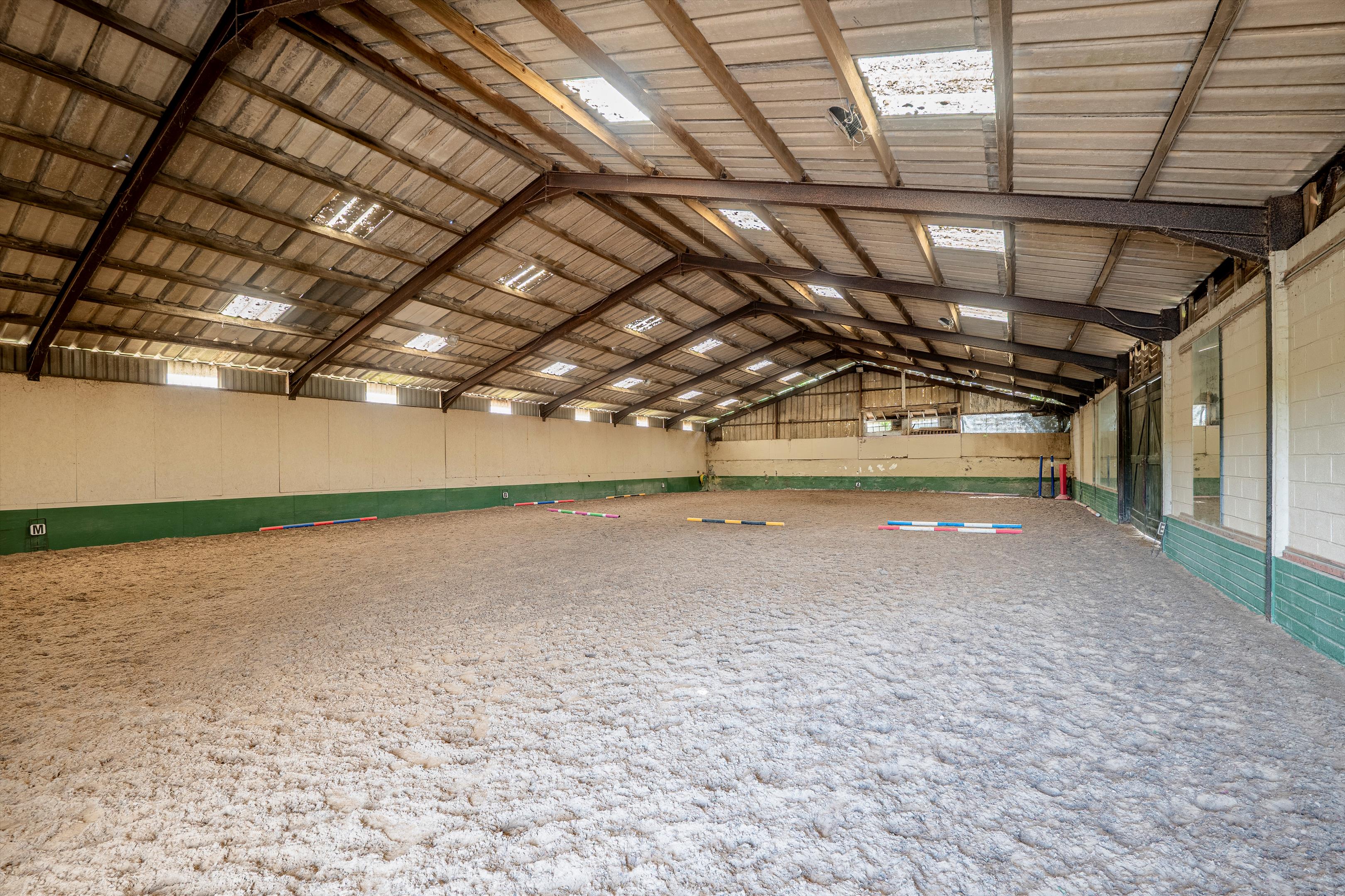 comprises 7 stables with a tack room a wash bay. Lying alongside the drive is an indoor arena 35m x 20m with a Michael Collins all weather surface, and viewing gallery. Opposite the stables is a 5 horse walker, and an outside arena. Lying to the north of the arena is a natural pond and a mixed orchard of apple, pear, plum and damson.