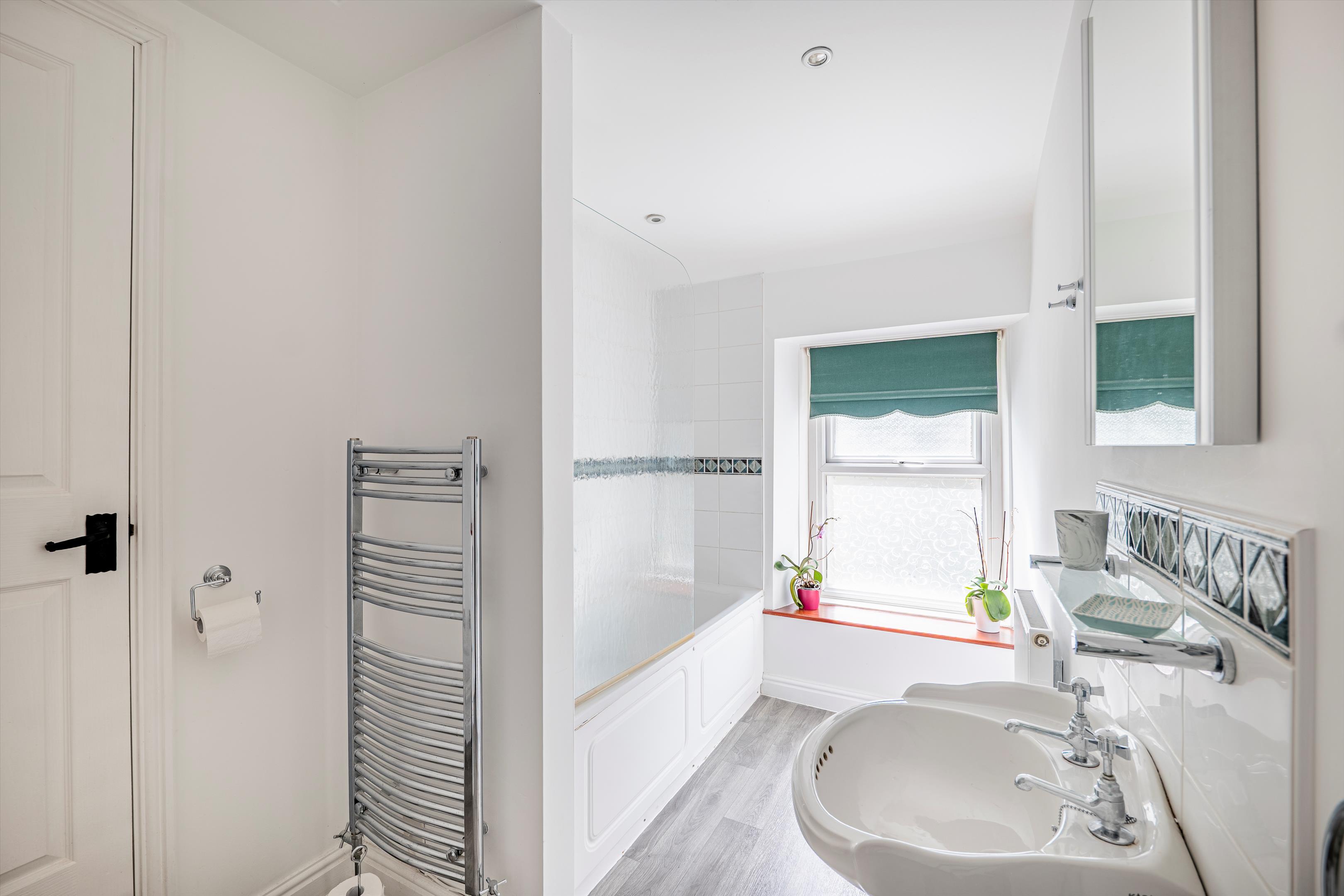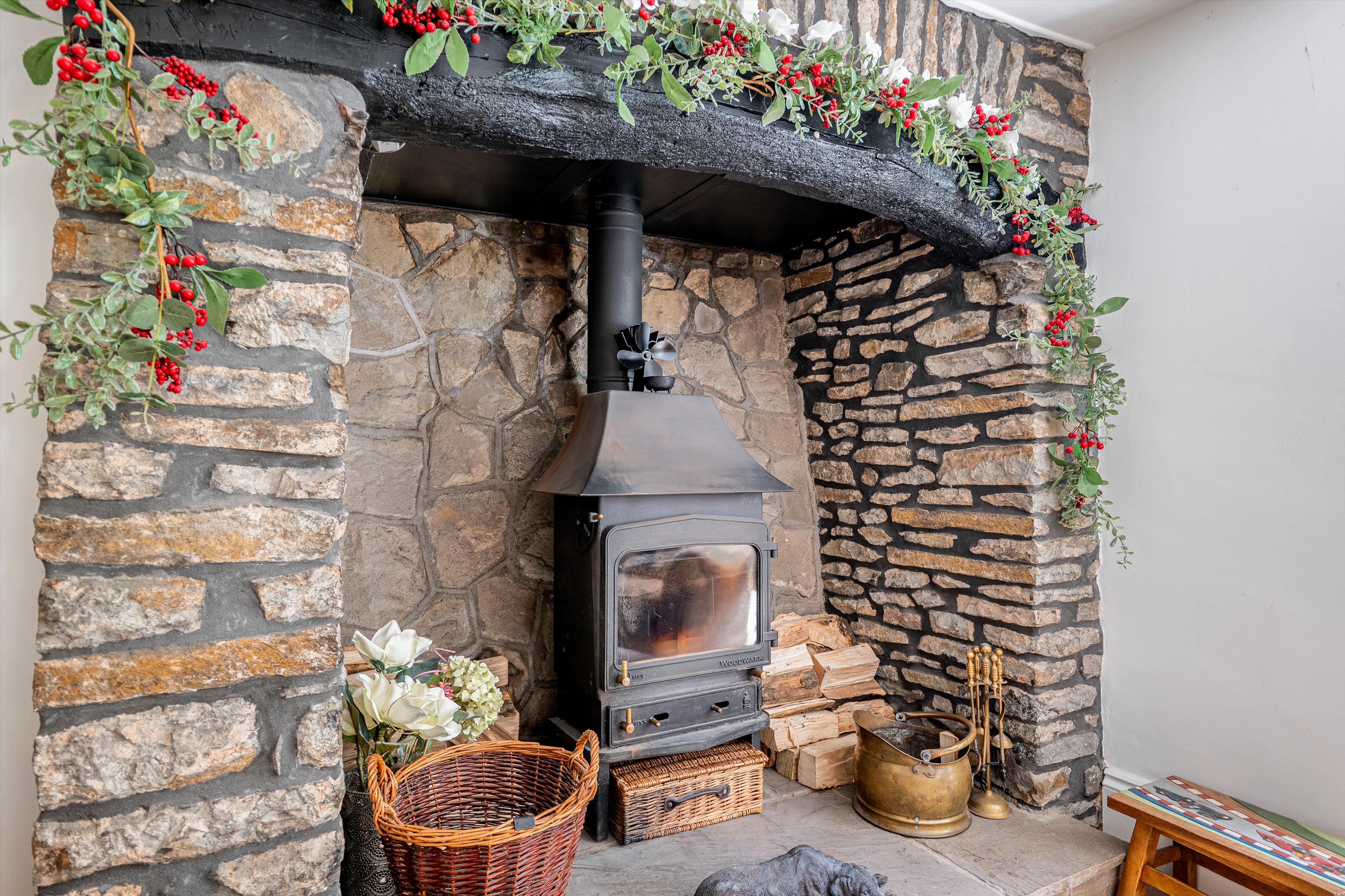 The house is very well presented. The kitchen, with separate breakfast room, is fitted with purpose built painted wood units, Rangemaster cooker and integrated appliances. The sitting room has a stone inglenook fireplace with log burning stove, and the conservatory opens to the garden. On the first floor, the principal bedroom, with Juliette balcony and superb views, has an en suite dressing room and bathroom. There are two further bedrooms and bathroom.