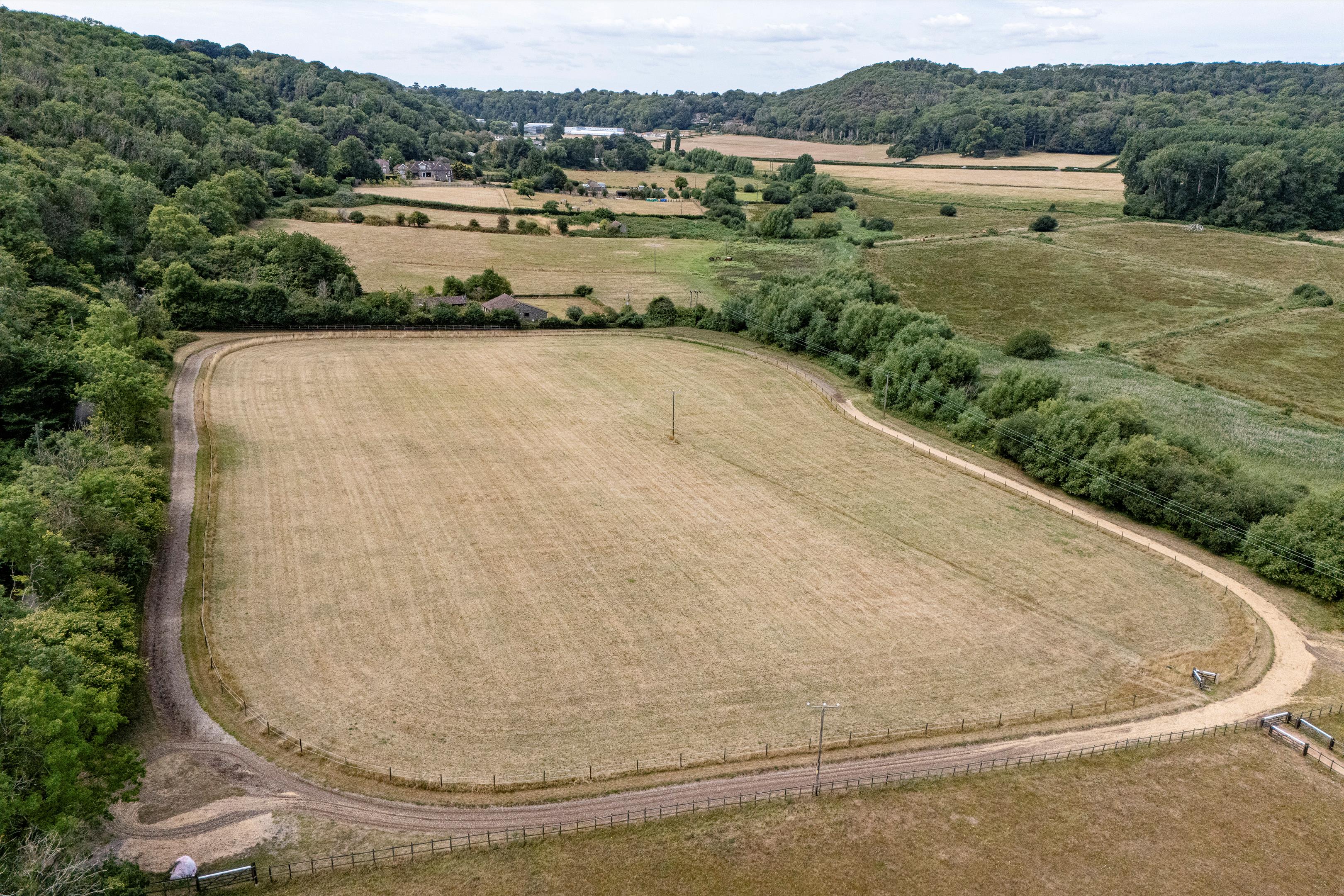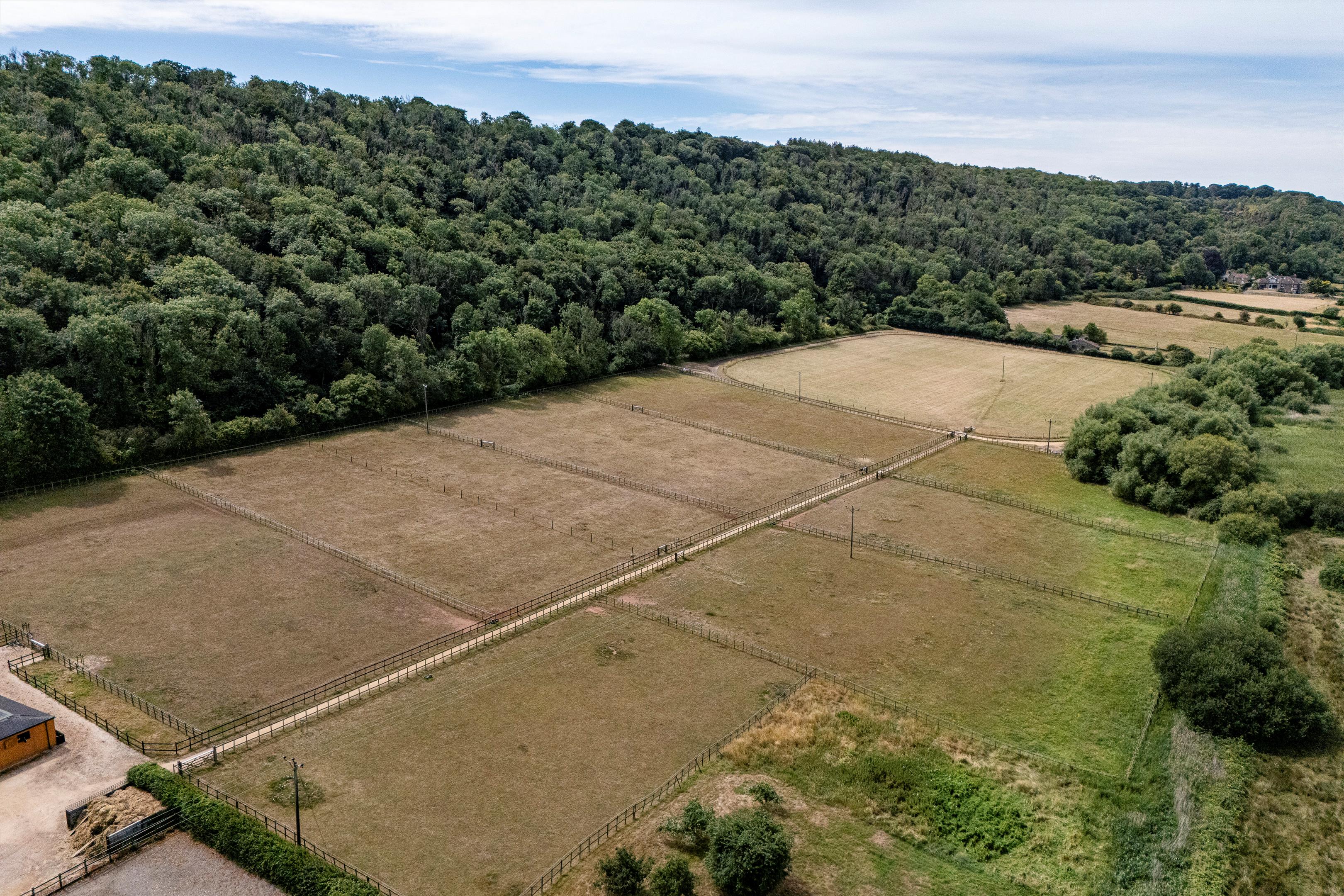 The land is divided by post and rail fencing into 13 paddocks all of which have water, and lie principally to the west of the yard, with 4 paddocks lying to the east of the drive. From the yard, to the west, a track leads past the paddocks to a gated area and opens to an 8 acre field around which is a 3 furlong canter track.