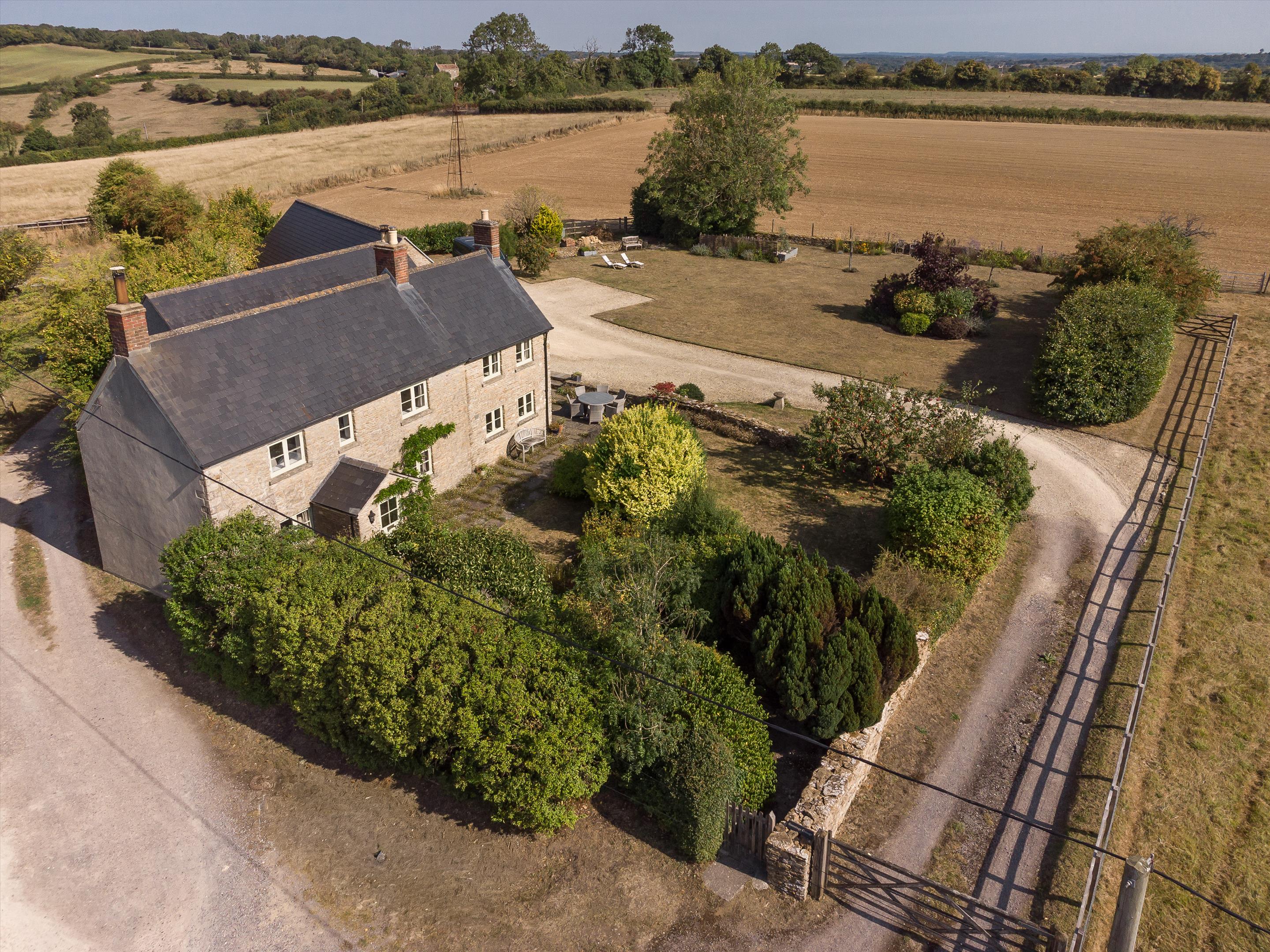 The mature gardens comprise entertaining terrace, and large lawns with beautiful flower beds. There is also a kitchen garden. Beyond this a post and rail fence which frames the fields and denotes the paddock. There is a footpath that runs through the field. There is also an active 'icehouse', and a windmill water pump, with borehole where natural spring water can be accessed.