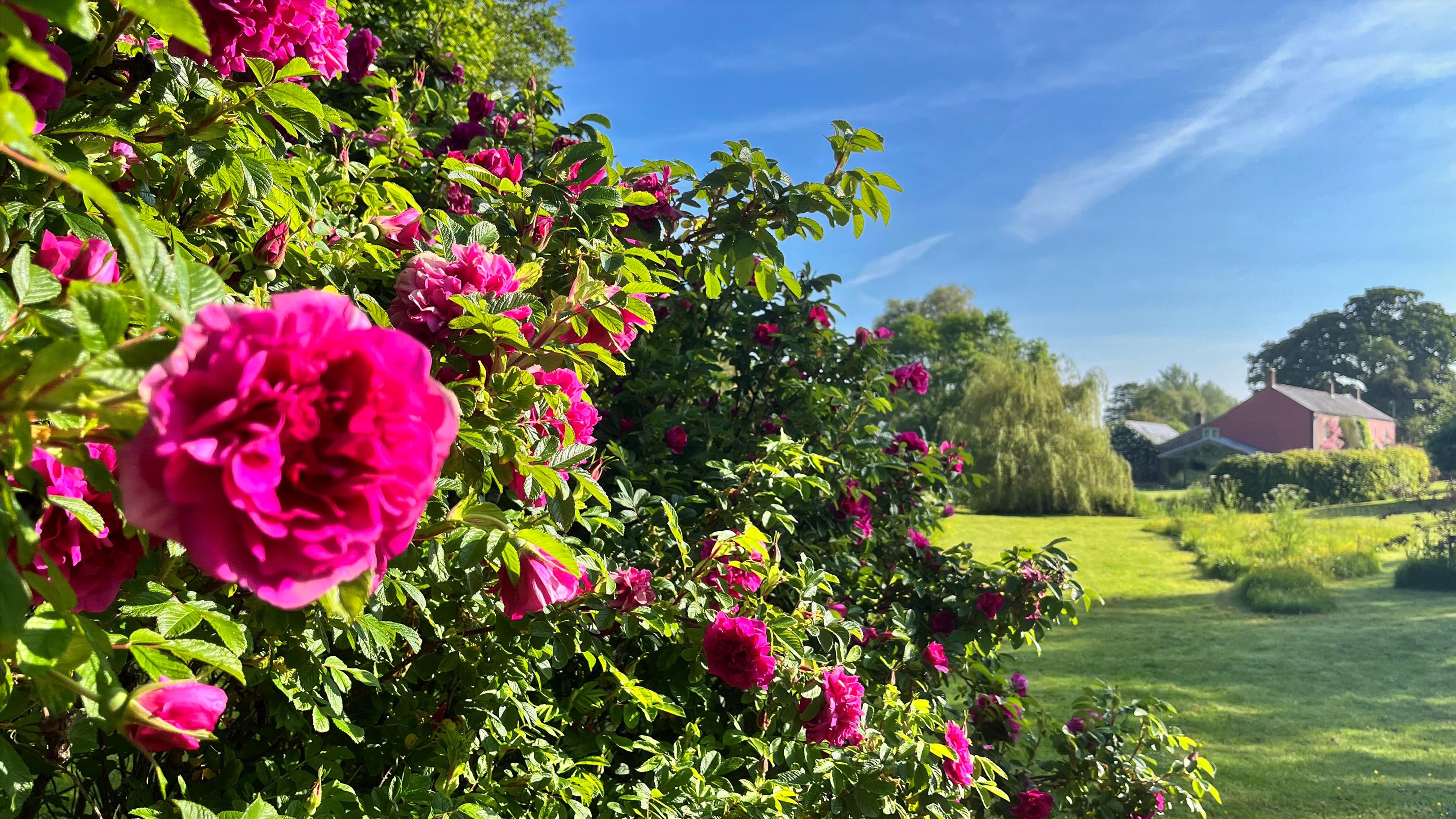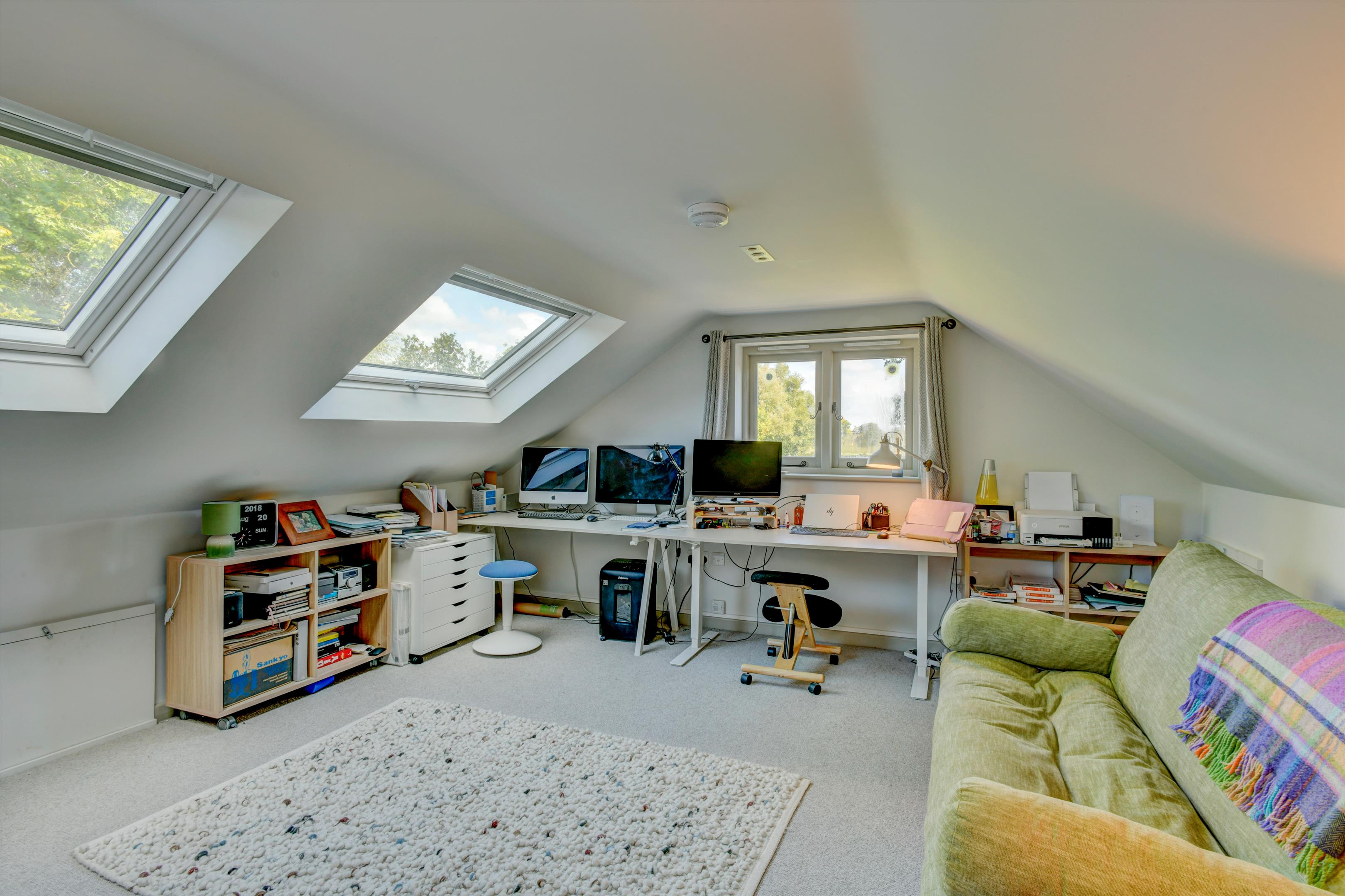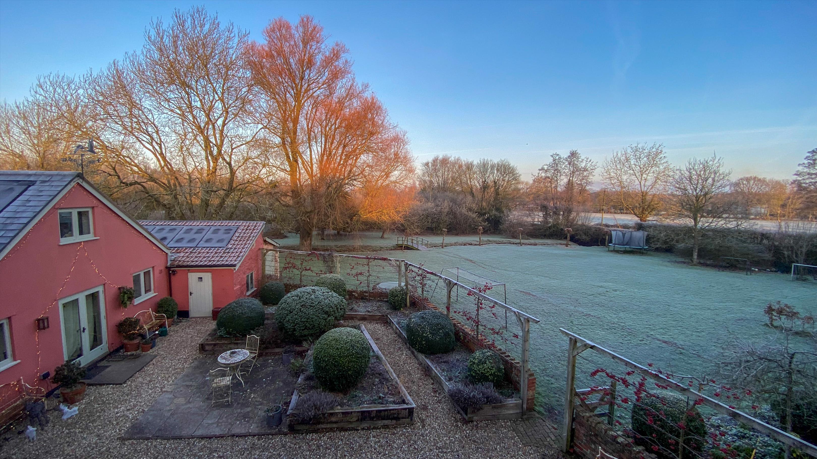 flooring and views over the garden and pond and French doors out to the rear terrace. A staircase from the boot room rises to the studio/bedroom 6 and there is access from the hobbies room into the storerooms and workshop. The conservatory, boat room, and hobbies room all benefit from thermostatically controlled underfloor heating. All of the bedrooms have plenty of fitted wardrobe space and enjoy lovely views over the gardens. The bathrooms are all fitted with high quality contemporary fittings. The gravel entrance driveway leads to extensive parking space and you are greeted by an old beautiful arch which leads through to the broad paved terrace to the front of the house, giving onto the partly walled front garden with level lawns edged by well stocked and colourful plant borders. A path covered by a pergola with roses, clematis and vine leads between the lawns to the kitchen garden enclosed by clipped hedging and with raised beds and an asparagus bed as well as further flower beds, fruit cage and a timber framed greenhouse.