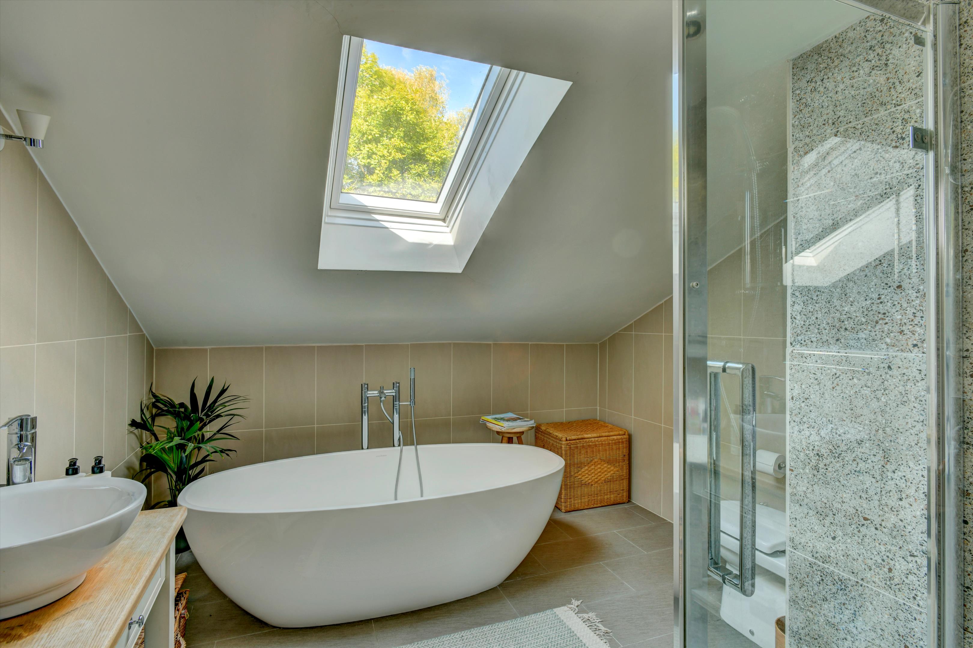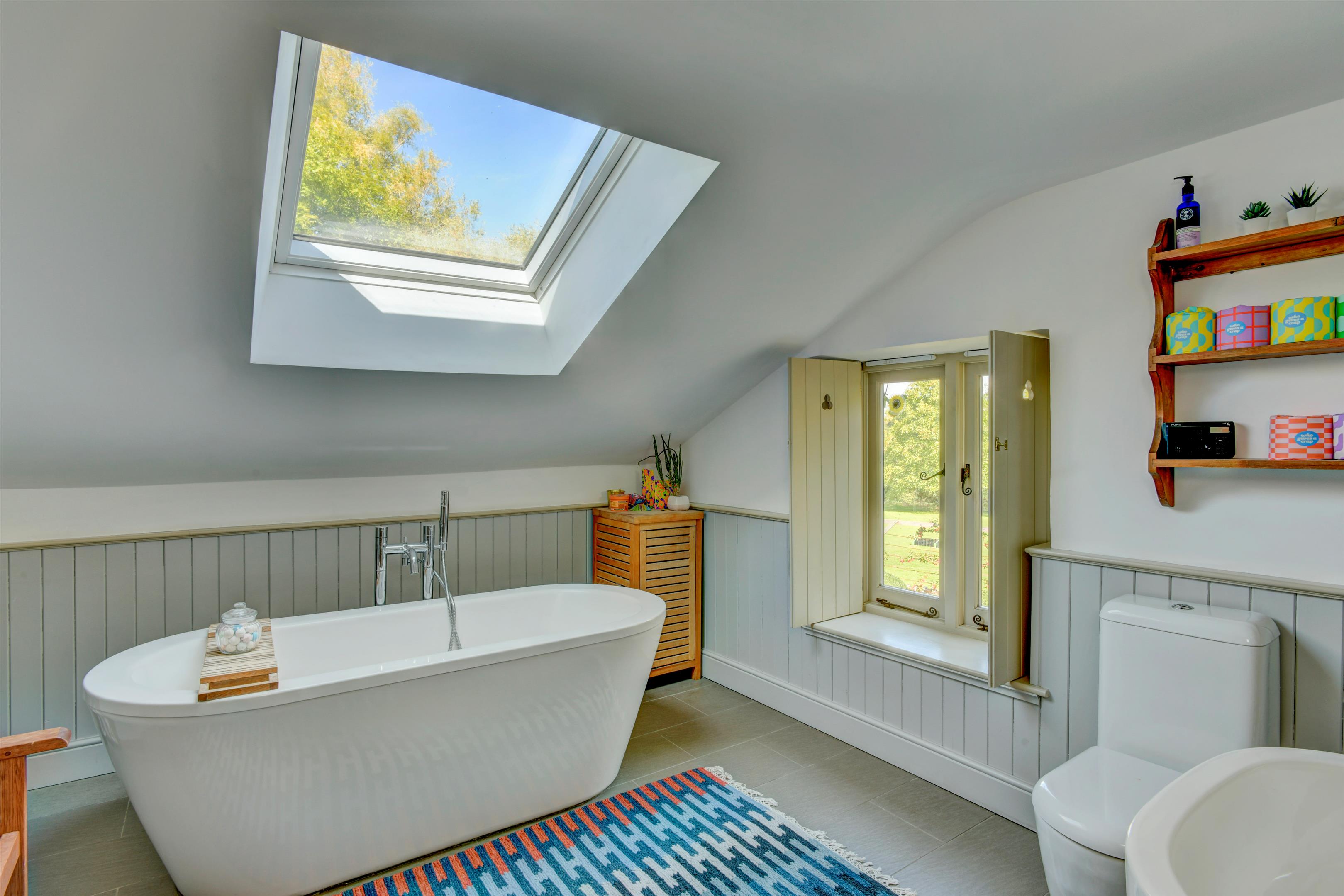 There are further extensive garden areas with delightful terrace and sitting areas, lawns, ornamental shrubs and trees and an orchard with an assortment of apple, pear and plum trees. In addition is a wildlife pond and, meandering through the grounds, a delightful small stream crossed by wooden footbridges. Also within the gardens is a shepherd's hut with power and water.