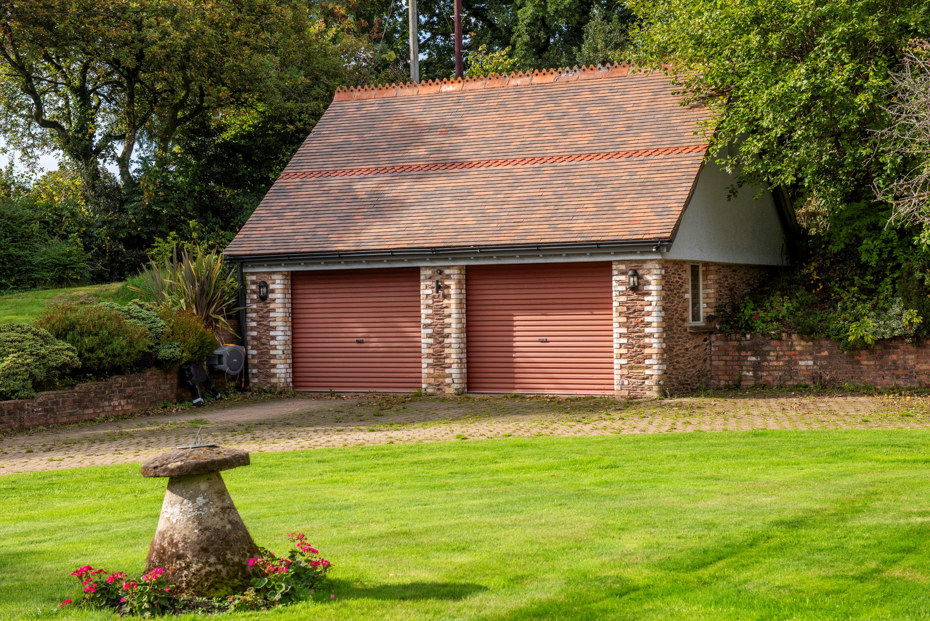 The entrance drive leads into an extensive parking and turning area, beside which is the double garage/workshop with steps up to the studio/ office above. Also beside the driveway is the stone built former granary.