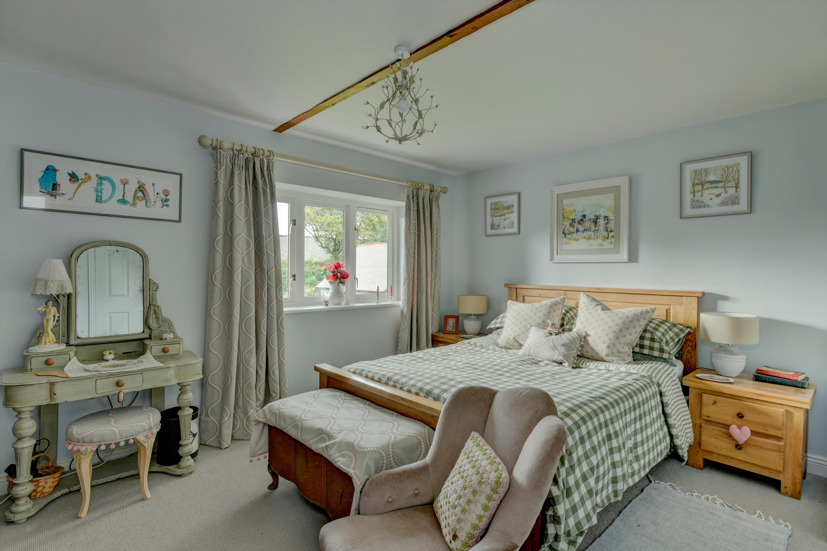 Below the gardens is a pasture paddock bordering the stream running along the eastern boundary and with separate road access. A gate leads into the stable yard with excellent L shaped stone built stable block, beneath a pitched tiled roof, with power lighting and water connected, and incorporating four loose boxes, tack room, feed store and stone paved apron.