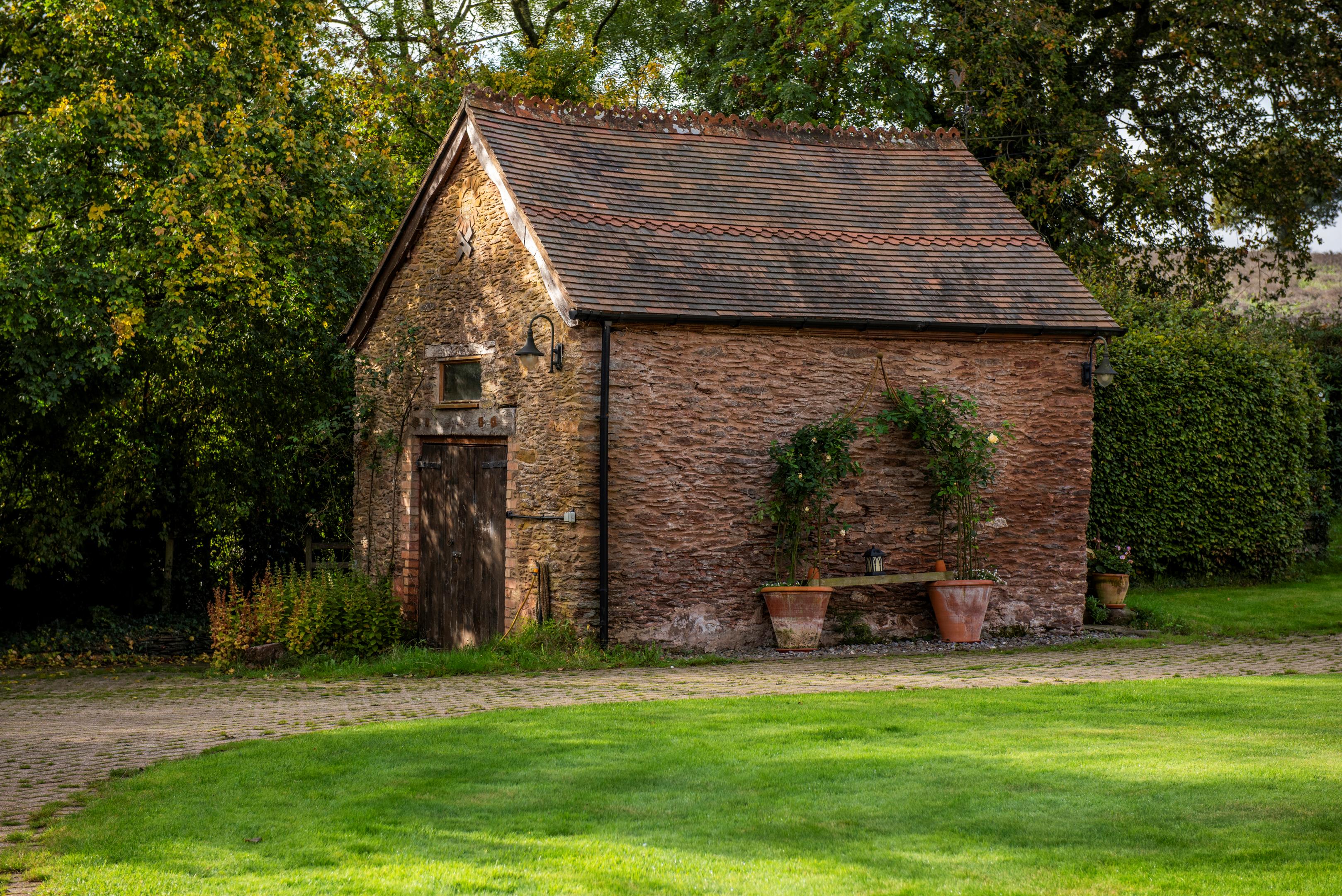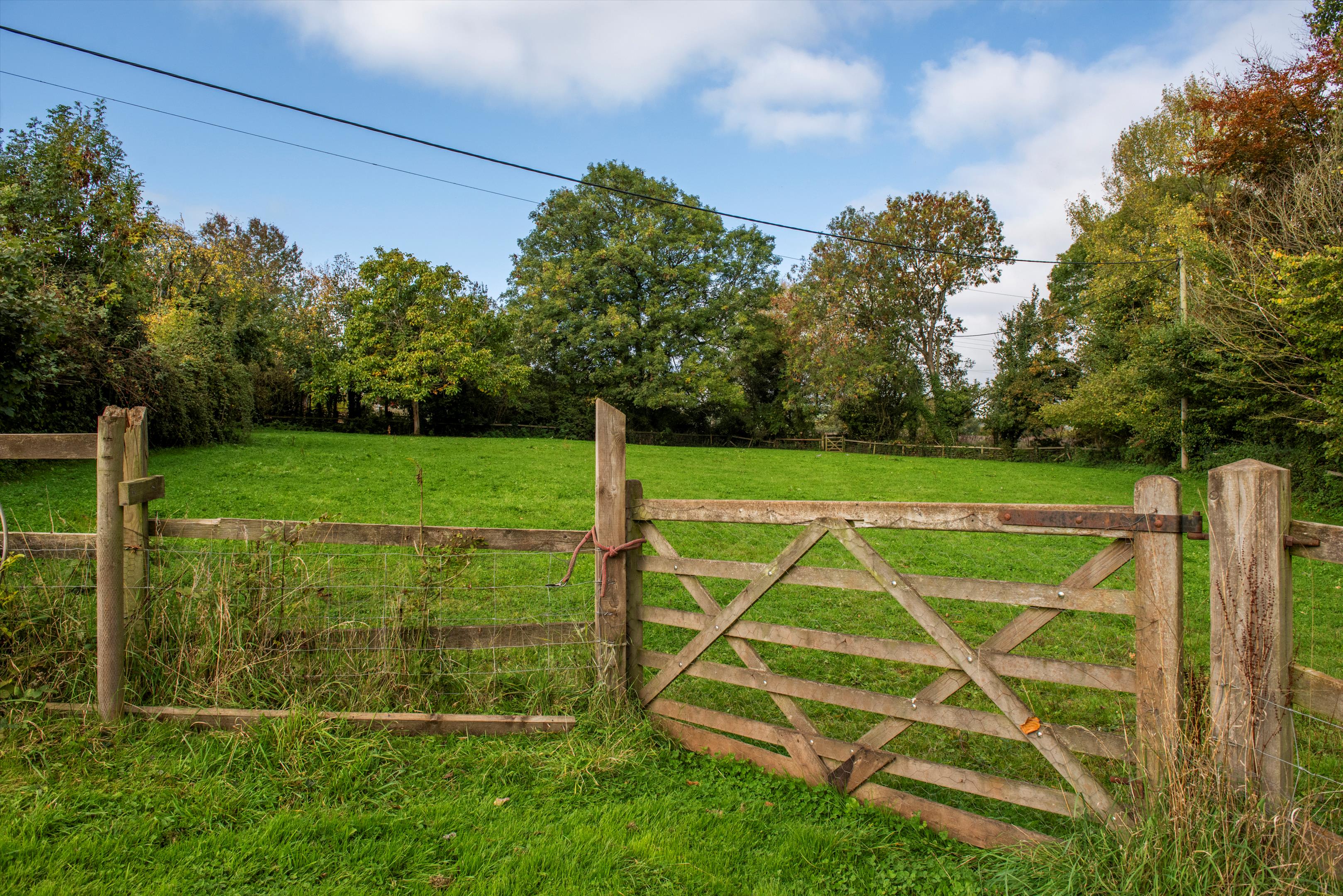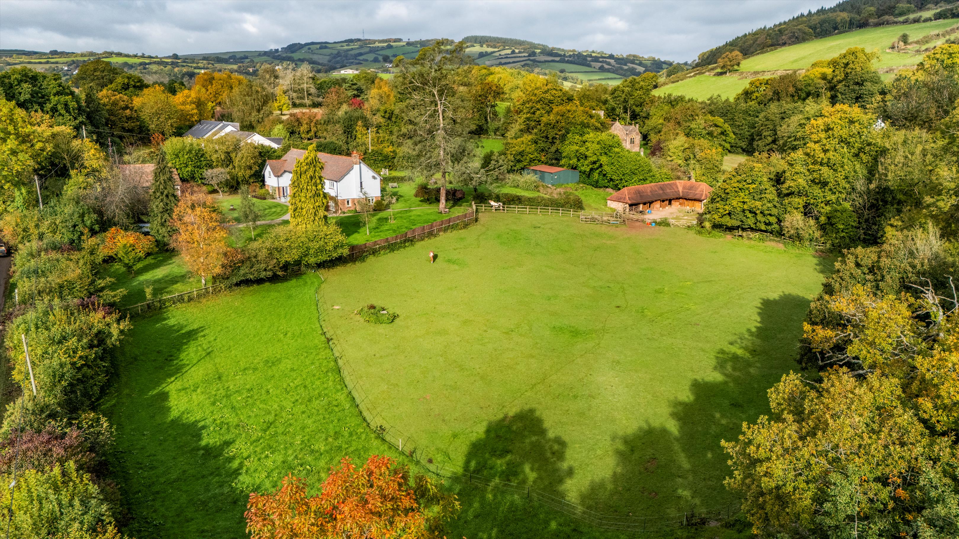 A track from the stable yard leads up past a large, useful, timber clad and insulated workshop/store, with power and lighting, and on to the top, gently sloping, pasture paddock, which adjoins the churchyard.