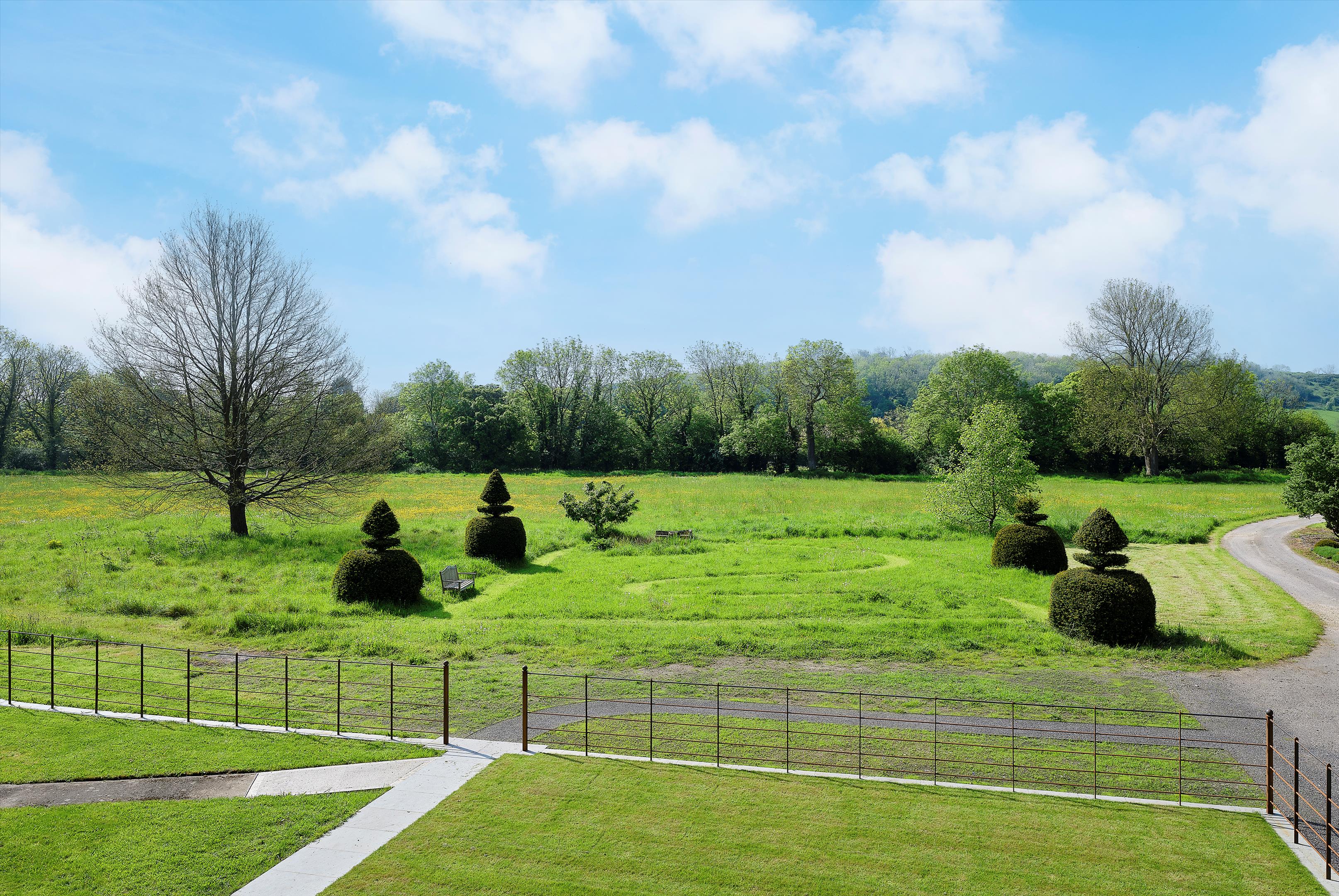 Court Farm is situated at the head of a long sweeping drive and has a wide-open view over its meadow to the south, through which the mill stream runs. There are the remains of an ancient apple orchard. The walled formal garden lies to the east of the house with a view of the village church and has a south facing aspect. The garden is most attractively planted. There is level lawn, deep borders and inset beds well stocked with a variety of established flowering plants. There are many ornamental shrubs and trees, and dense well shaped yew hedges.