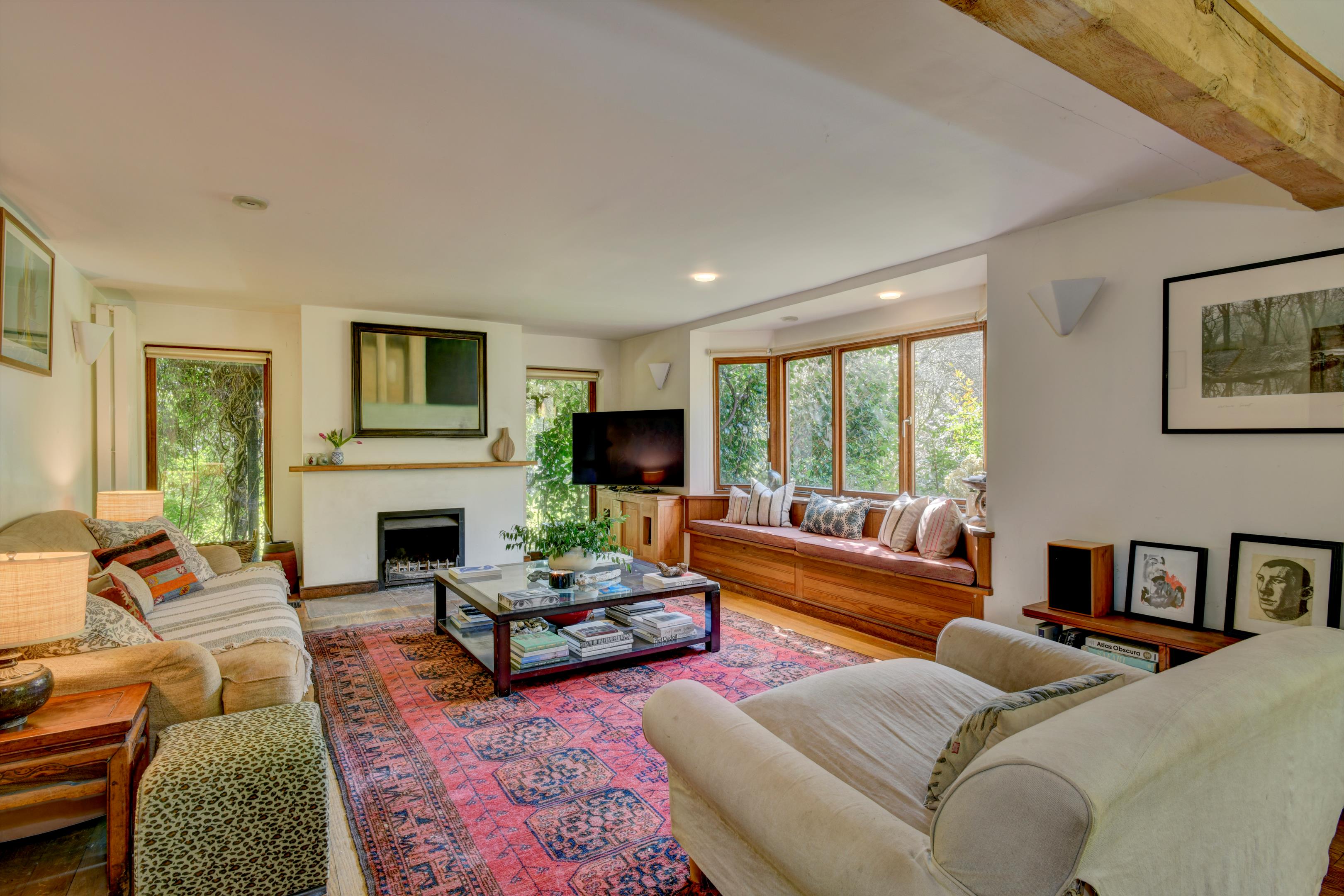 The house has been thoughtfully enhanced in recent years, blending traditional craftsmanship with a design philosophy centred on light, nature and comfort. Vaulted ceilings, exposed oak beams and gently curved internal walls are balanced by large sash windows and roof lights, ensuring the interiors are consistently bright and welcoming.