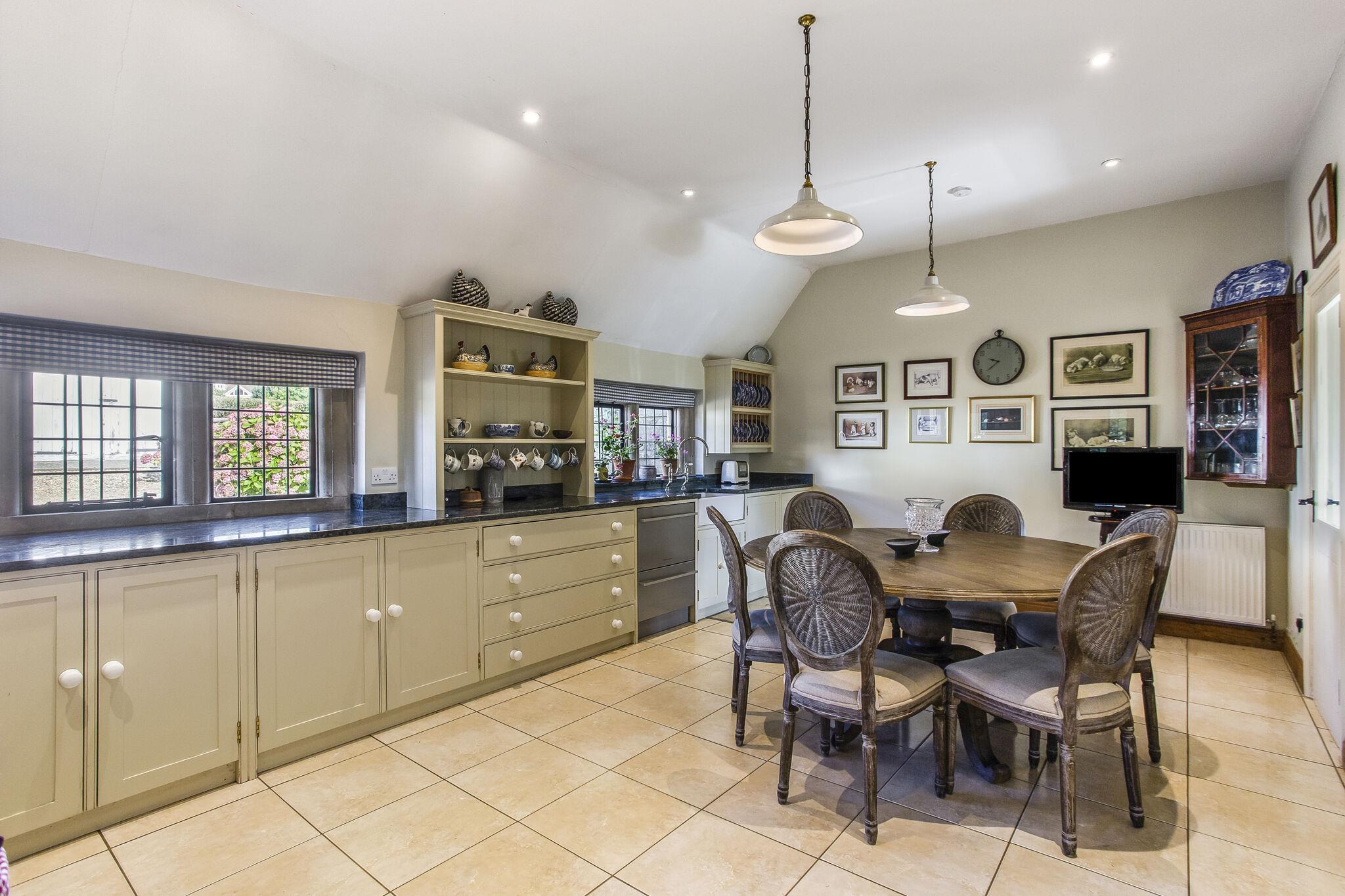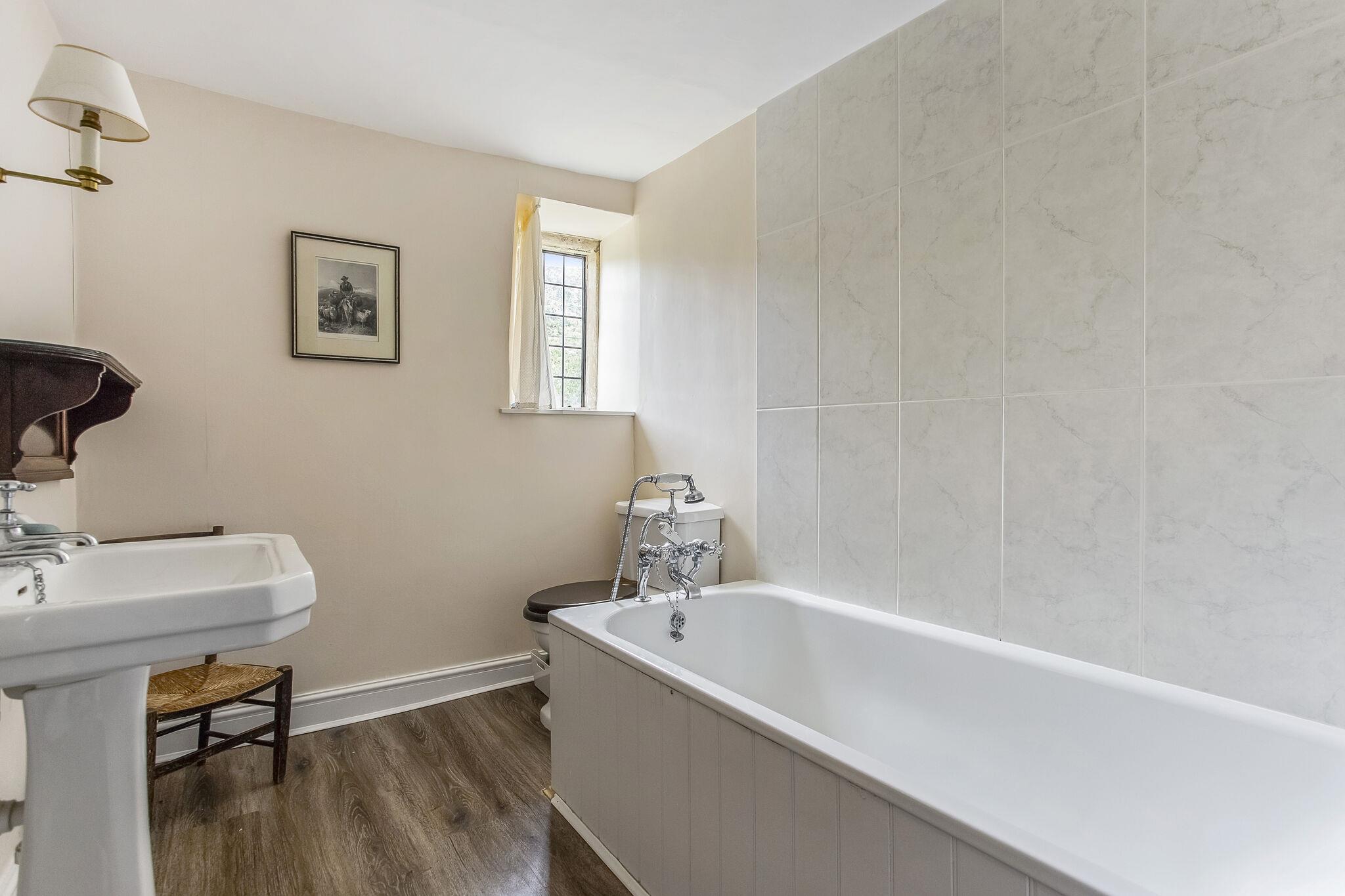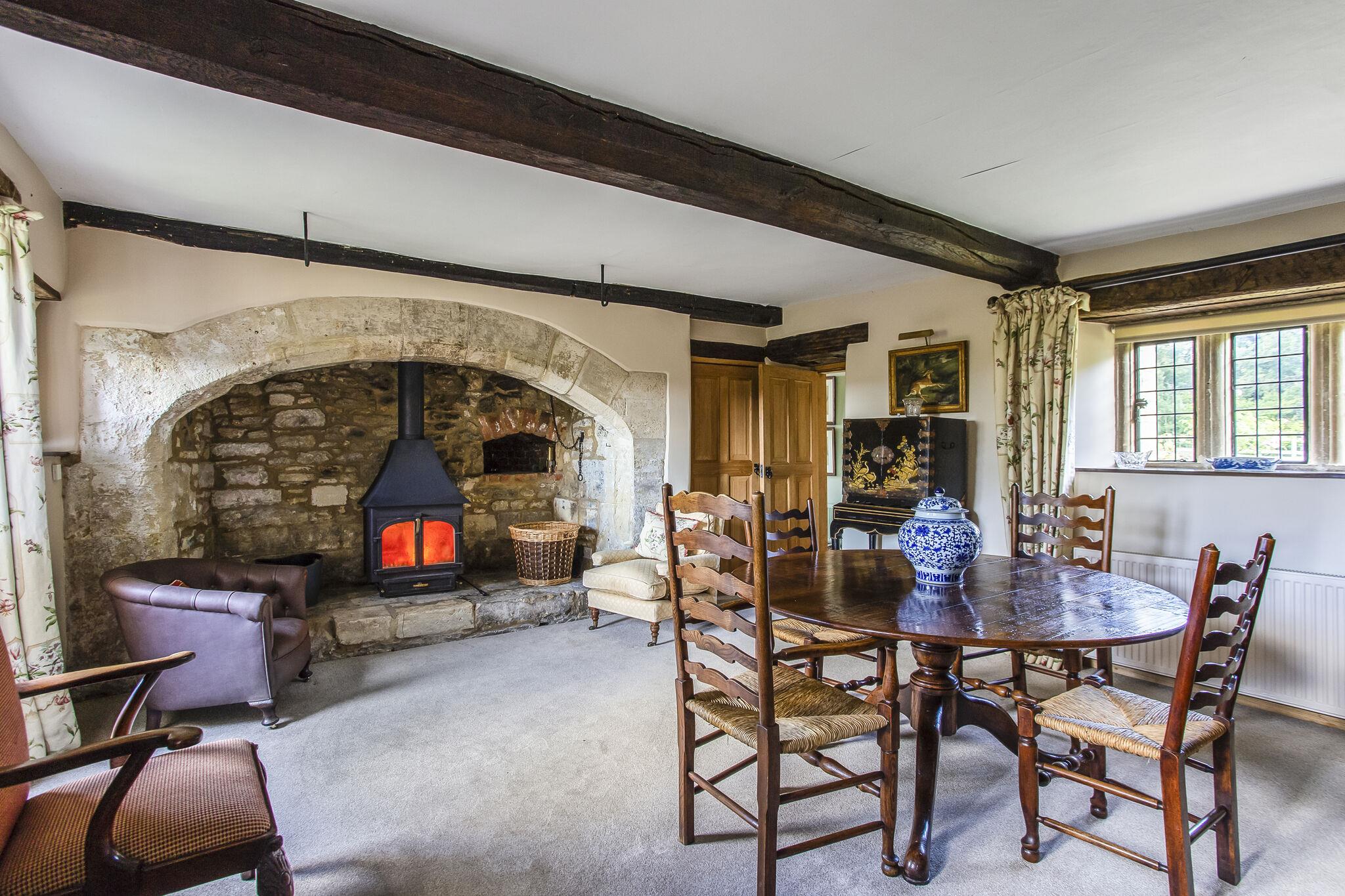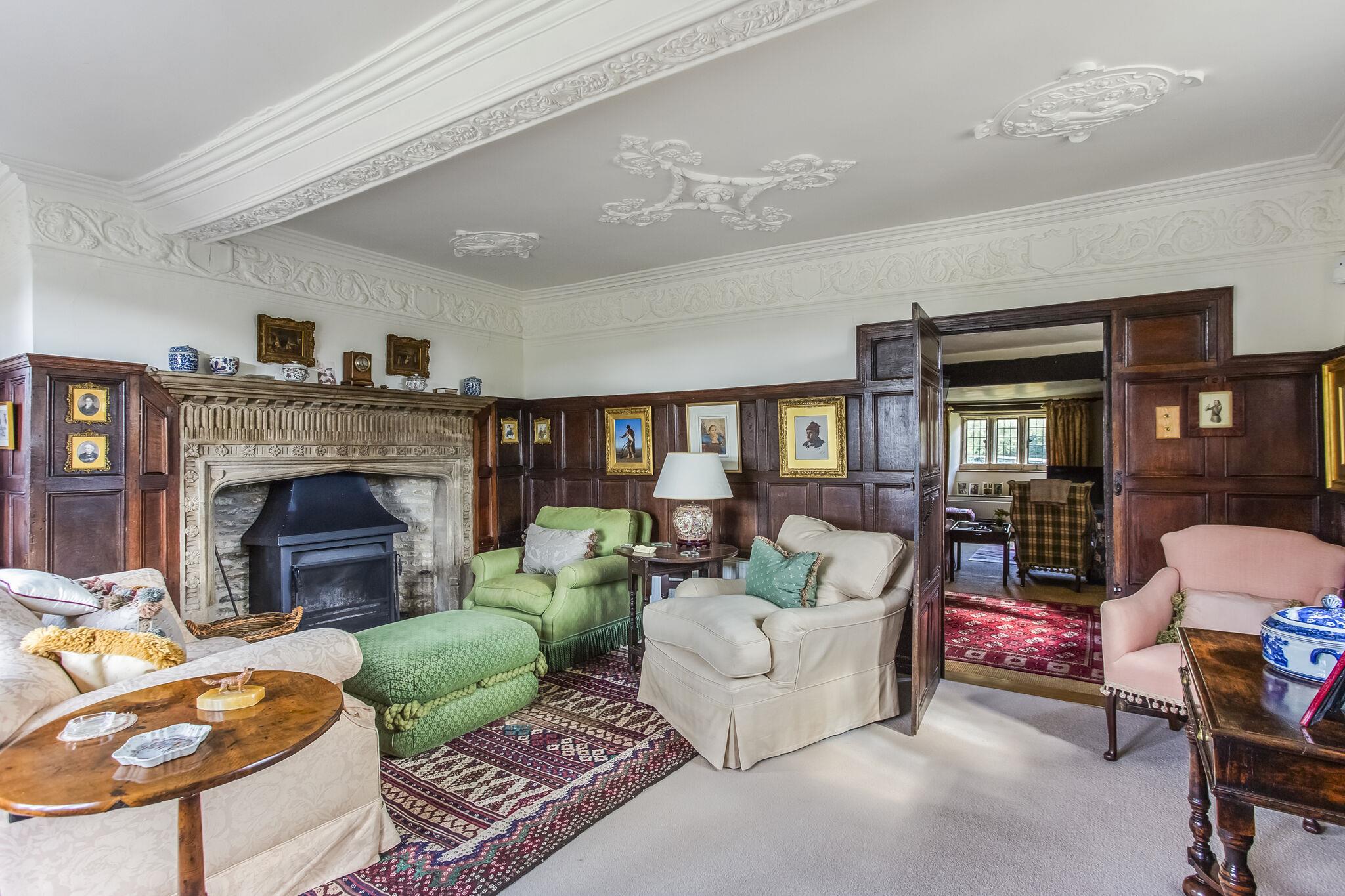 The Accommodation is arranged as follows. Entrance Hall with Boot and utility room off to the left with bell sink and drying dolly. The large kitchen with porcelain tiled floor leads off the hall to the right and is well equipped with extensive built in cupboards, oil fired Aga, Fisher and Paykell appliances and walk in larder. The hallway leads to the Dining room with large stone fireplace and exposed beams. Beyond this is the spacious Drawing room with impressive stone carved fireplace with wood burner and exposed beams. An oak staircase leads from here to the upper floors and a stone staircase to the cellar which houses the boiler and hot water tank. The second living room on the ground floor is the cosy snug which has wood panelling throughout to dado level, a decorative ceiling and large open fireplace. The mullioned windows face south over the Rose garden.