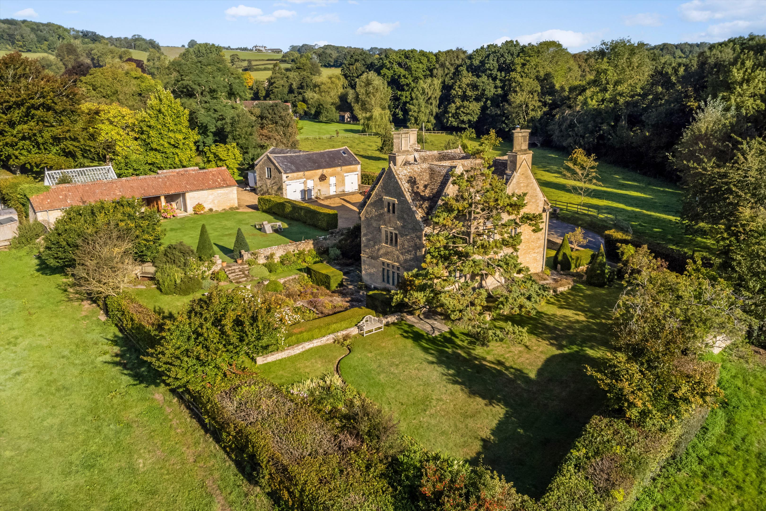 This fine Country house sits well within its beautiful gardens and grounds which overlook the valley and surrounding countryside. The House dates from the mid 17th century and retains much of its original detailing, the 'Cotswold' exterior complemented by an interior with large fireplaces, stone floors and well proportioned rooms. It would make the most lovely family home.
