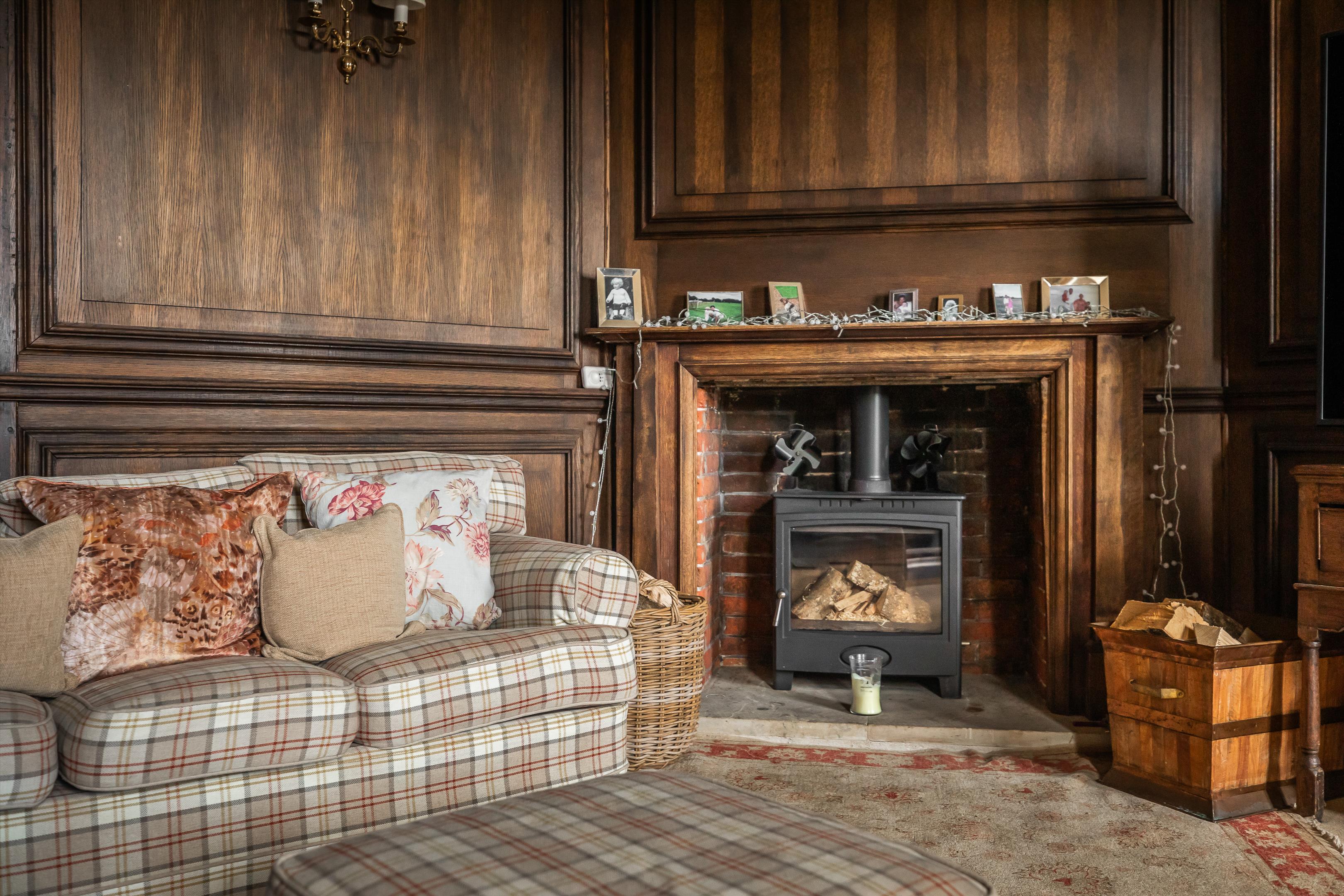 The property retains magnificent period features throughout, including panelling, ornamental plasterwork and stone mullion windows. A welcoming reception hall leads to an impressive panelled drawing room with dining and study areas, featuring a stone fireplace with carved mantelpiece. The kitchen/breakfast room, originally the library, boasts hand-crafted units with granite surfaces and premium appliances including a four-oven Aga. Additional ground floor spaces include a superb boot/rod room and panelled sitting room with wood-burning stove.