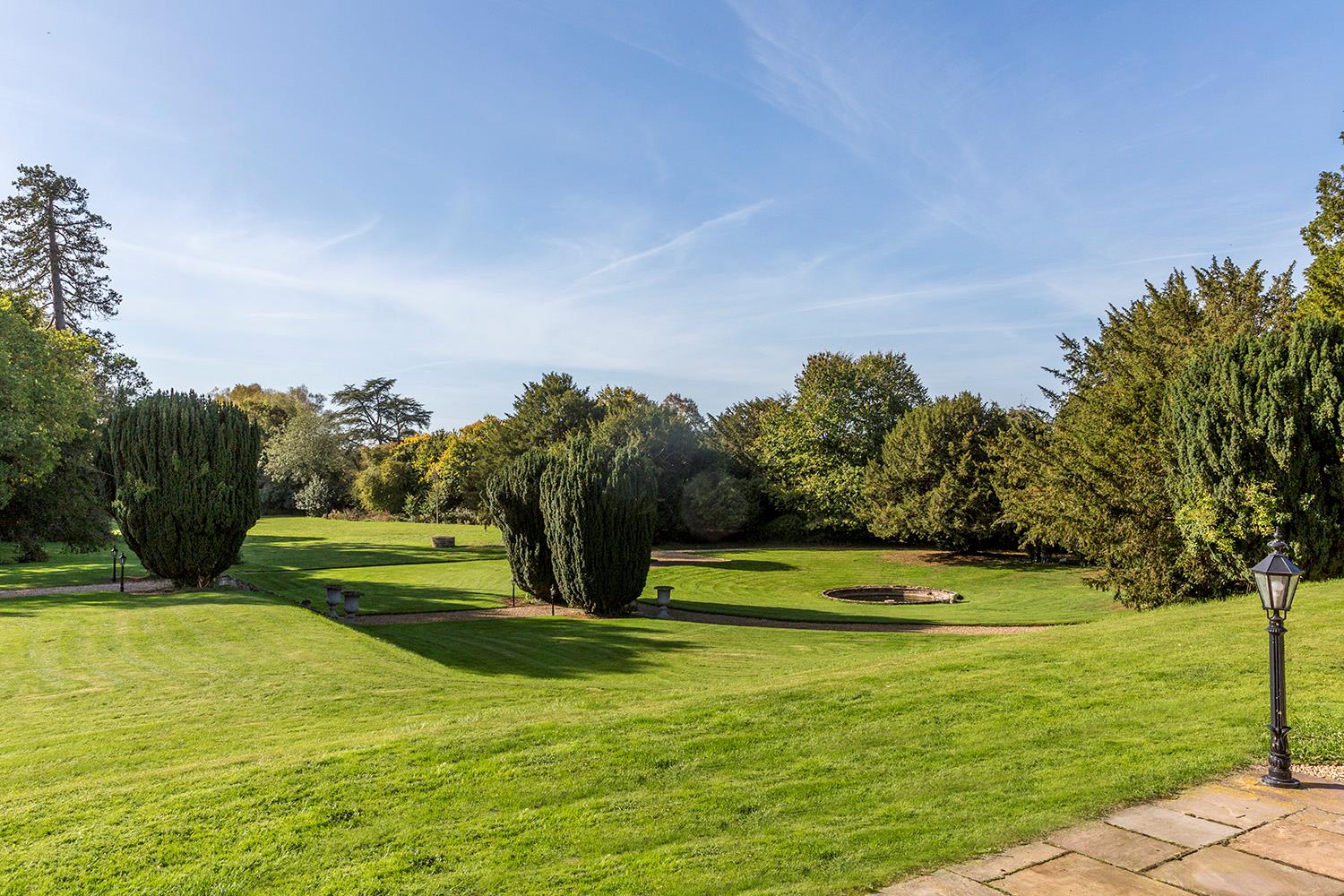 Set within beautifully landscaped formal gardens and grounds, the estate features an ornate Victorian water garden, mature trees, woodland, expansive lawned areas, and a paddock, creating a sense of tranquility and seclusion.