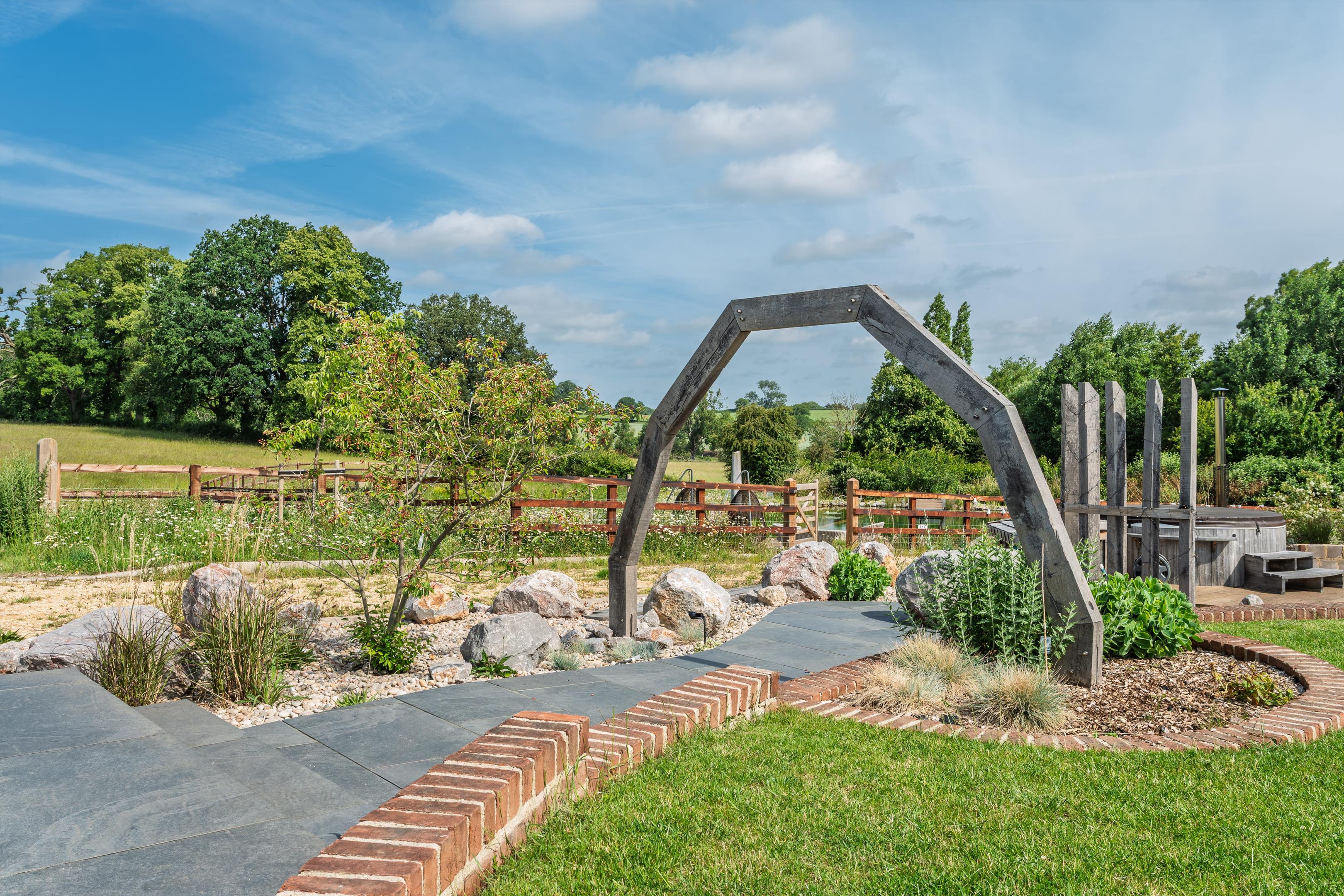 There is also a 16mx6m 2.5m deep Natural Swimming pool along with a large wood-fired hot tub with ground source pre-heating. A covered outdoor kitchen area with a wood fire Pizza Oven, BBQ, sink and built-in Patio heaters.