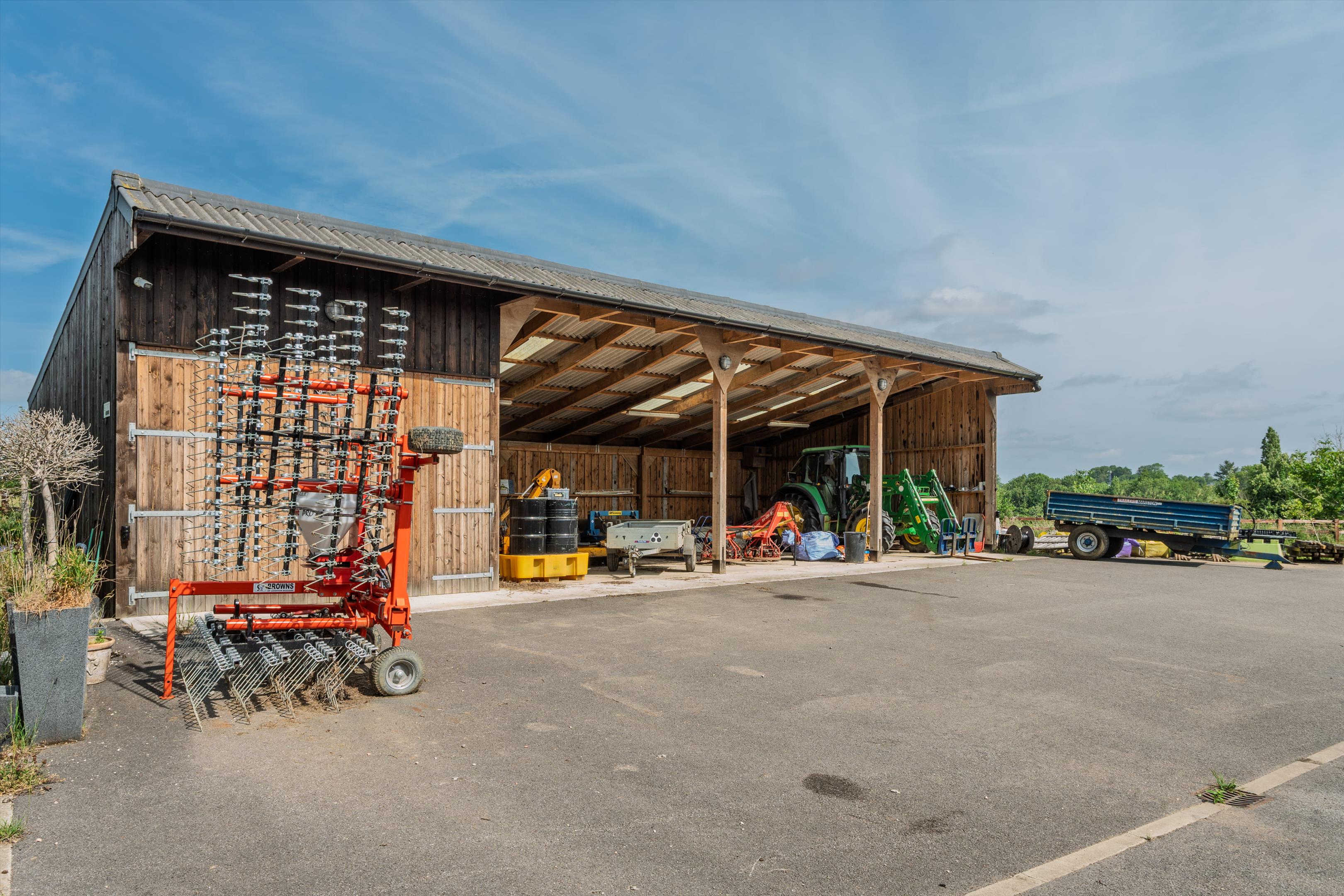 Extensive outbuildings are beyond the Annexe and situated around a spacious yard area with ample parking and turning room. Currently providing five stables, a workshop, a party barn, carports, and an agricultural and forage storage barn, with a three-phase electricity supply too.
