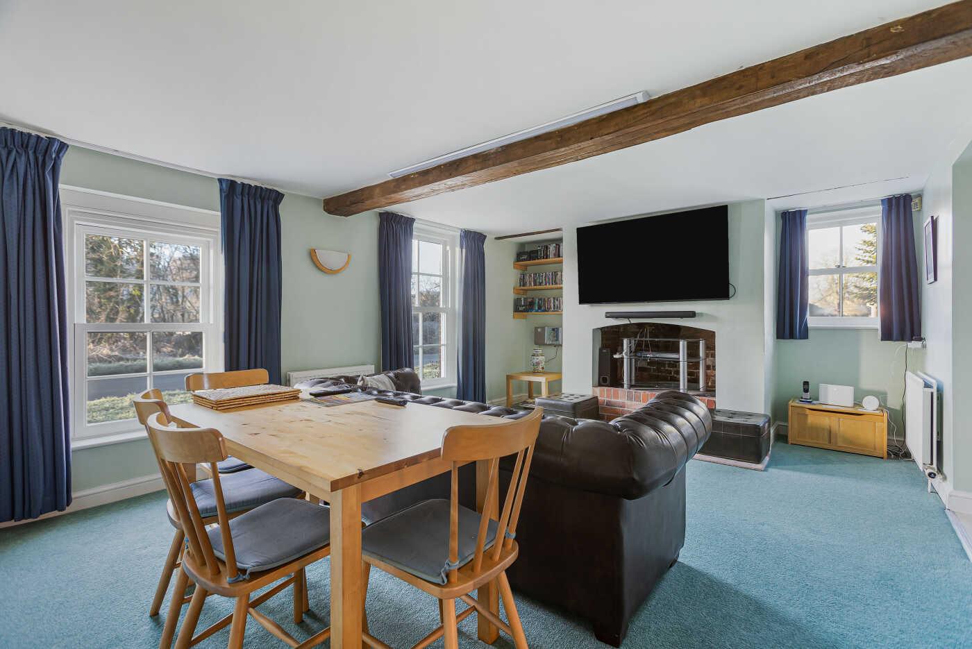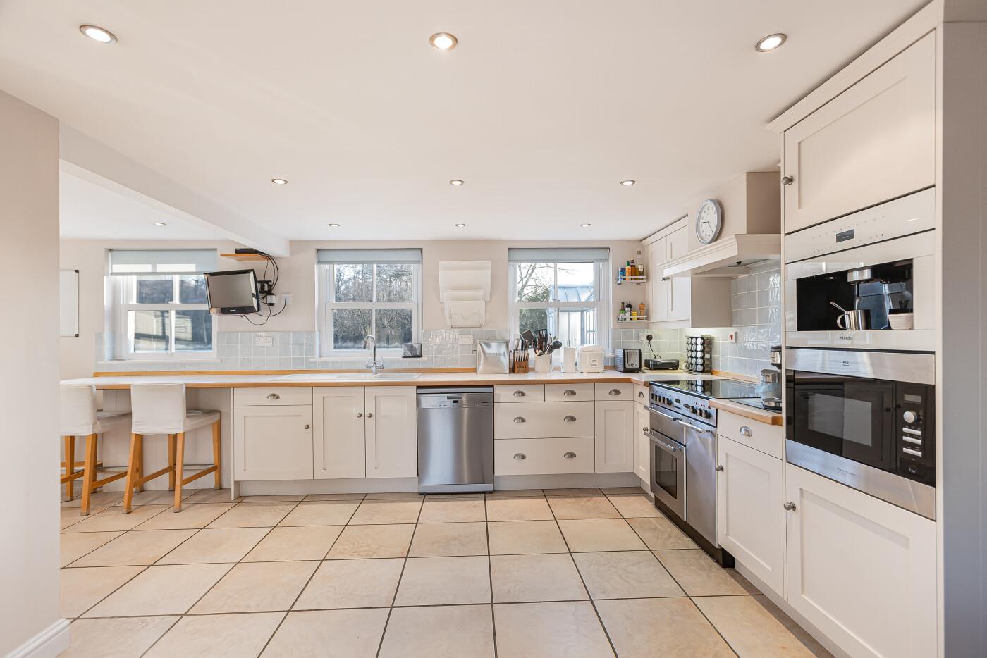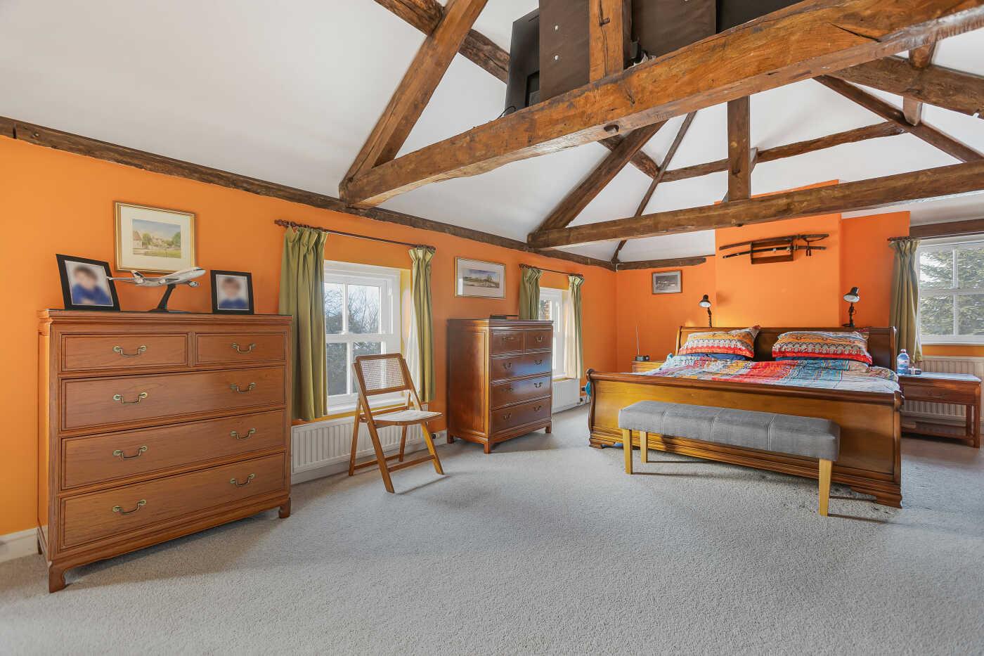 The principal house provides just over 2,600 sq ft of light and well-arranged living space. The accommodation flows naturally, with the conservatory taking full advantage of the wonderful outlook across the gardens. Upstairs, the principal bedroom is a particular highlight, featuring a vaulted ceiling that enhances both volume and character. There are five bedrooms and three bathrooms in total, offering excellent space for family, guests or visiting friends.
