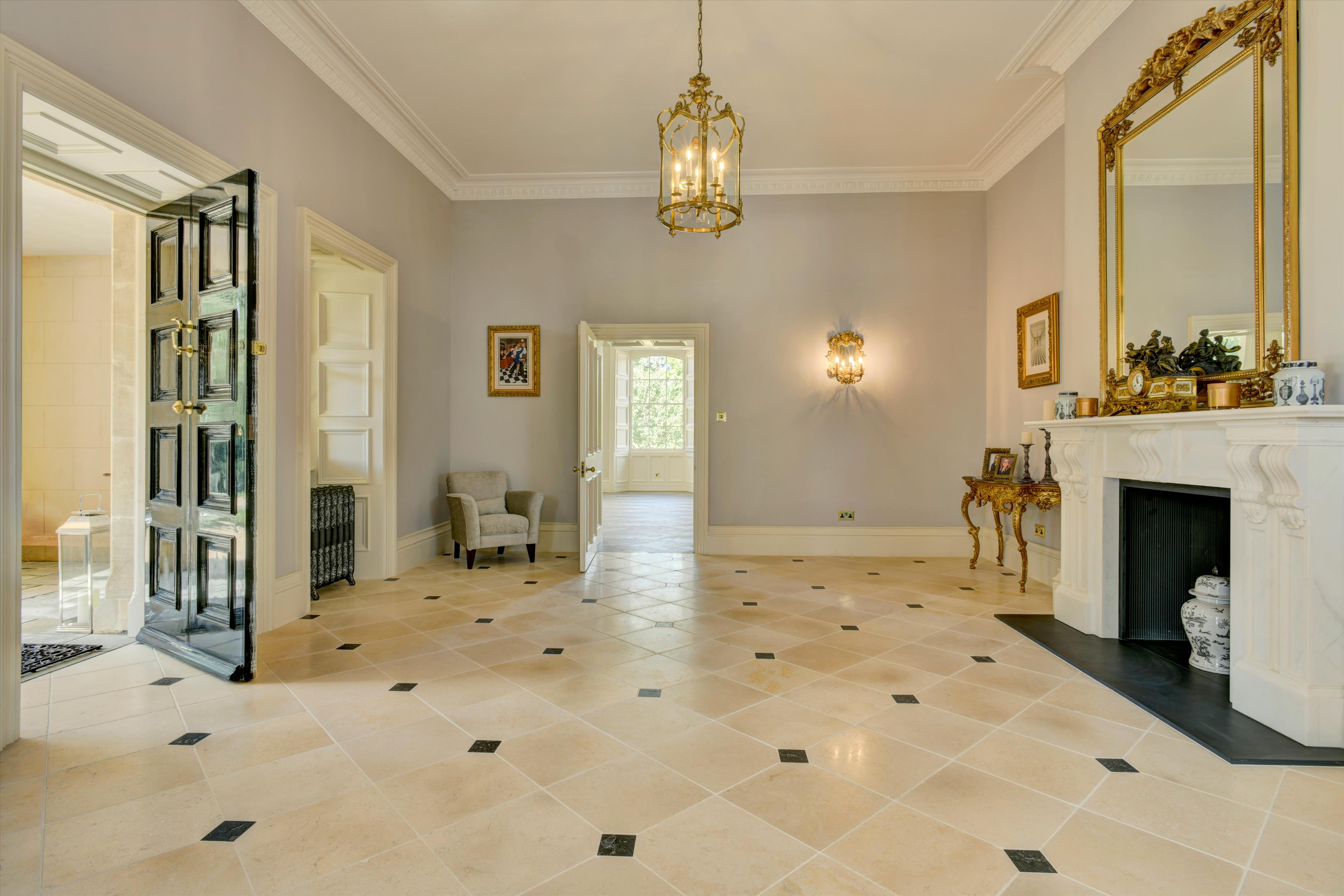 There is a true sense of arrival as you enter the new stone porch and entrance hall. The house enjoys volume and natural light with a series of seven impressive, well-proportioned reception rooms. These include a spectacular reception hall, entrance hall, drawing room, sitting room, library and dining room. There is a bespoke kitchen, utility room, study and cloakrooms. The ground floor lends itself to both formal entertaining and family life.