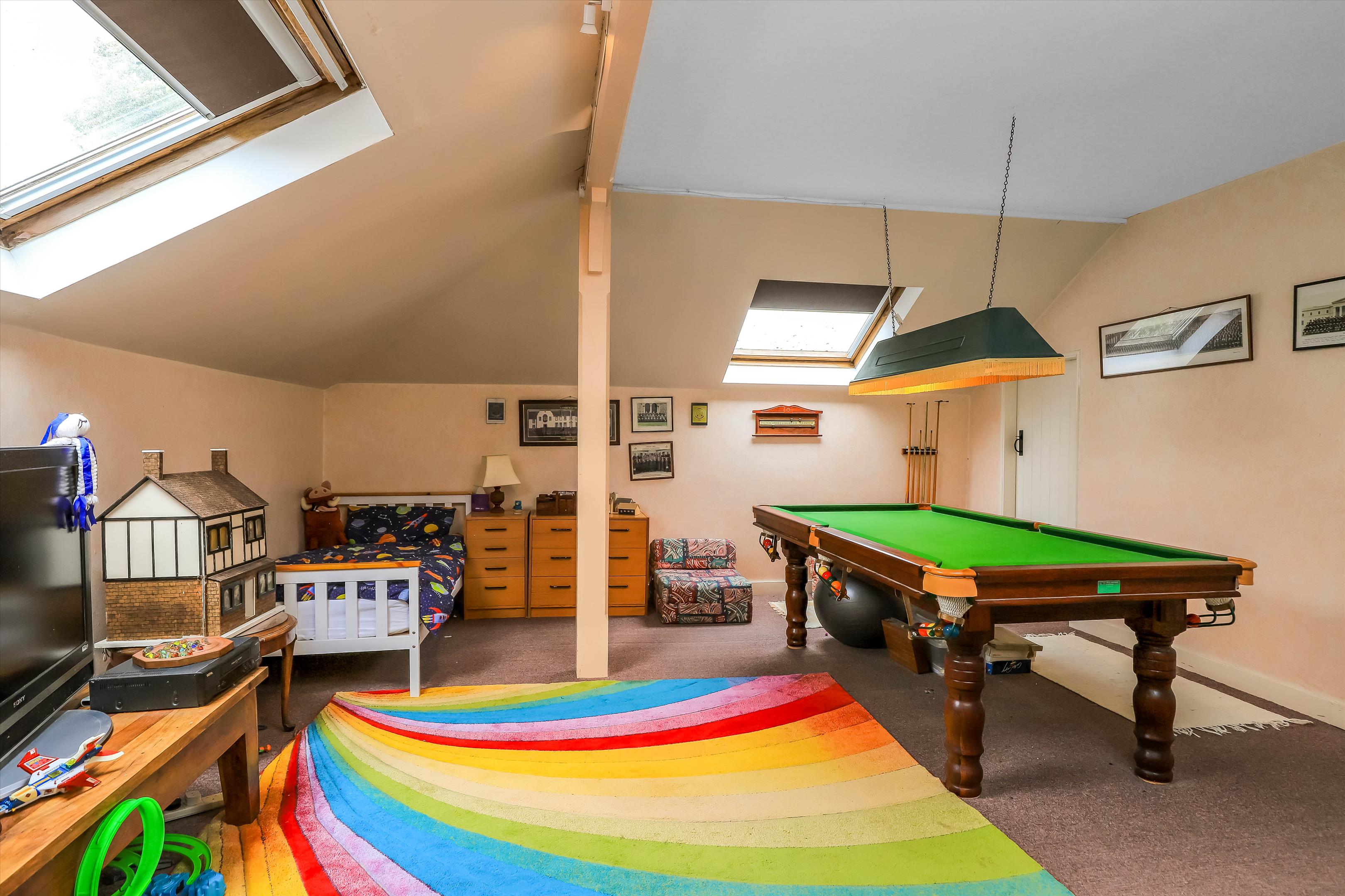 Stairs located in the entrance hall lead to the property's first floor, which includes bedrooms one and two, which are dual-aspect with countryside views, two further good-sized bedrooms, a shower room and a family bathrooms. The stairs continue to the property's second floor which has a large bedroom five or a games room with skylights and eaves storage facilities.