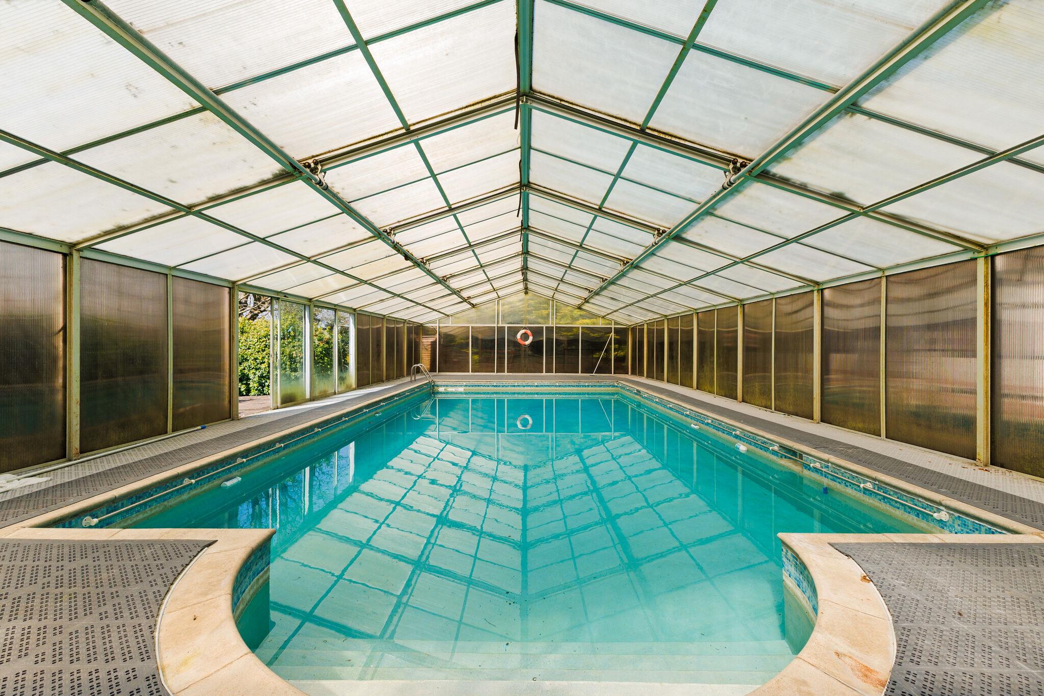 The house is approached via a five bar gate with a long, sweeping drive leading to a parking area and integral garage with electric doors. There is a fantastic outbuilding which includes a garden store, stabling, changing room, wc and further garage. Beyond the outbuilding is an indoor swimming pool.