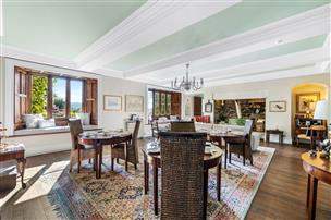 In the centre of the house is the dining room and library offering splendid reception areas with south facing windows allowing light to flood in and taking advantage of the views of the front garden and the open vistas beyond to the mountains. At one end of the room there is an impressive inglenook fireplace with a wood-burning stove.