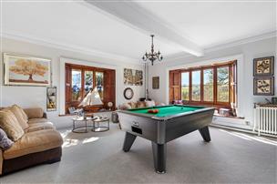 Beyond the living room there is a games room again with double aspect windows with operating shutters and an open fireplace.