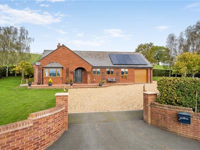This beautifully refurbished three-bedroom detached bungalow, set in an elevated position with panoramic views over the Long Mountain range and Kerry Ridge, offers a rare blend of rural tranquillity and modern living. Recently modernised to a high standard under the ECO 4 scheme, it features energy-efficient upgrades including an air source heat pump, solar panels, and insulation. The stylish interior includes a spacious sitting room with wood-burning stove, open-plan kitchen, and a versatile attic room. Outside, 3.8 acres of land with paddocks, a stable block, and a large barn make it ideal for equestrian or smallholding use, all within easy reach of Shrewsbury, Oswestry, and Welshpool.