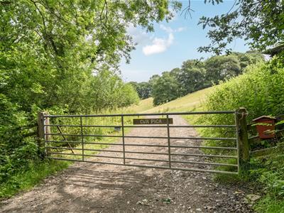 Private track with gated entrance to large gravell